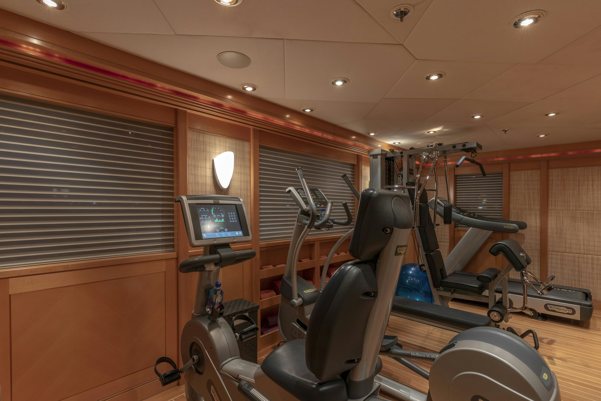 Charter yacht LAUREL offers guests a variety of outdoor spaces to live the alfresco lifestyle while aboard. LAUREL’s outstanding sundeck offers endless views of the cruising destination as well as plush sun loungers, sunpads and a Jacuzzi to sit back and take in the views. The sundeck also has a café for intimate dining for two and a state-of-the-art gym. One deck below is alfresco dining with the destination as the backdrop. The superyacht also provides guests with a large selection of water toys to enjoy off the yacht’s impressive beach club.