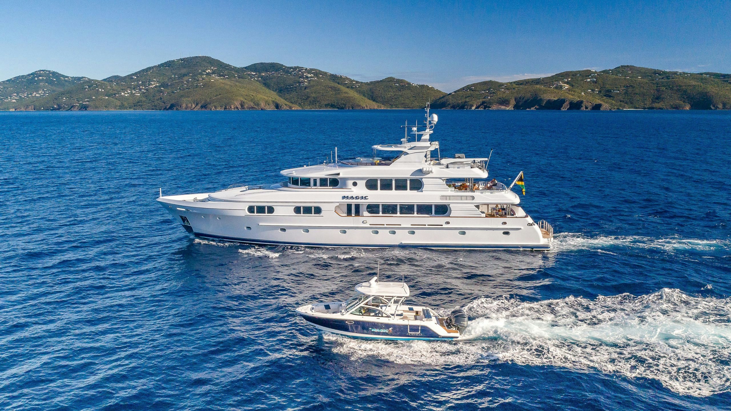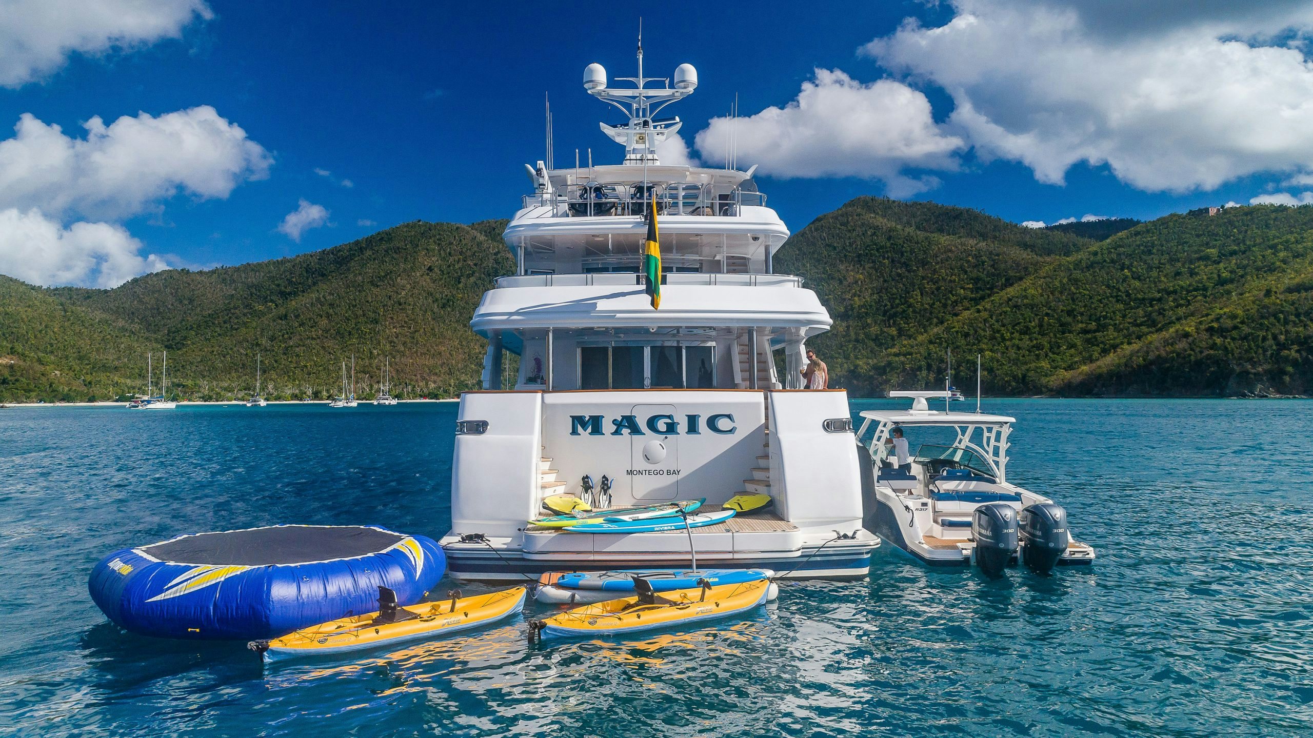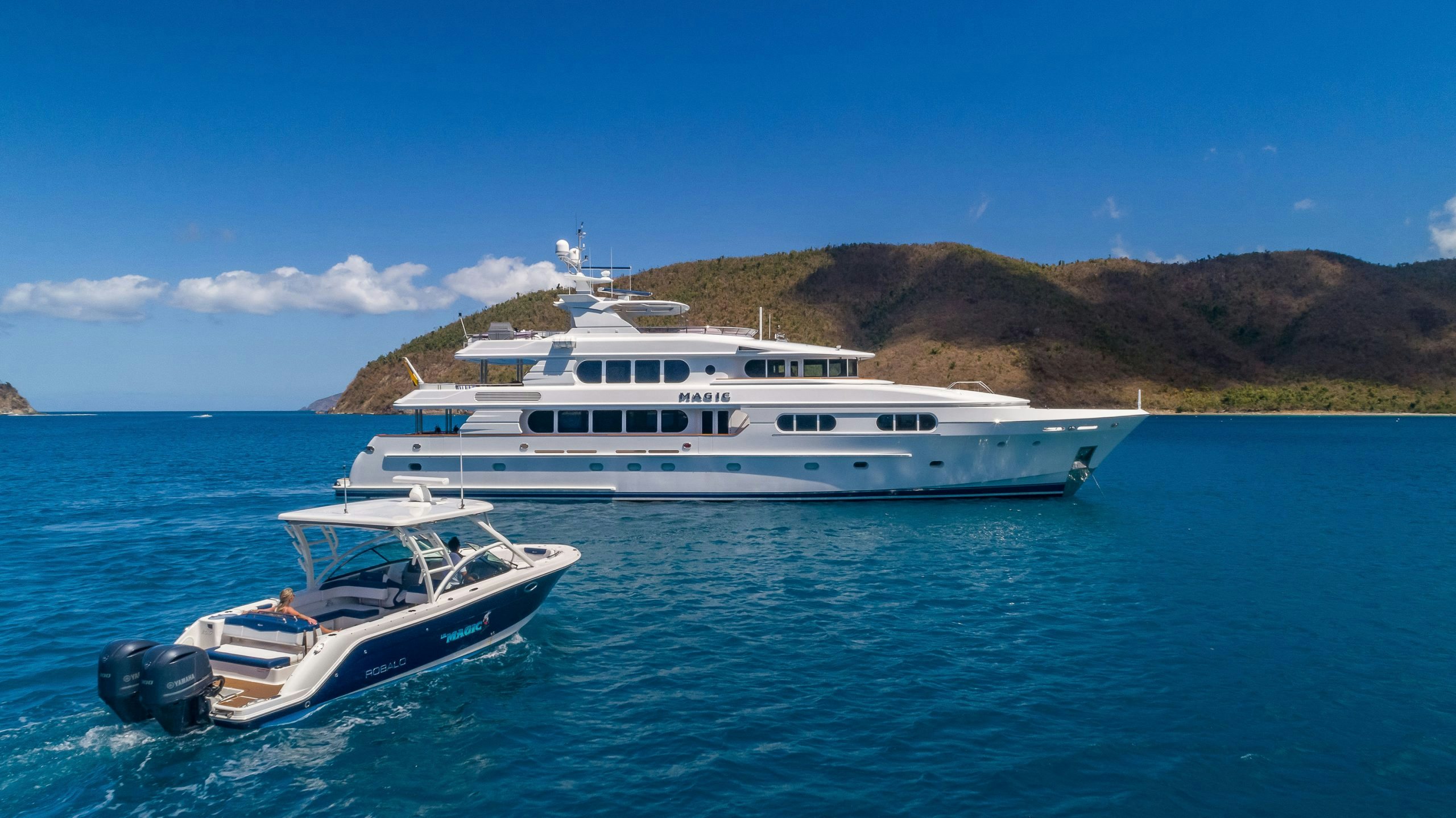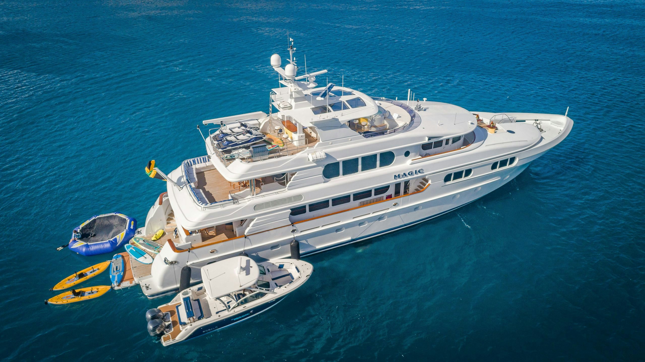 Northern Marine launched MAGIC in 2005 with exterior and Interior design by Ward Setzer. Her 6.6-foot (2m) shallow draft allows this luxury yacht to venture to the most beautiful islands. During her 2018 refit, MAGIC had stabilizers installed to provide her guests with a smooth passage or while at anchor.