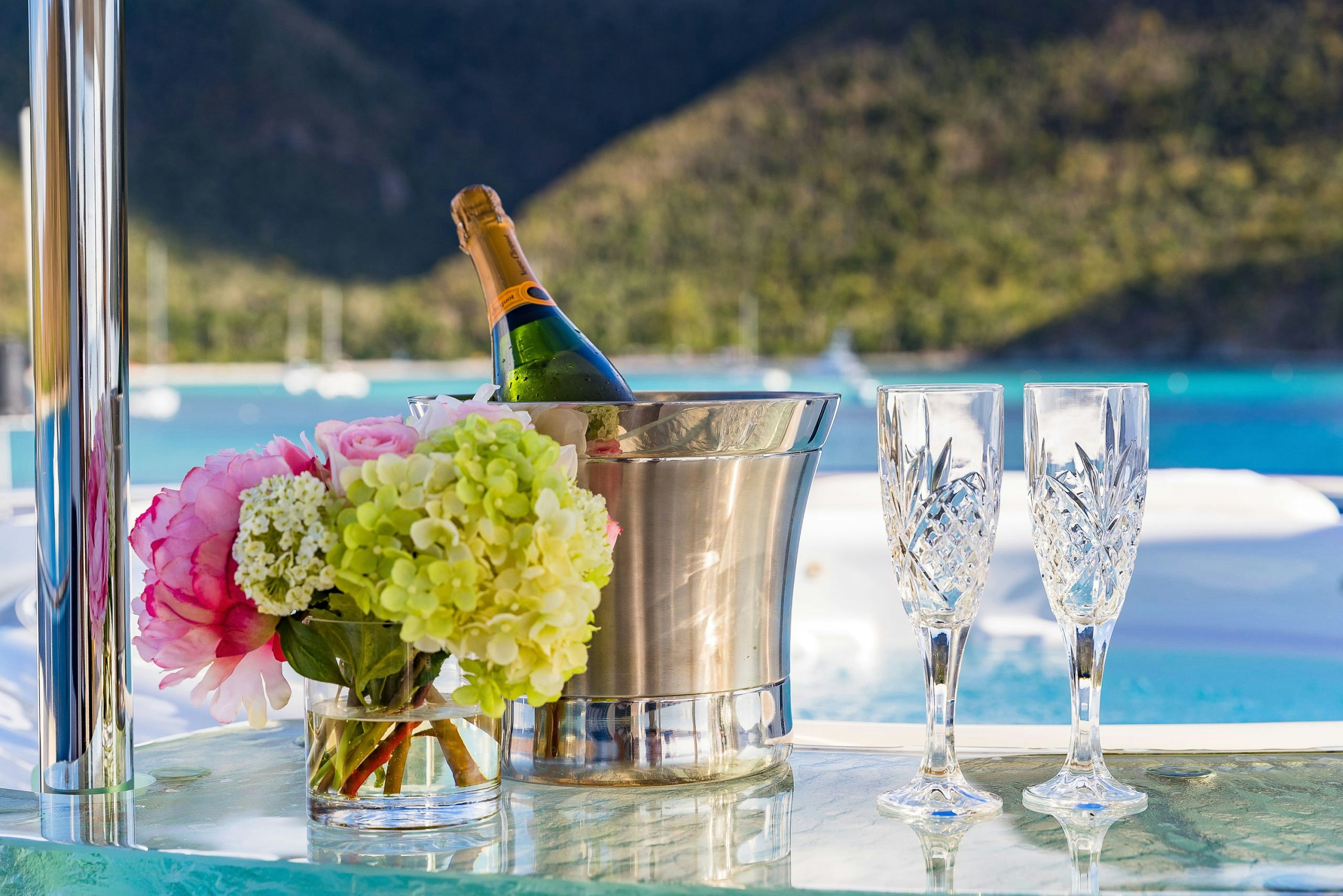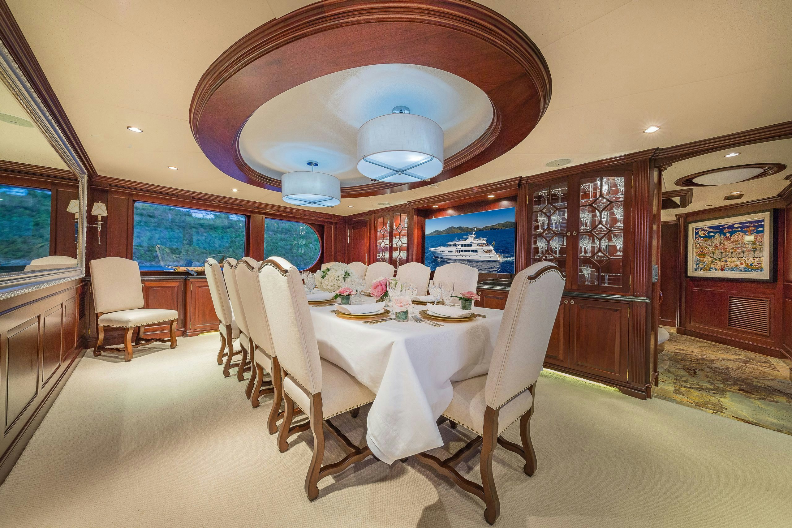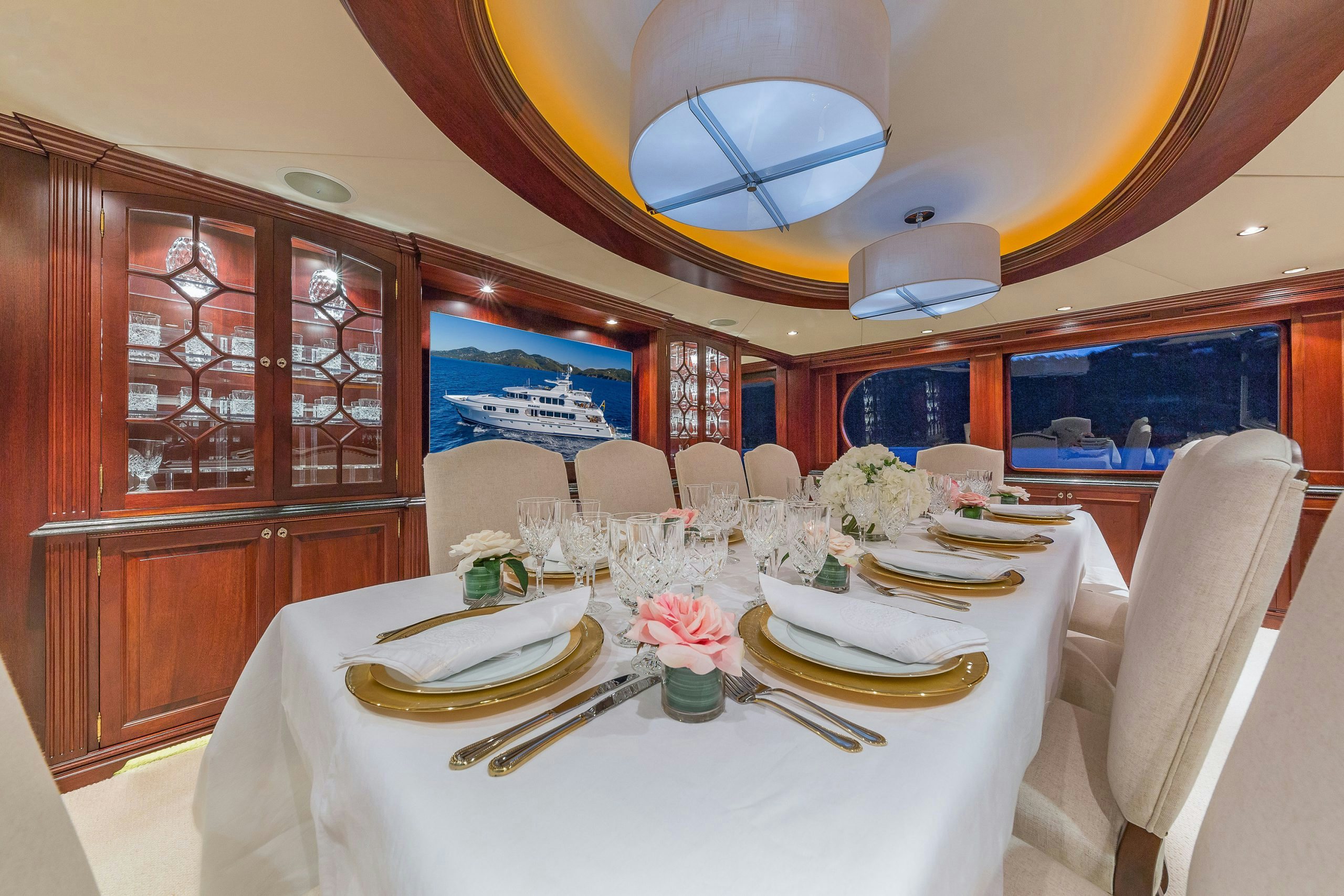 MAGIC’s elegant and formal dining room seats 10. Guests will love the bespoke menus prepared by the yacht’s chef.