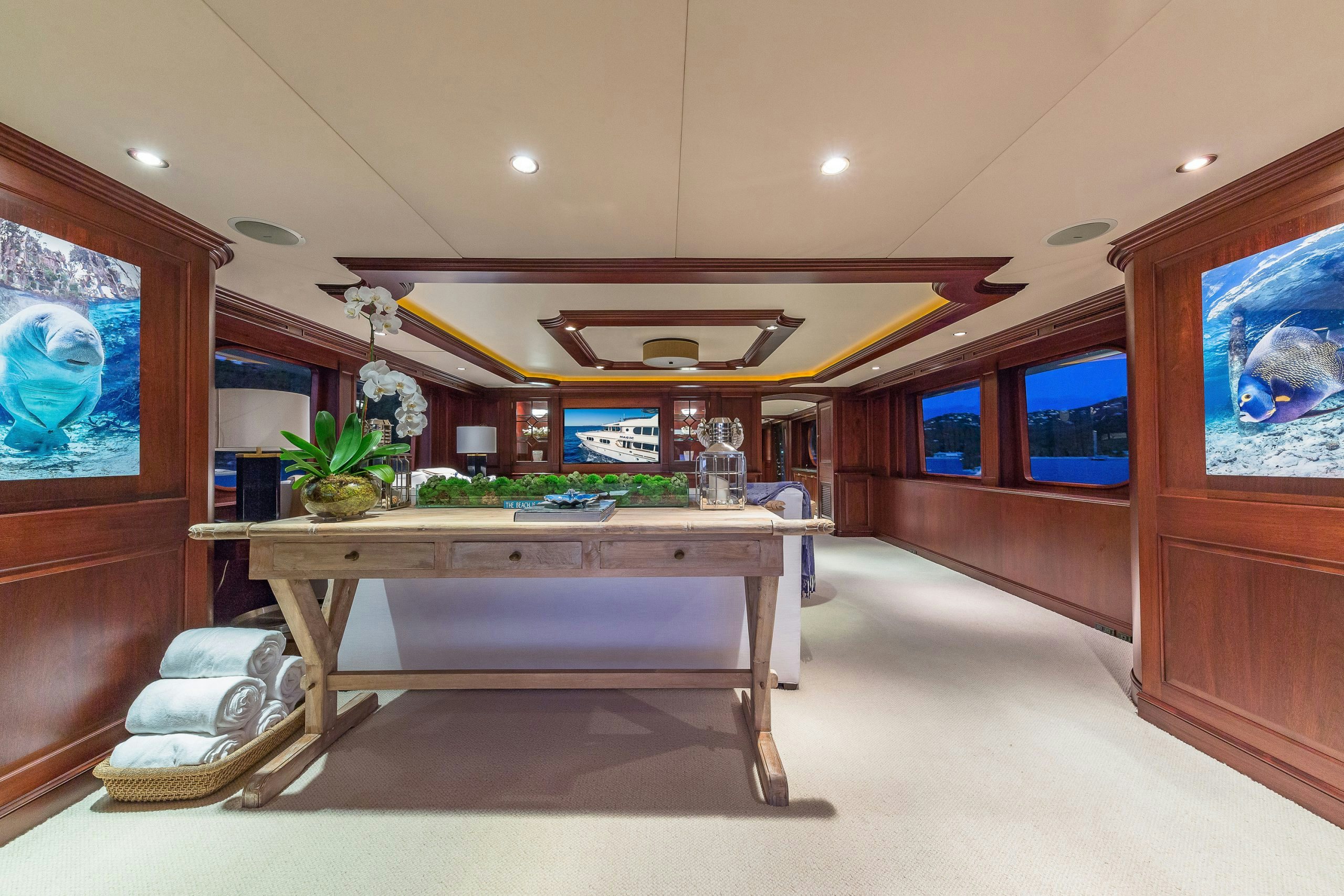 Amongst MAGIC’s impressive offering of leisure and entertainment facilities, there is also onboard WiFi and a movie theater on the sundeck. MAGIC is the perfect motor yacht for entertaining with friends and family and is equipped to serve a guest’s every need.