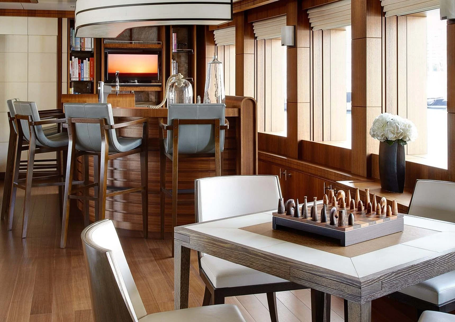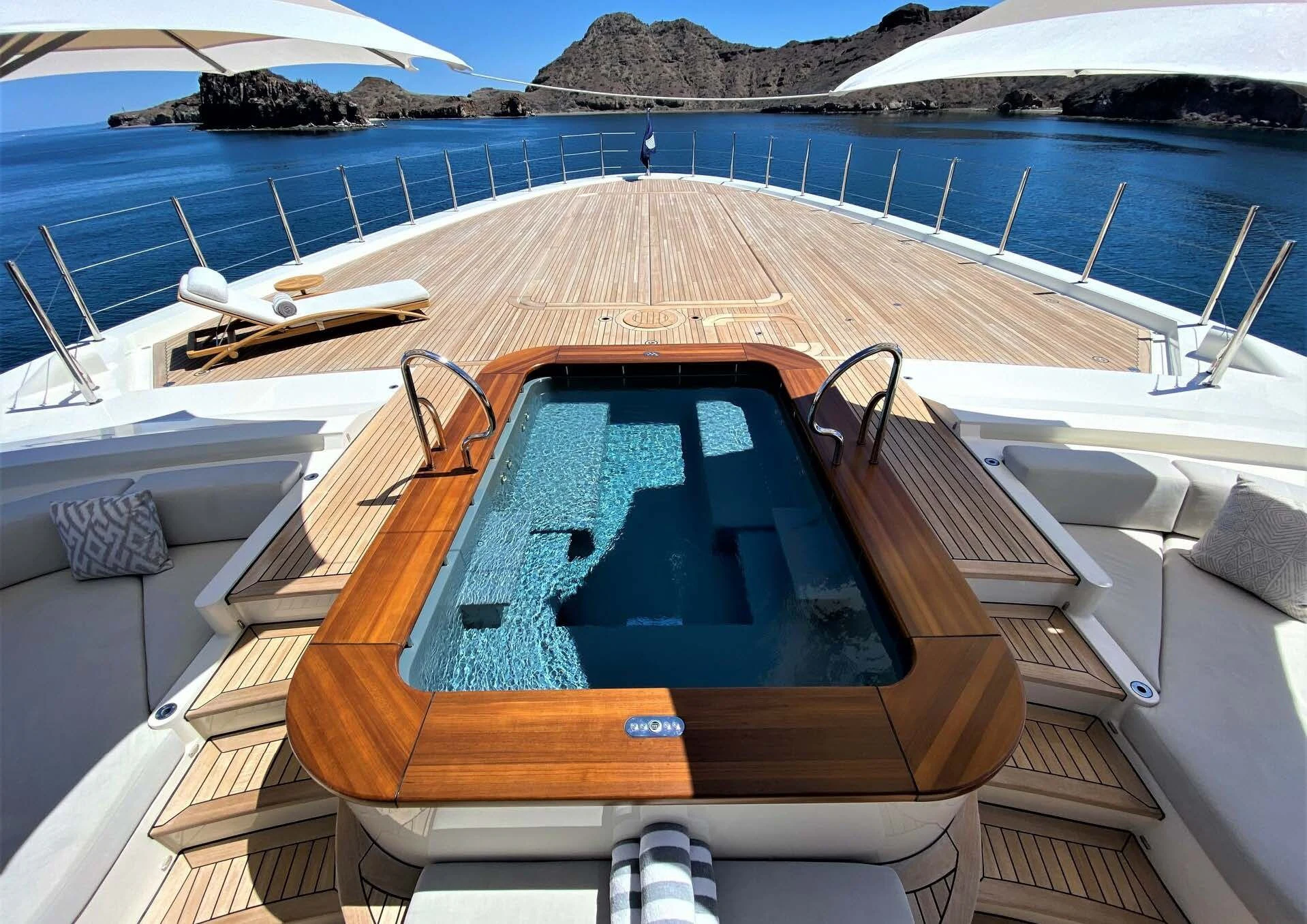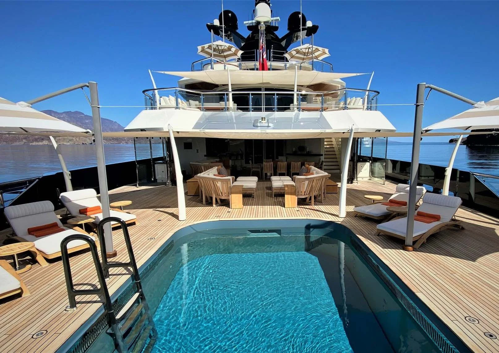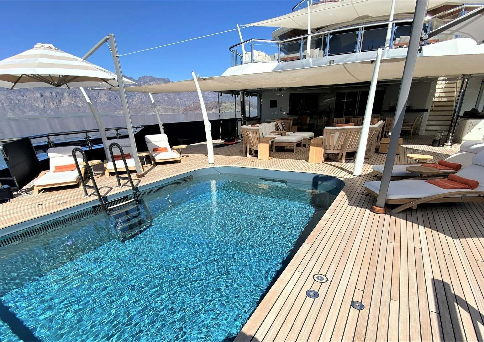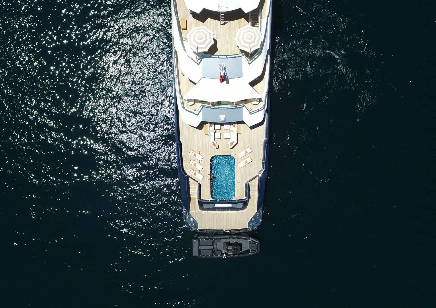 For an ideal retreat away from the action, there is a second pool surrounded by sunpads on the upper deck. Overlooking the bow, this is the perfect place to take in the views or enjoy a quiet cocktail. This pool can also be covered to create a helipad for guests to arrive in style.