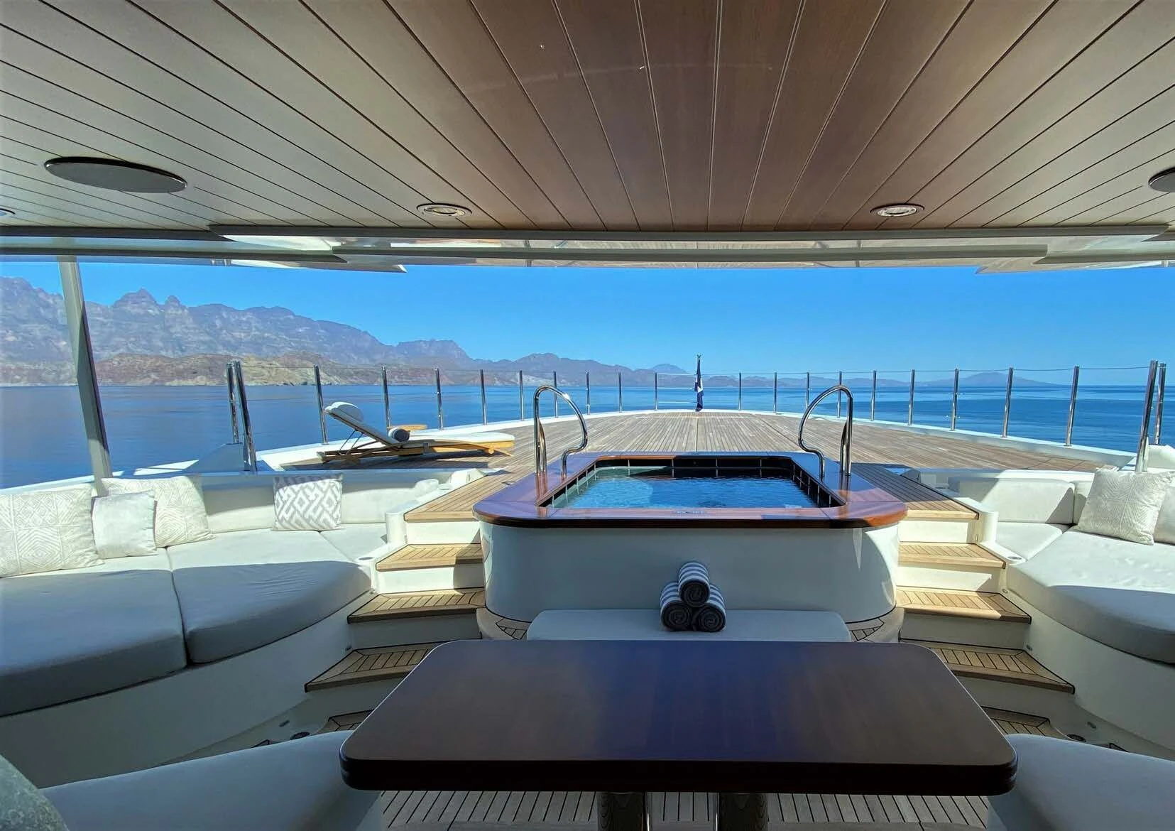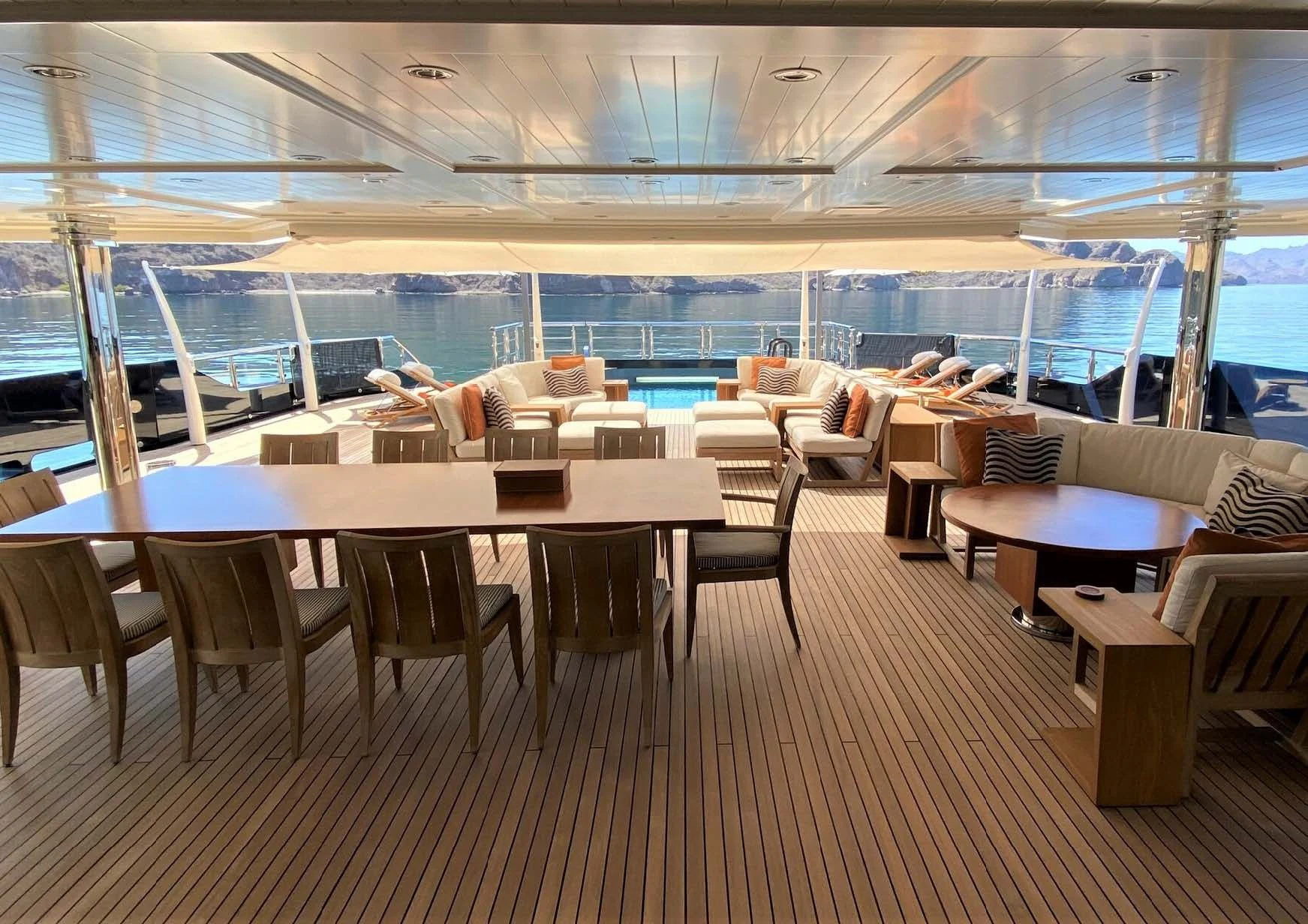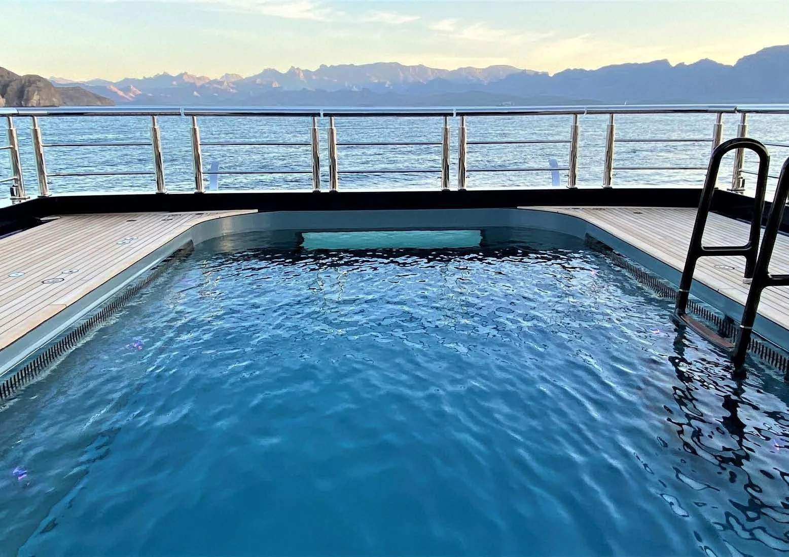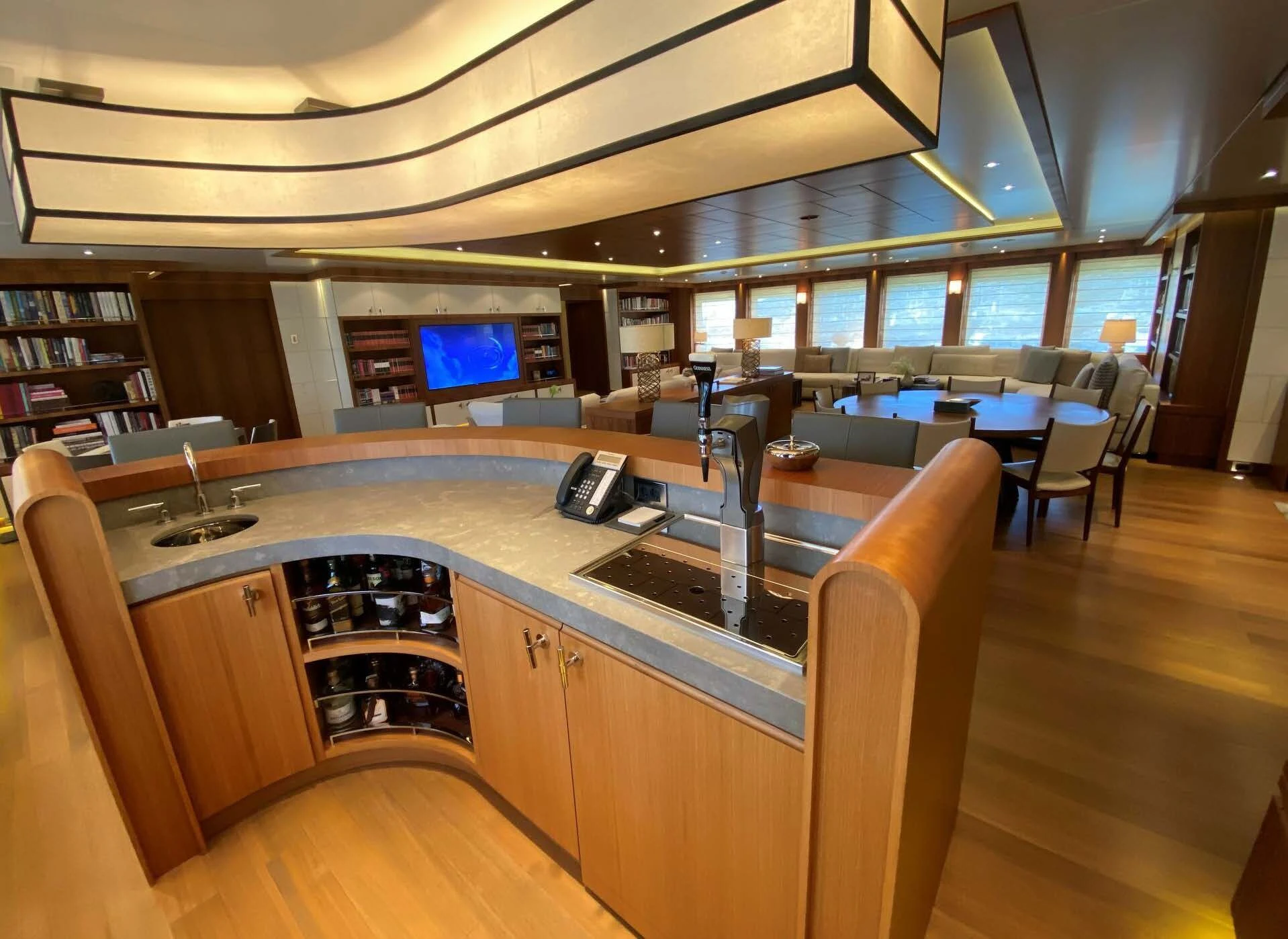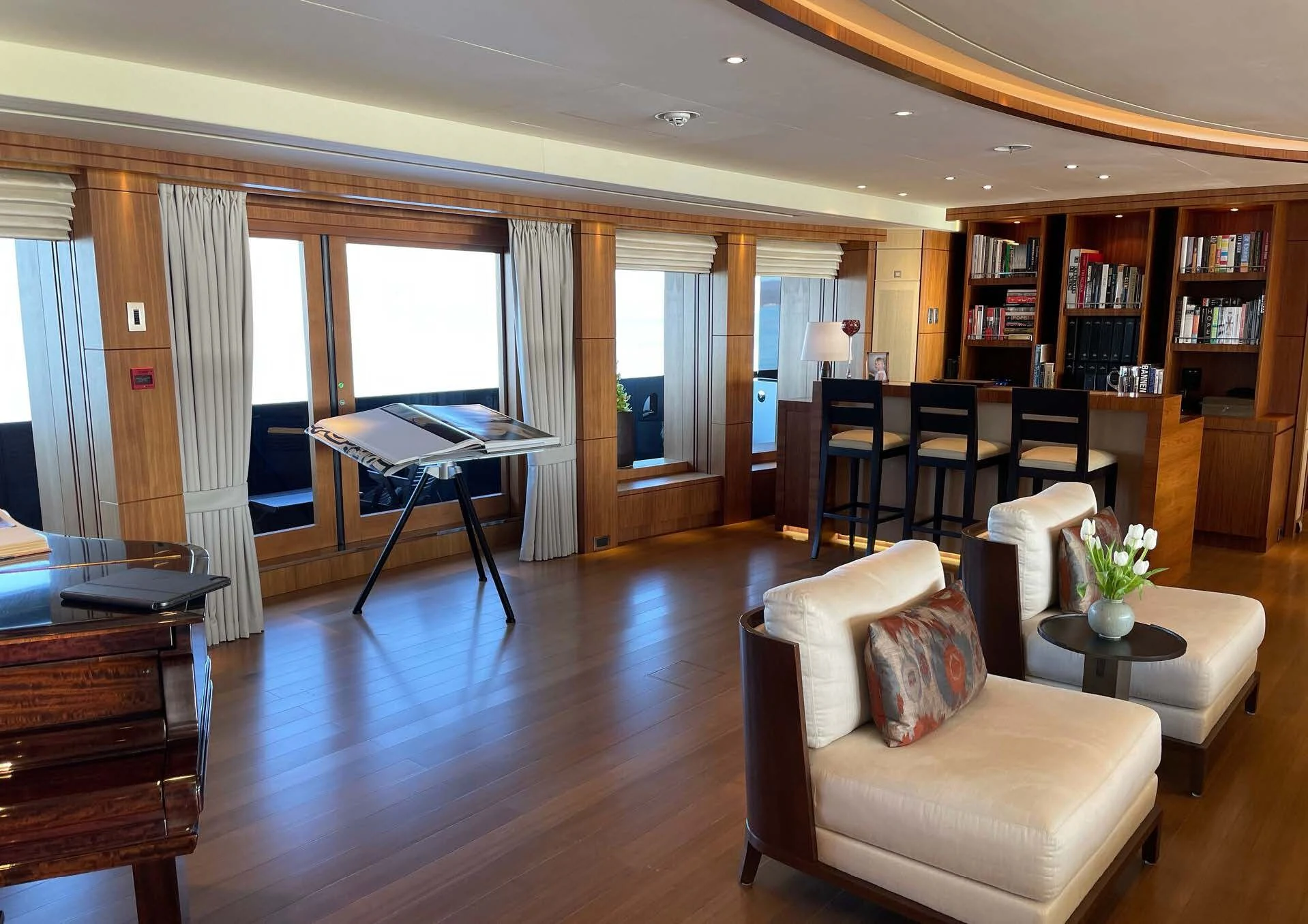 For an ideal retreat away from the action, there is a second pool surrounded by sunpads on the upper deck. Overlooking the bow, this is the perfect place to take in the views or enjoy a quiet cocktail. This pool can also be covered to create a helipad for guests to arrive in style.