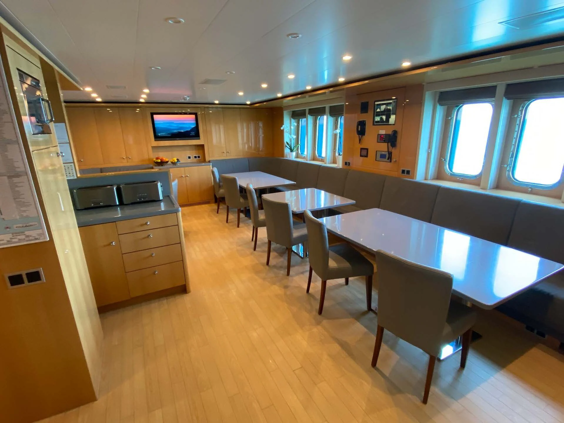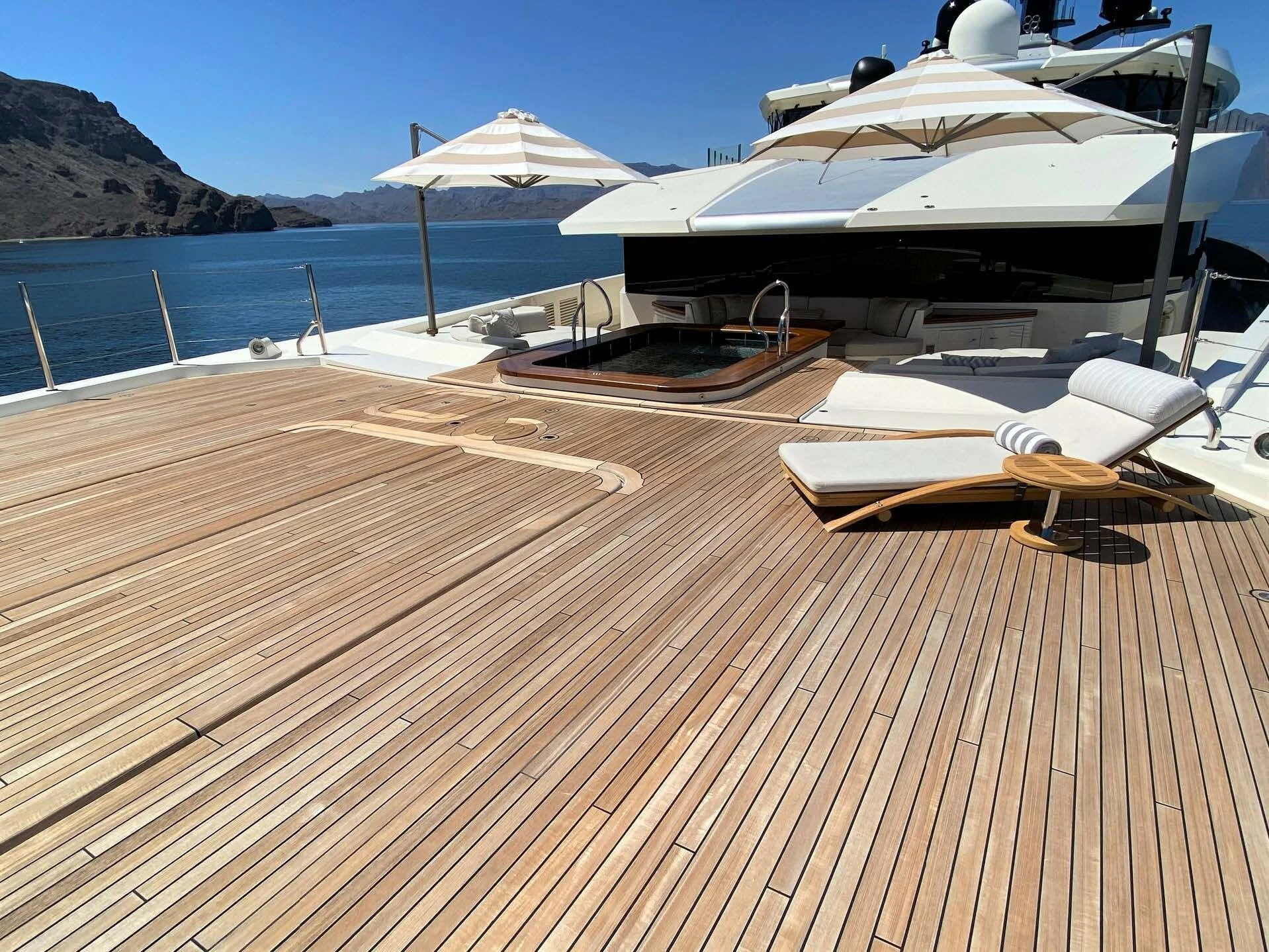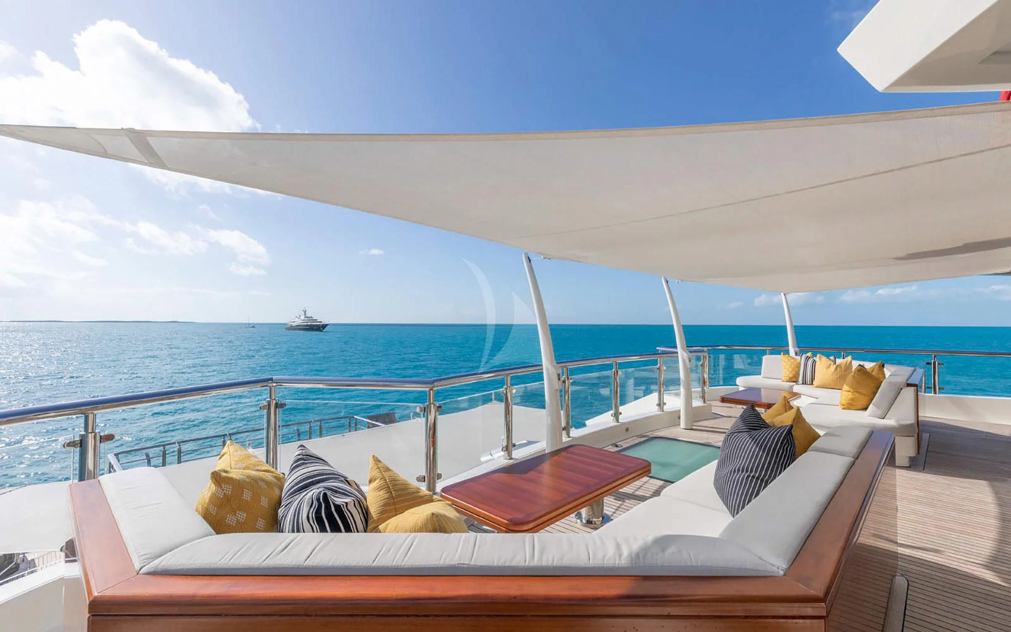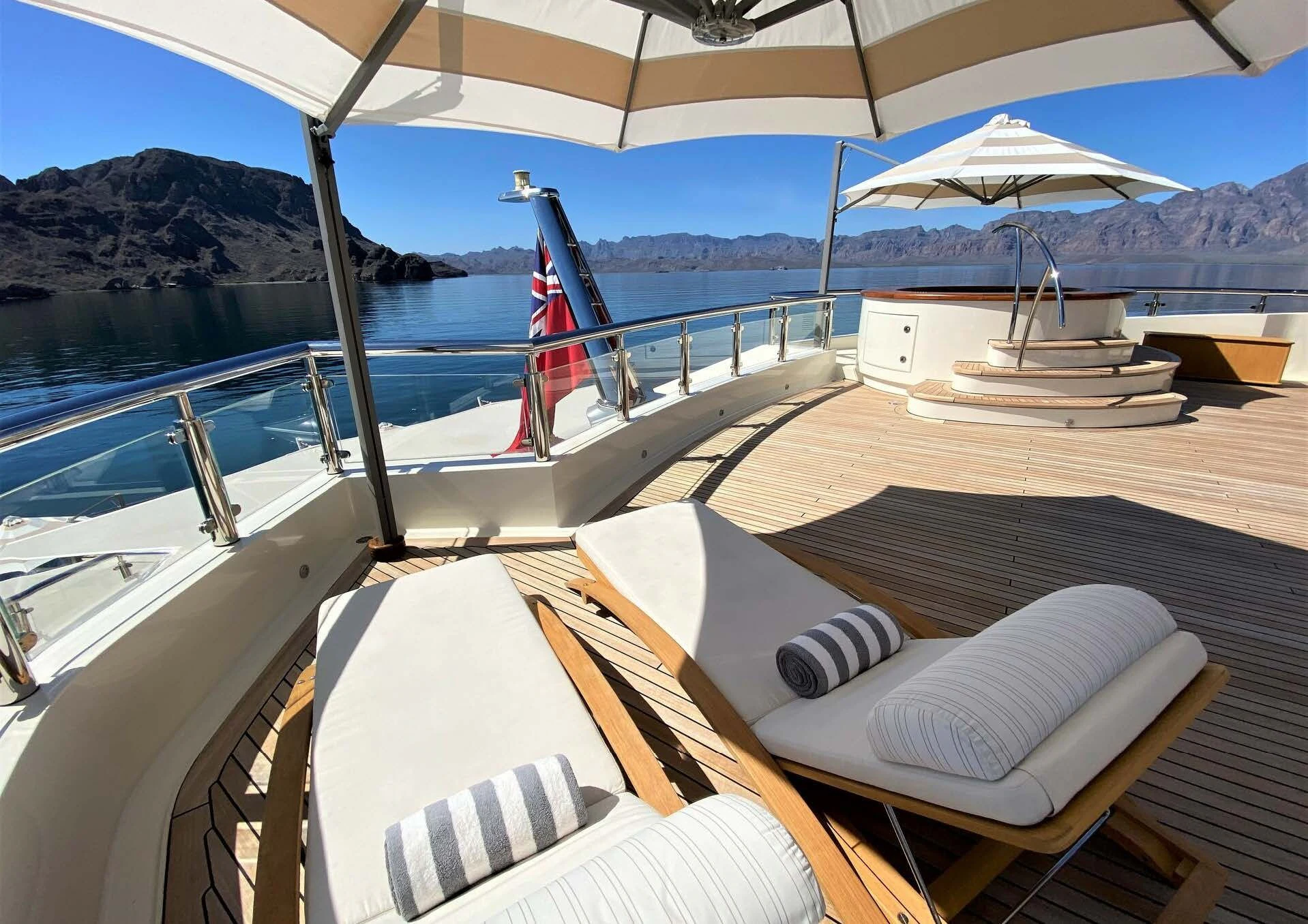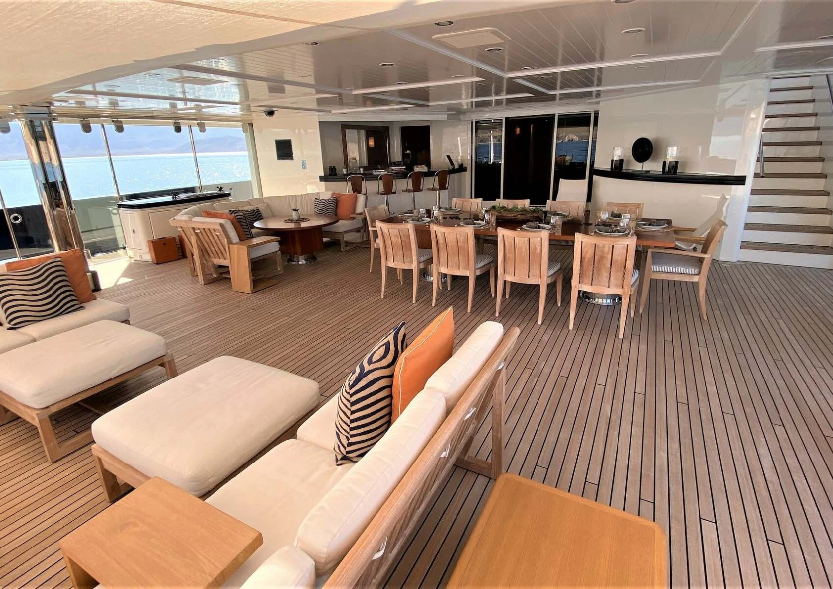 For an ideal retreat away from the action, there is a second pool surrounded by sunpads on the upper deck. Overlooking the bow, this is the perfect place to take in the views or enjoy a quiet cocktail. This pool can also be covered to create a helipad for guests to arrive in style.