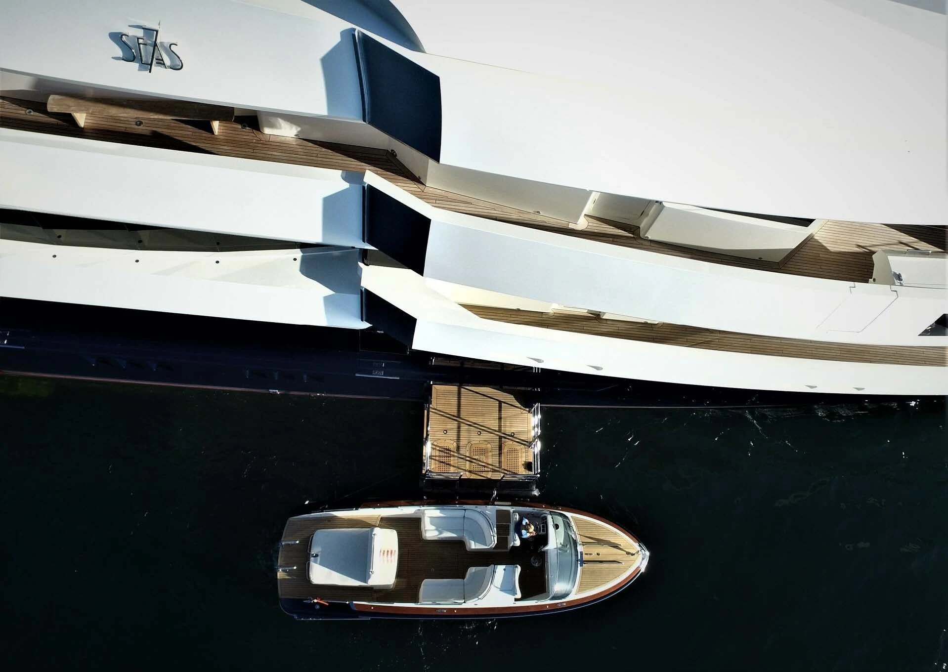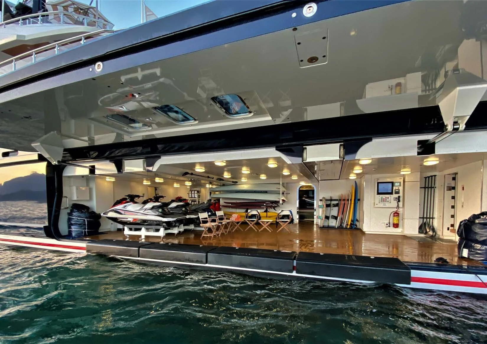With a full armada of toys ensures there is always plenty of excitement to be had on the water. MAN OF STEEL carries four SeaDoo WaveRunner, four SeaBobs, foil boards, JetSurf, and full scuba diving equipment. Her four tenders include a custom 34.5' Hodgdon Limo with space for 12, luxurious leather seating and a roof that can be opened for fresh air and sunshine.