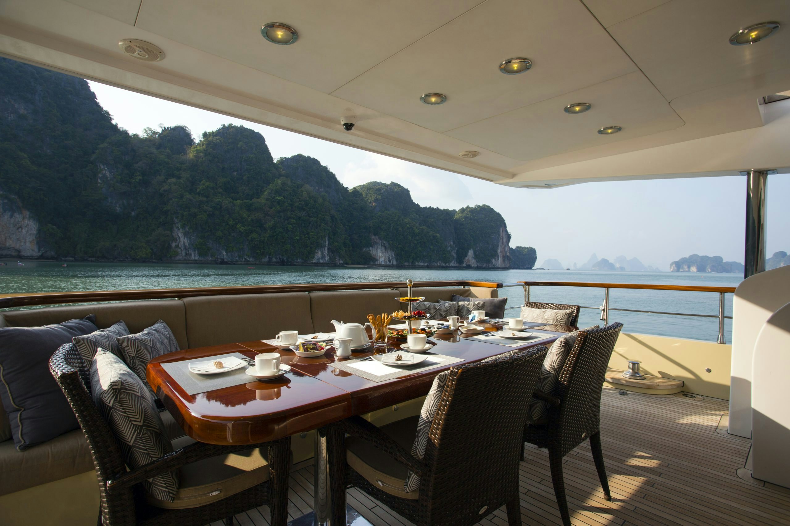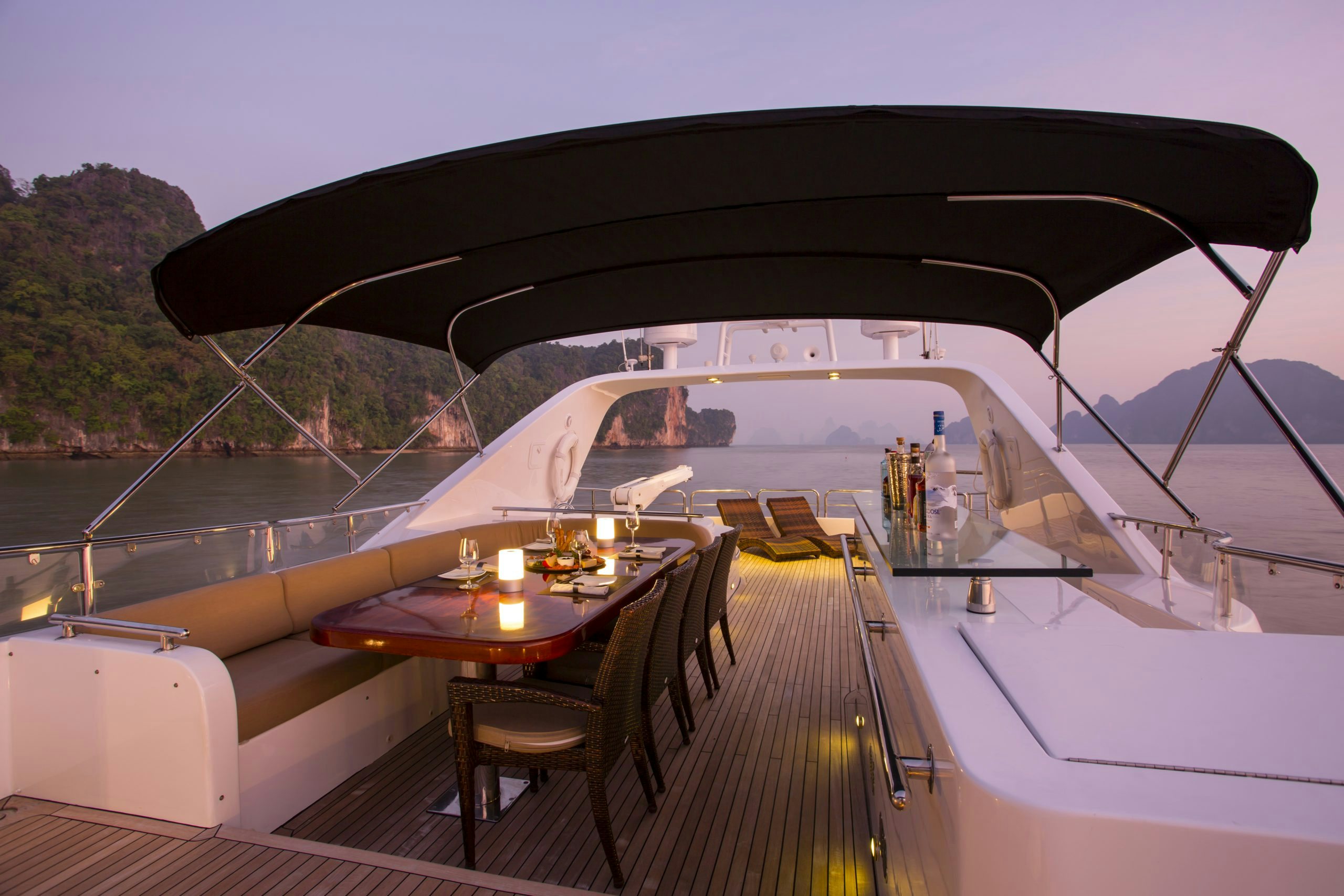 The 96-foot (29.5m) luxury charter yacht MIA KAI offers charter guests an unforgettable charter holiday. As guests cruise through picture-perfect islands taking in the turquoise waters and breathtaking scenery, they will be experiencing the best of luxury and impeccable service aboard MIA KIA.