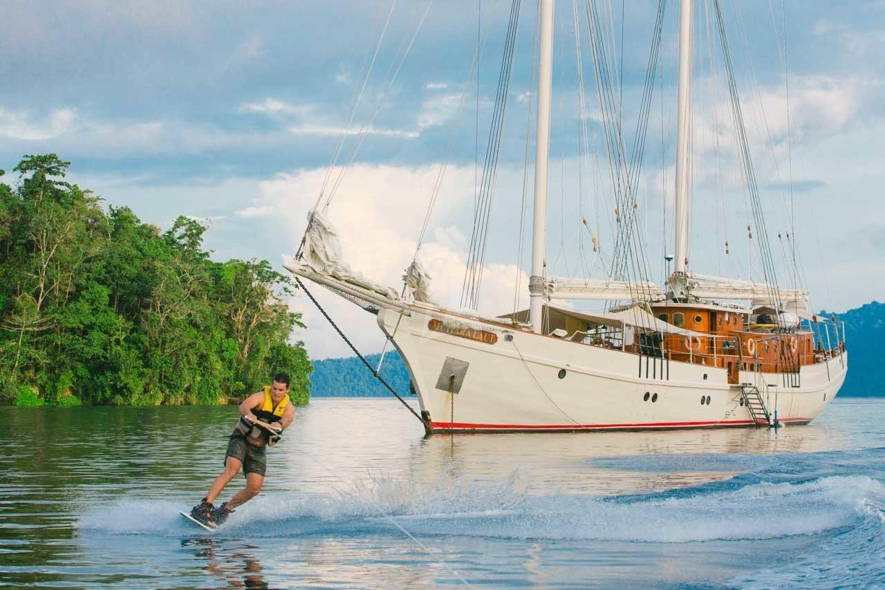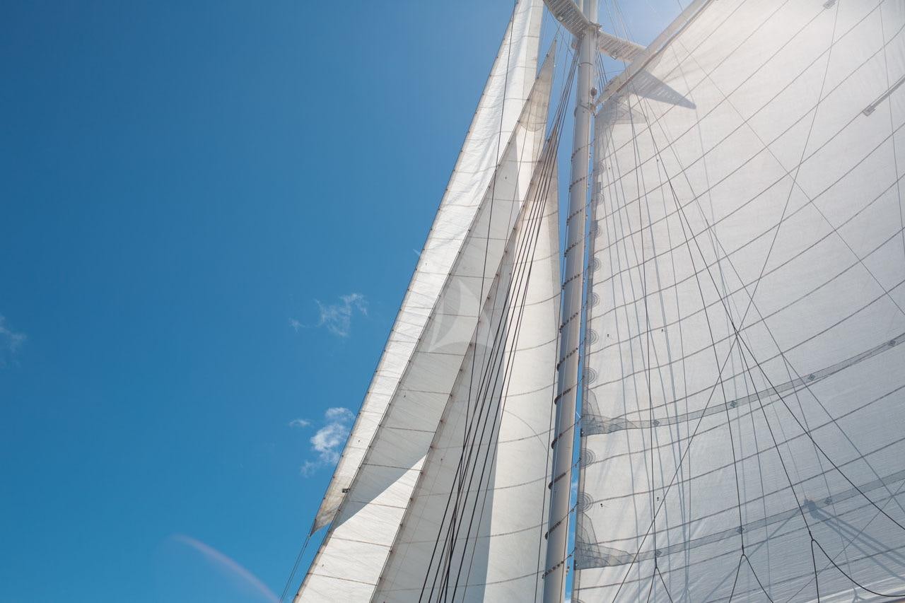 Powered by 9,000-square-feet of sail and a Yanmar 6 AYM engine, MUTIARA LAUT can reach 10 knots.