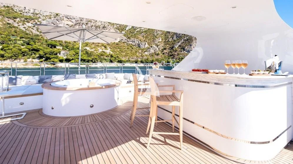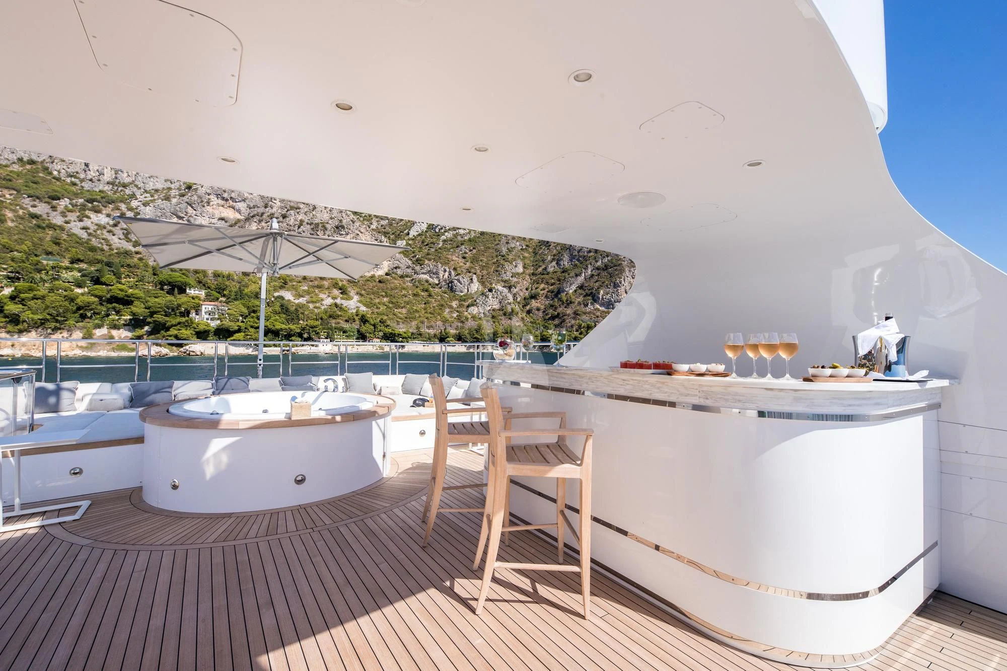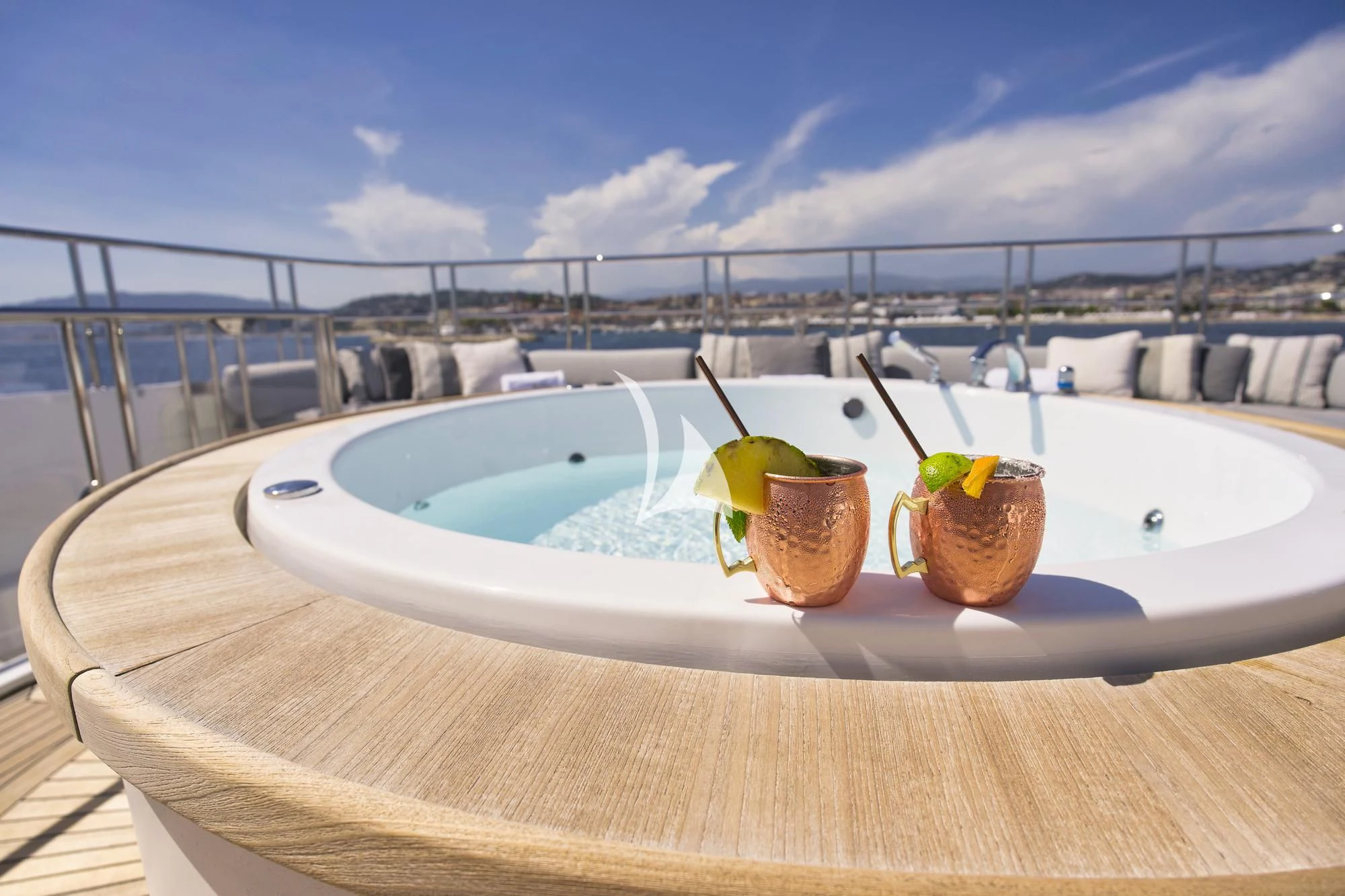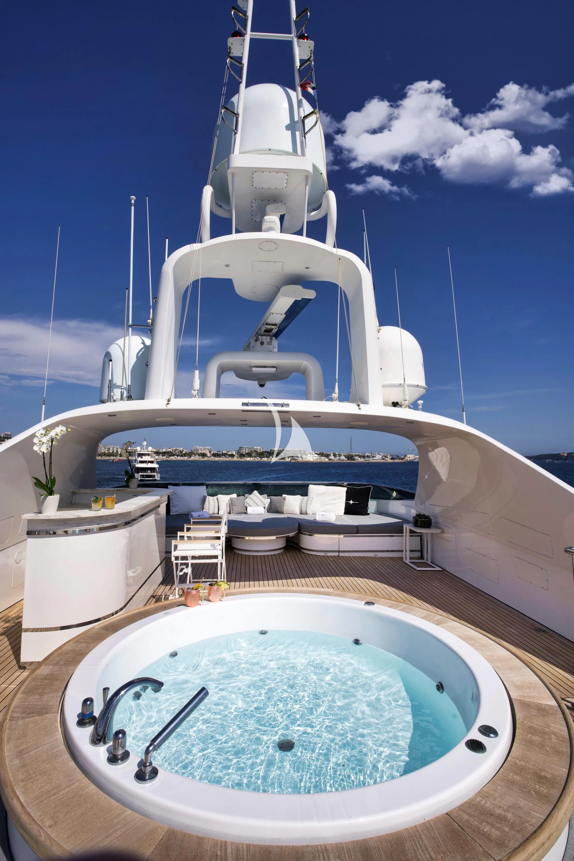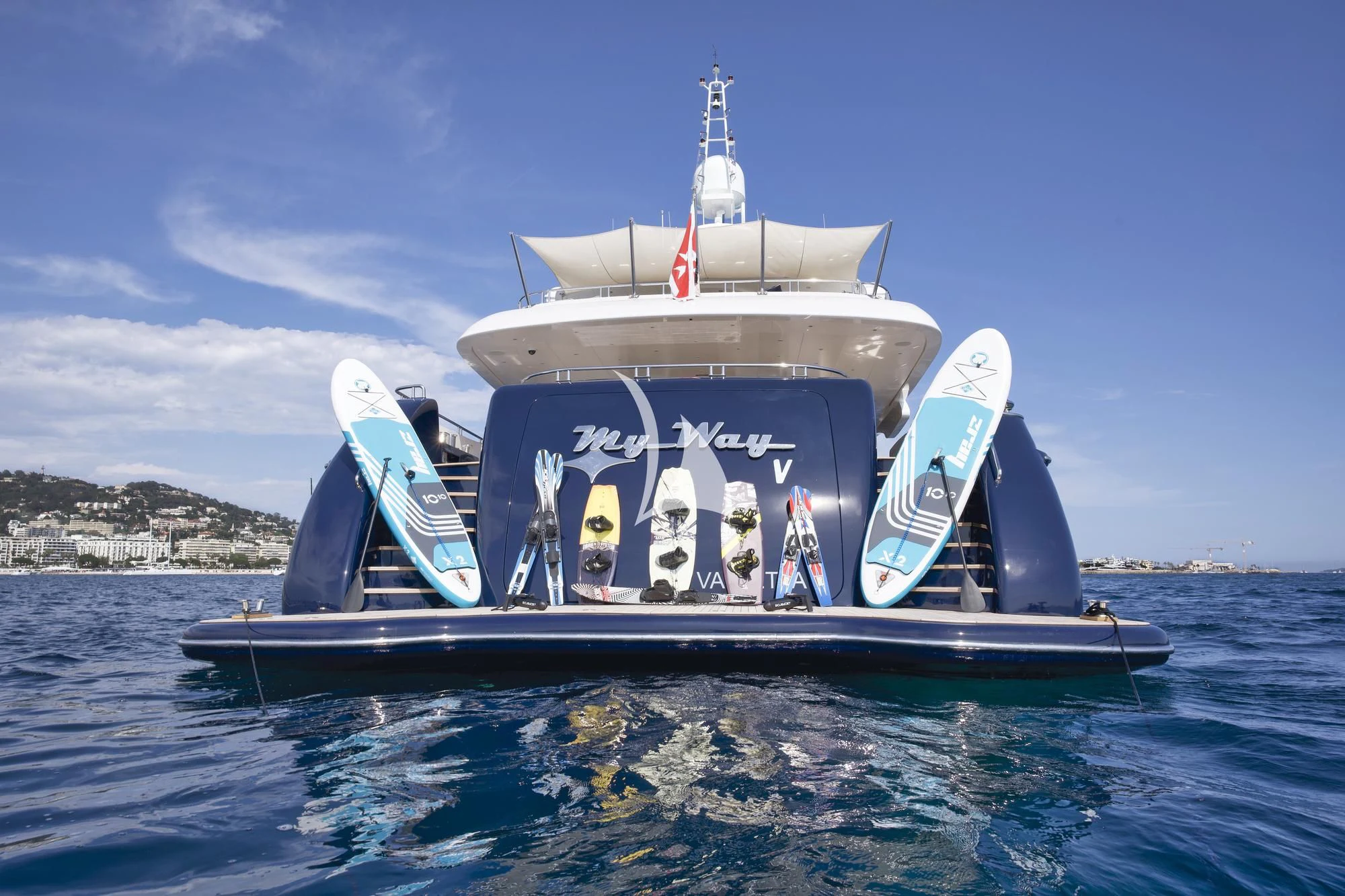 The deck spaces of MY WAY V are as impressive as the interior areas. From alfresco dining to sun lounge spaces to her Jacuzzi and array of water toys, guests will relish their time on deck while enjoying a luxury yacht charter on MY WAY V.
