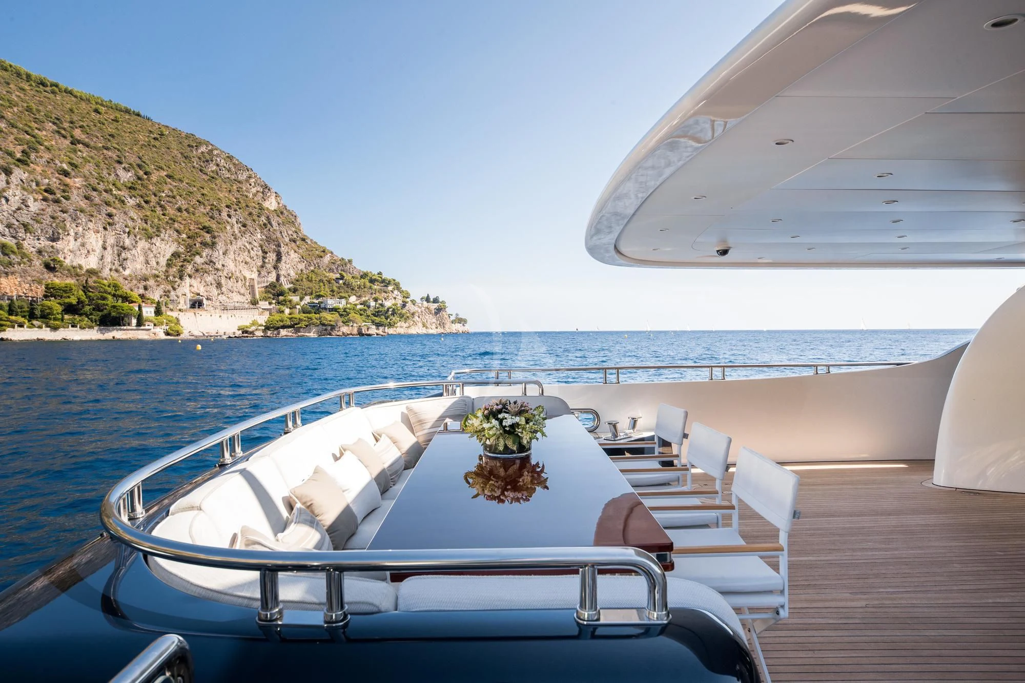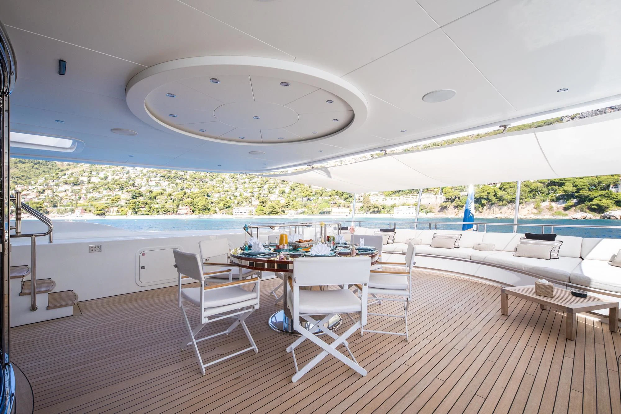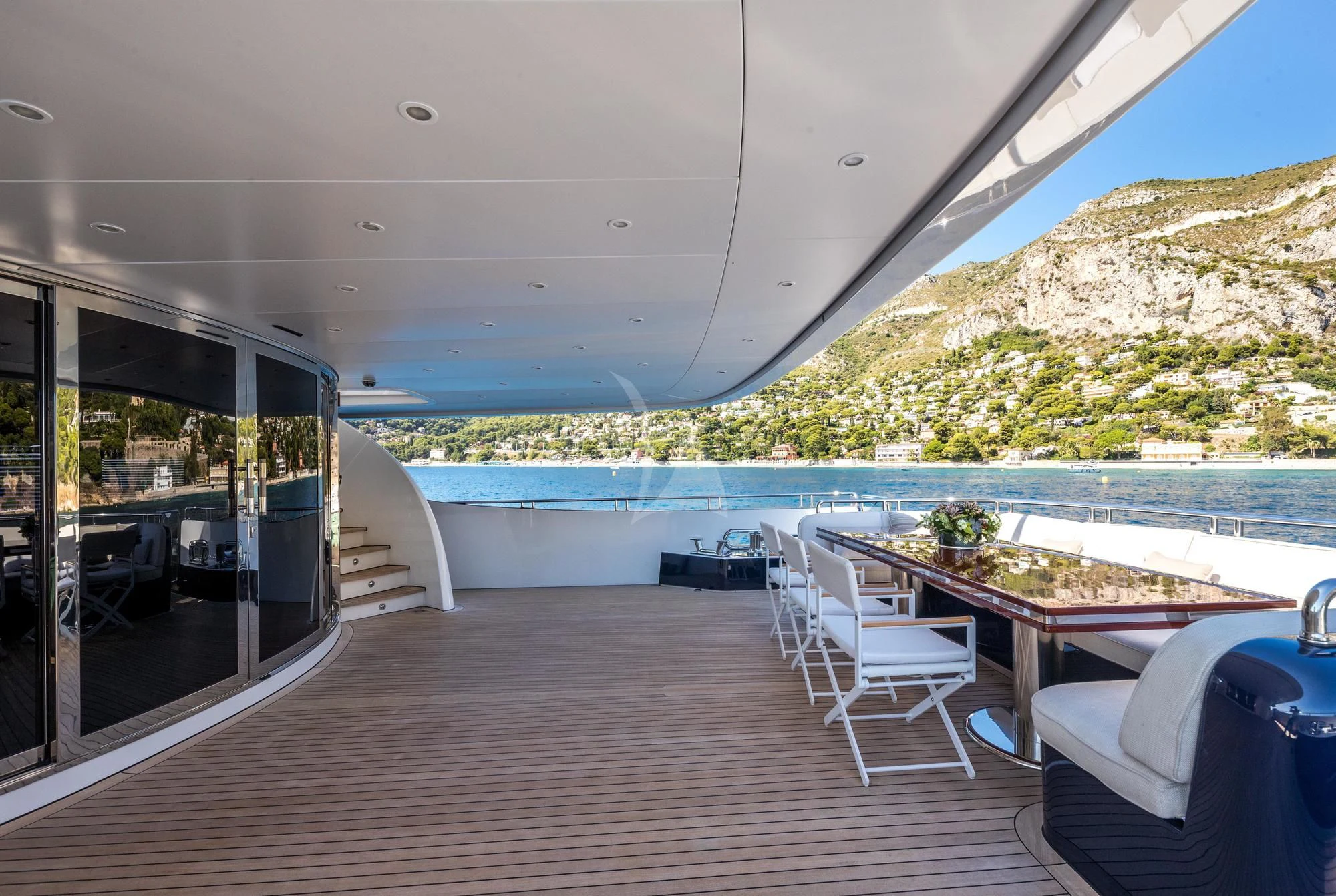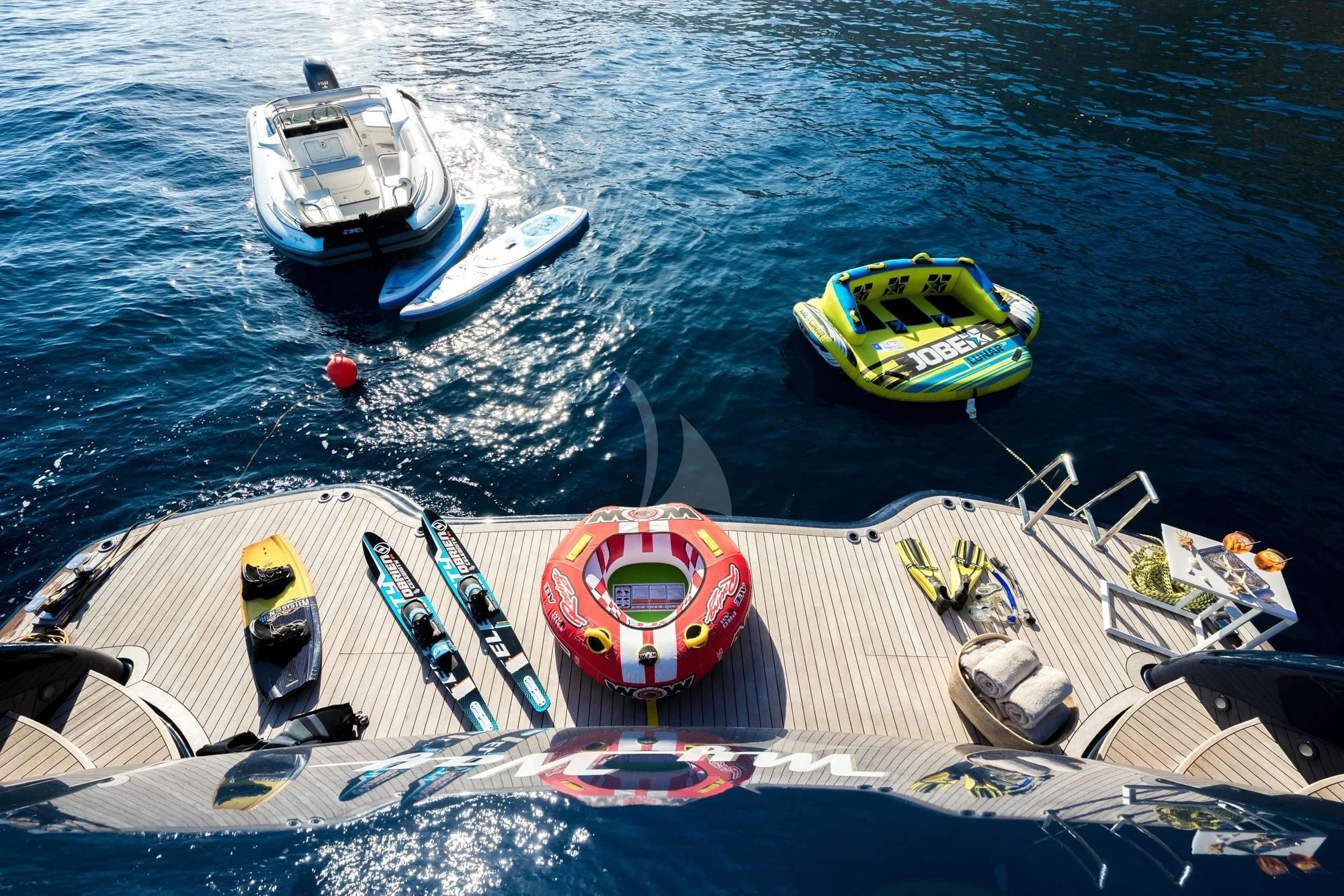 The deck spaces of MY WAY V are as impressive as the interior areas. From alfresco dining to sun lounge spaces to her Jacuzzi and array of water toys, guests will relish their time on deck while enjoying a luxury yacht charter on MY WAY V.