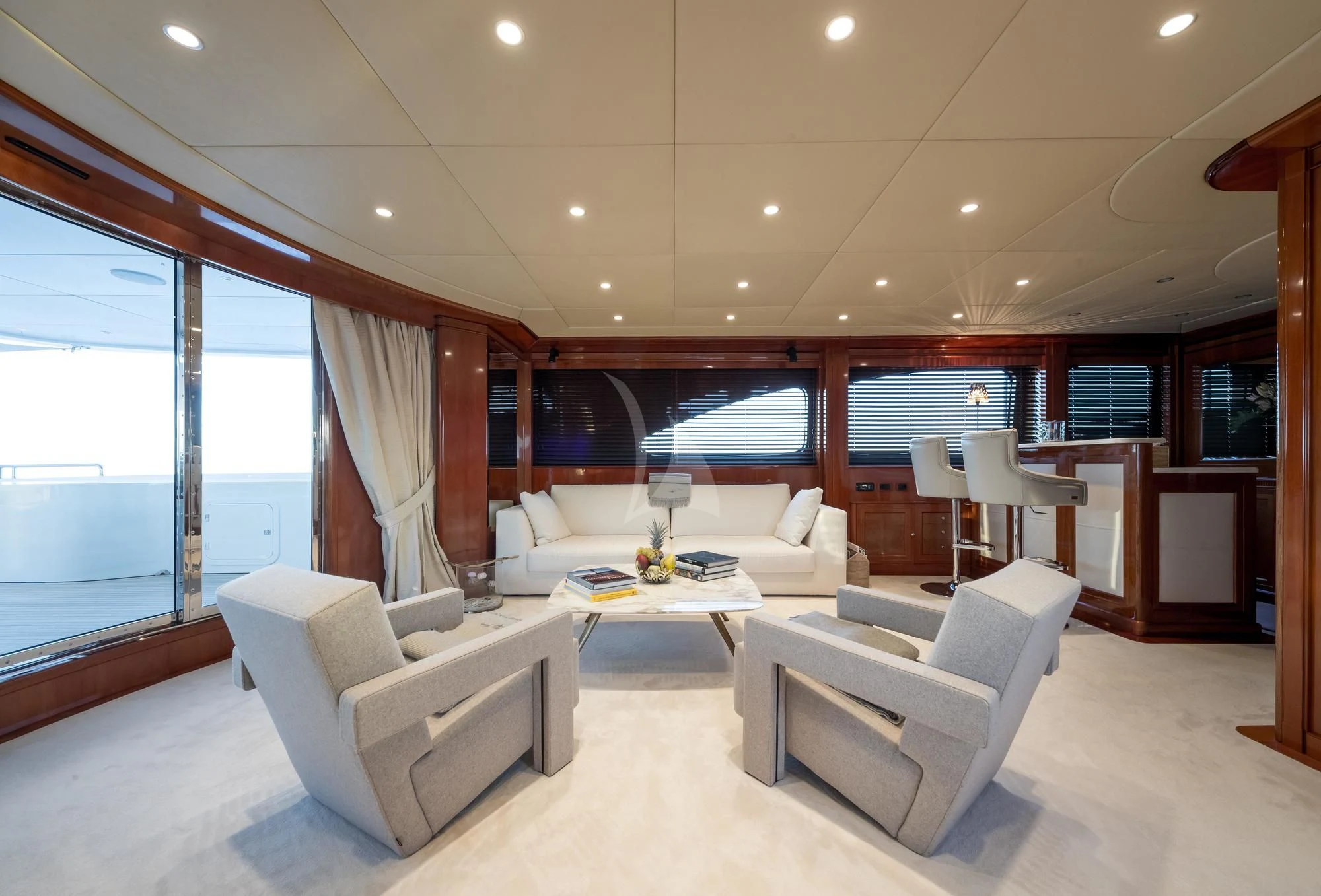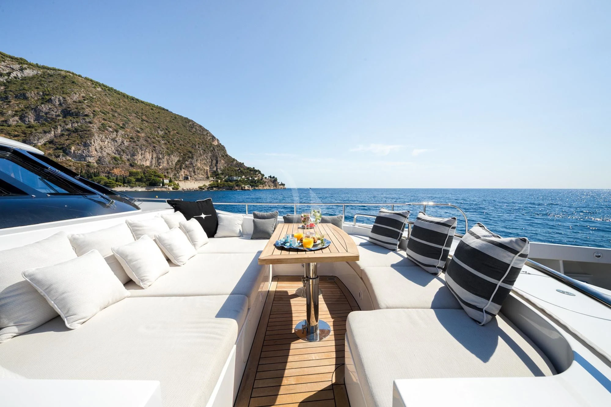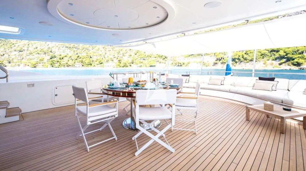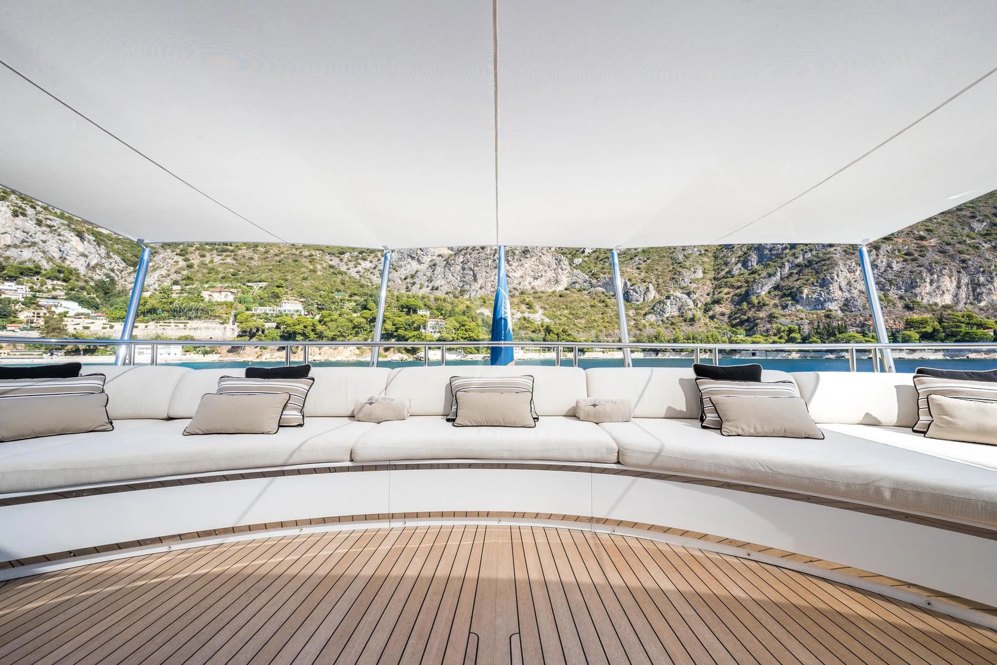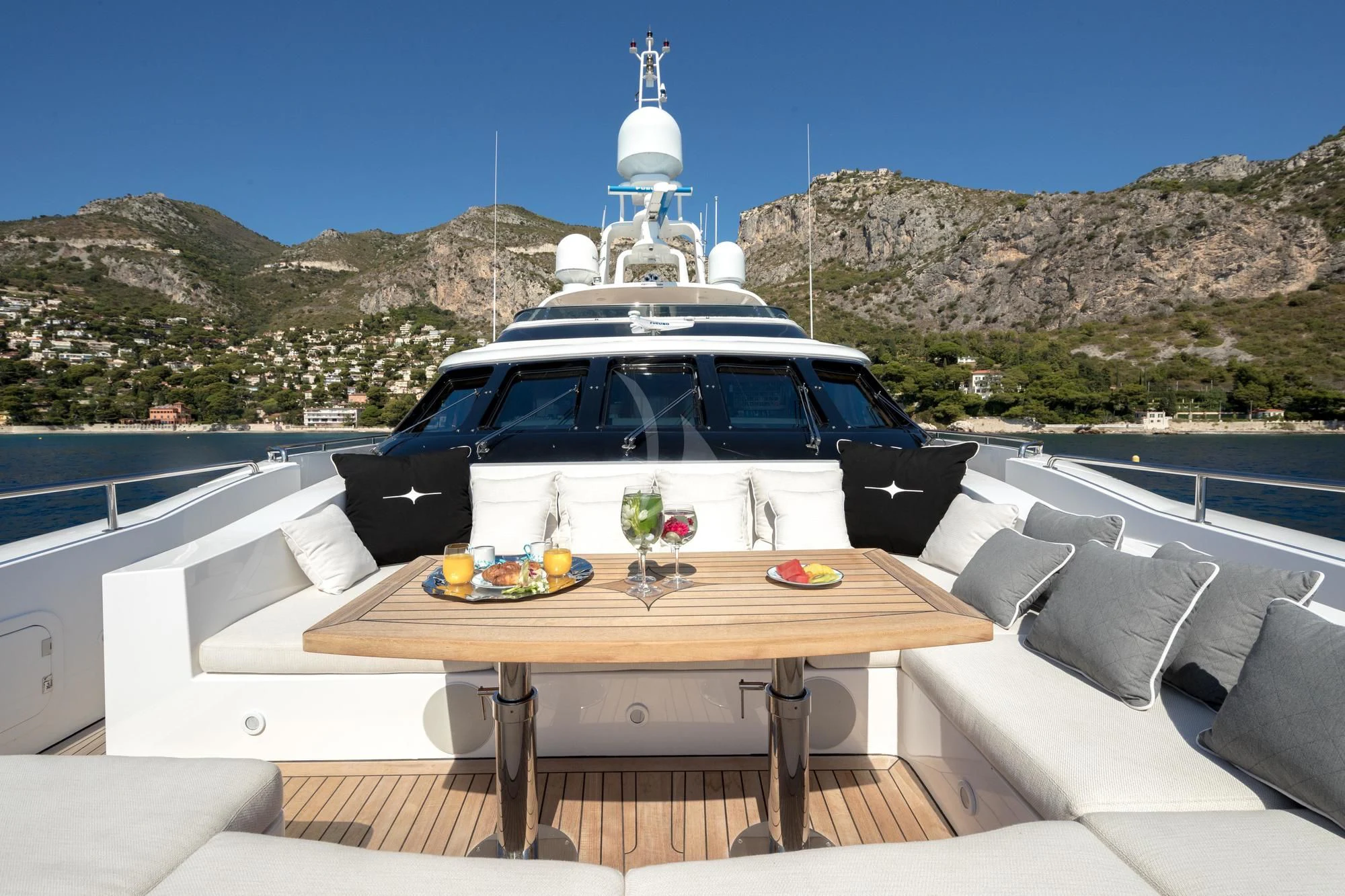 The deck spaces of MY WAY V are as impressive as the interior areas. From alfresco dining to sun lounge spaces to her Jacuzzi and array of water toys, guests will relish their time on deck while enjoying a luxury yacht charter on MY WAY V.