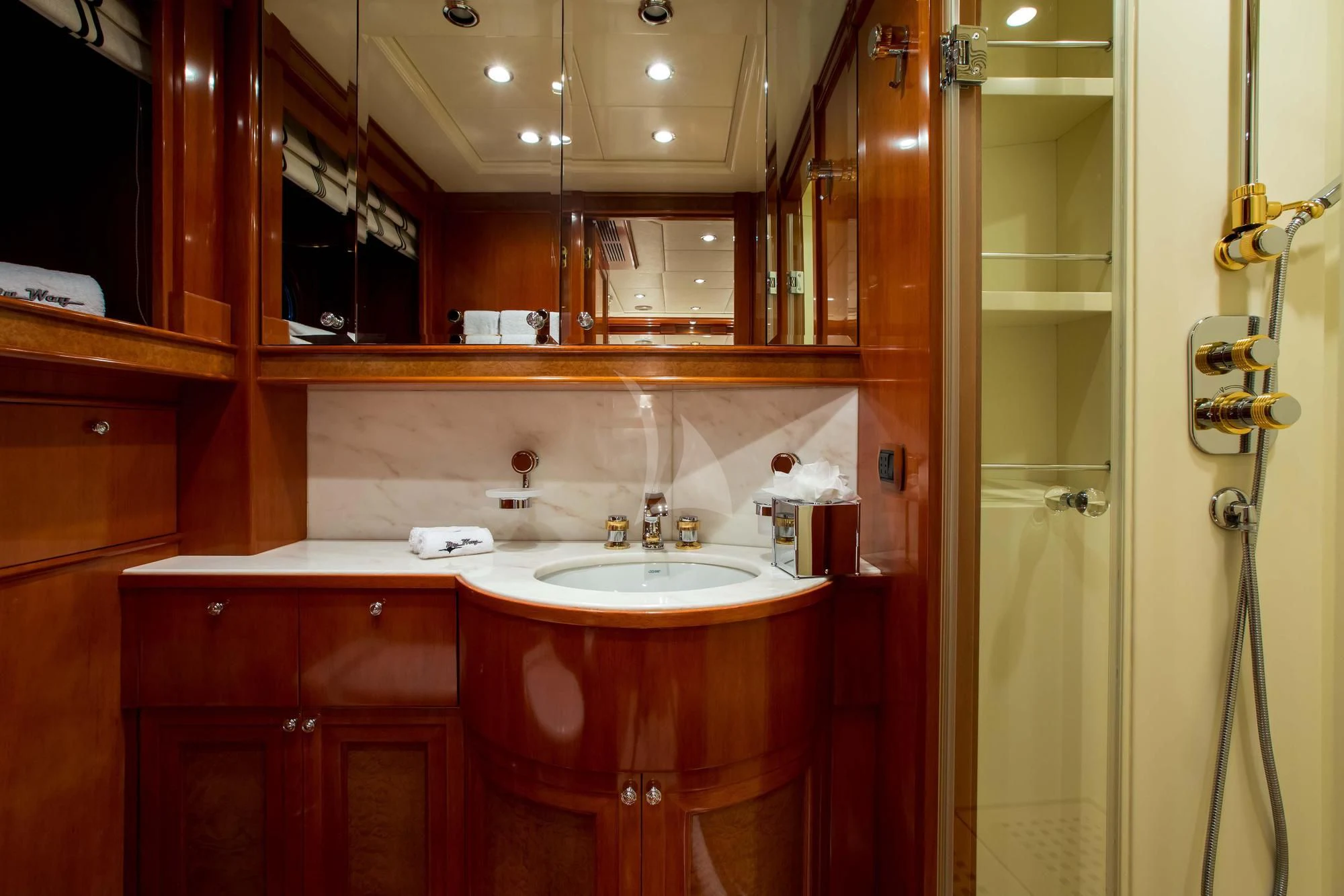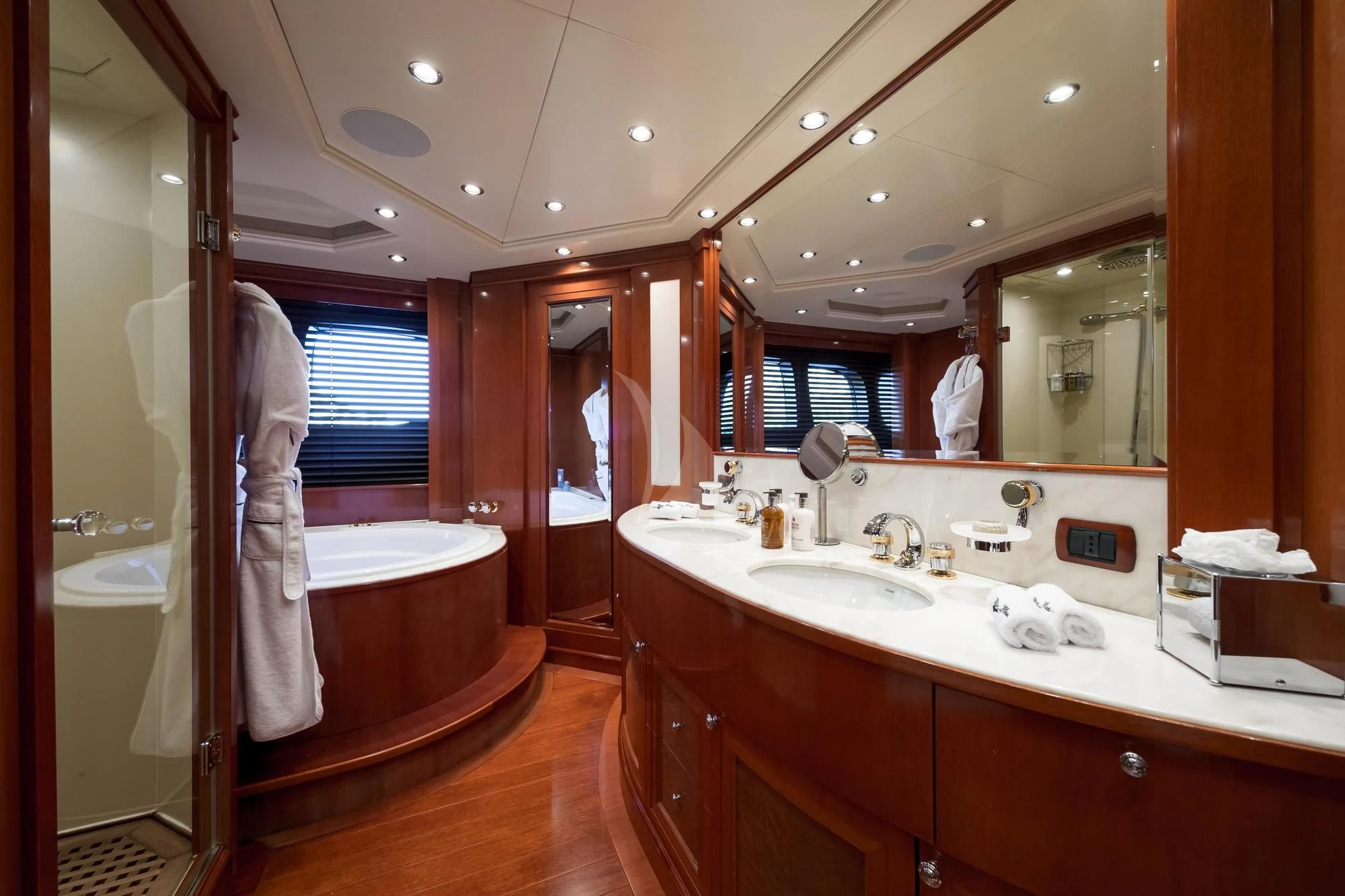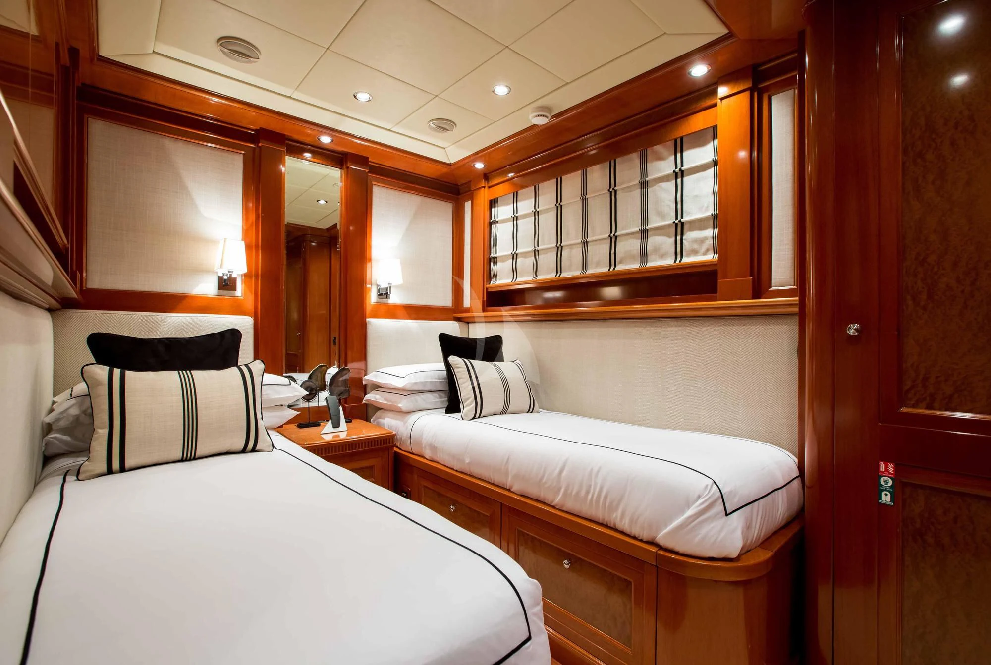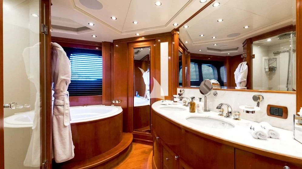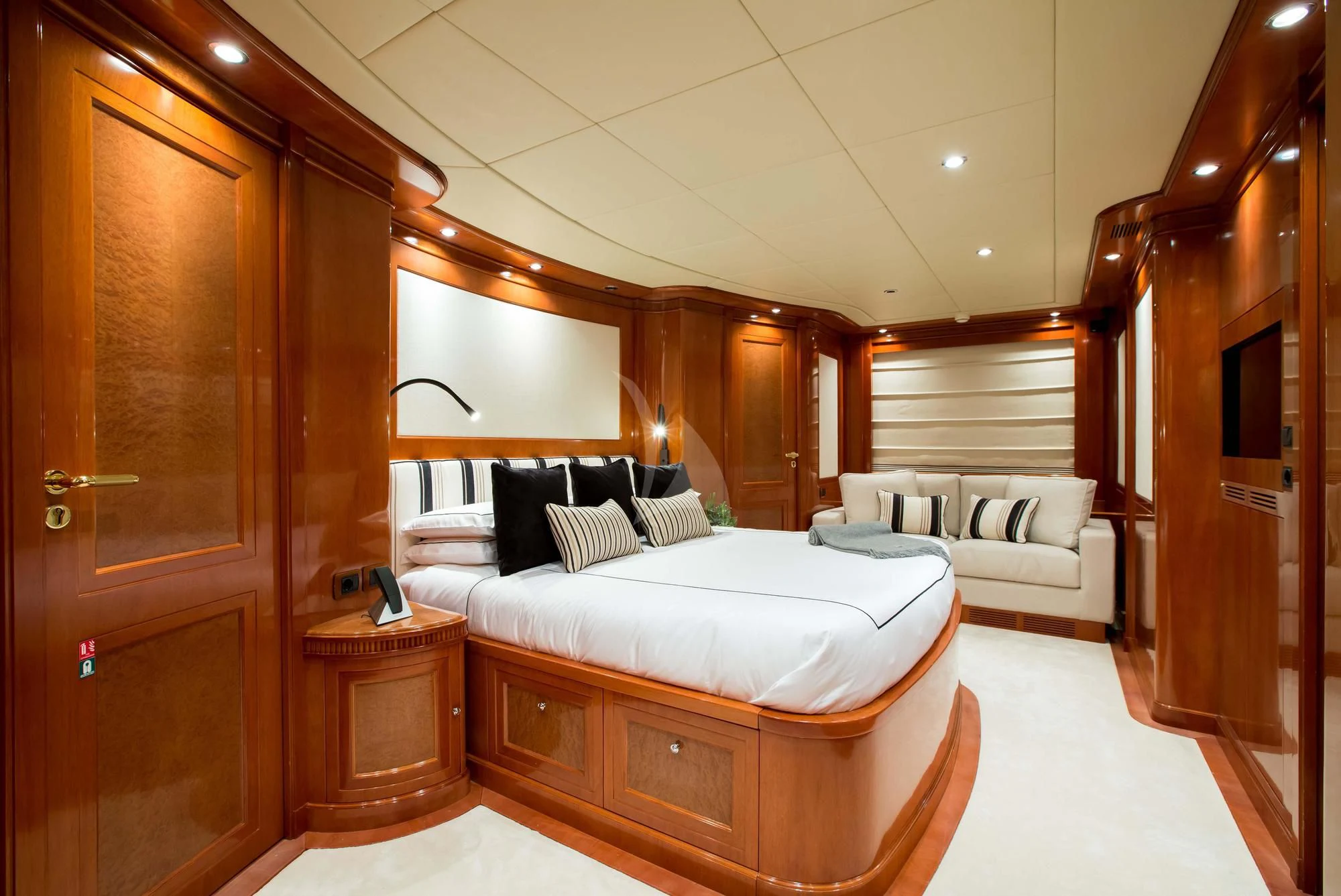 Ten guests are accommodated in the five staterooms aboard MY WAY V. These staterooms include a beautifully appointed master suite, a VIP stateroom, one double stateroom and two twin staterooms. The yacht is run by a professional crew of eight.