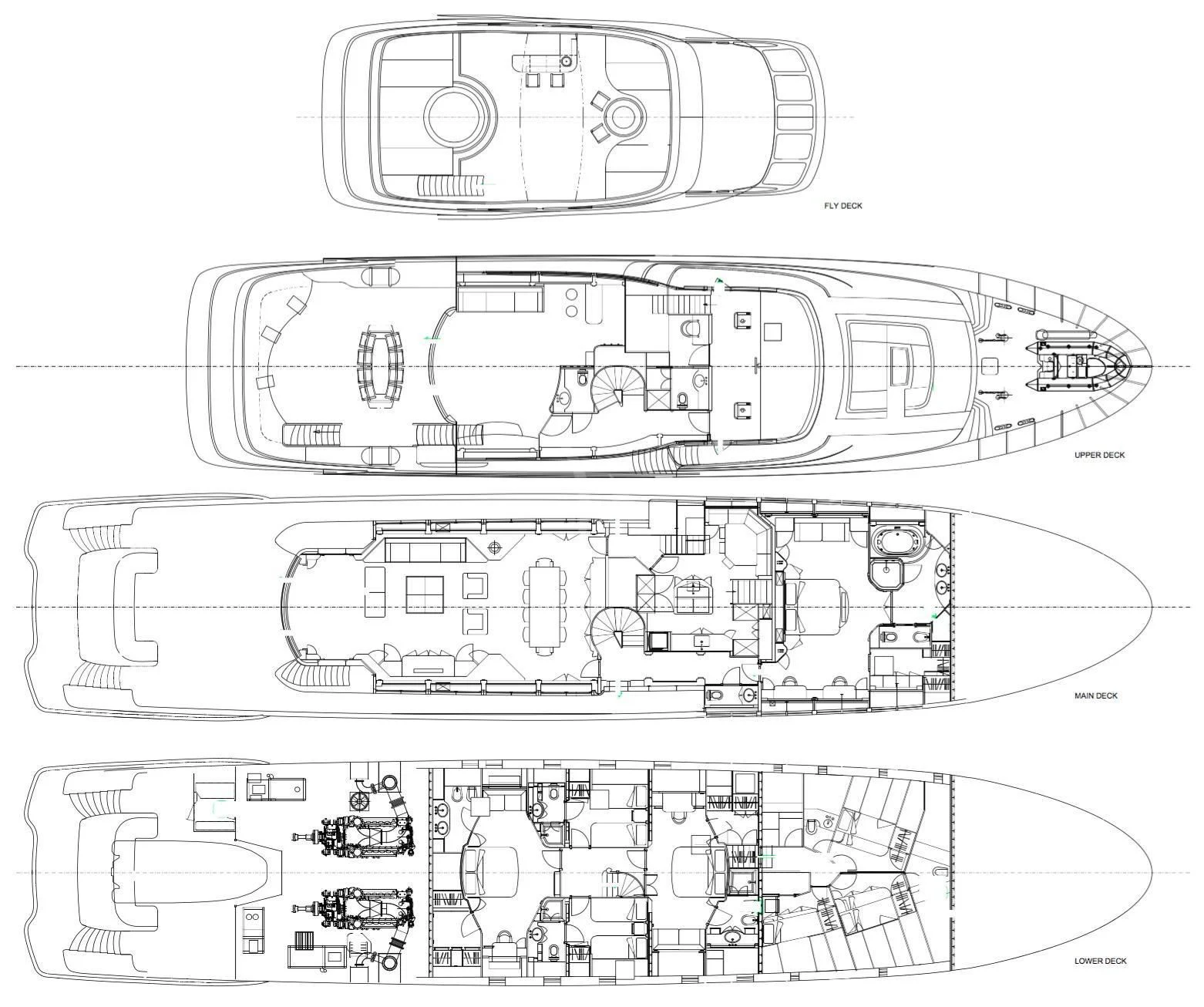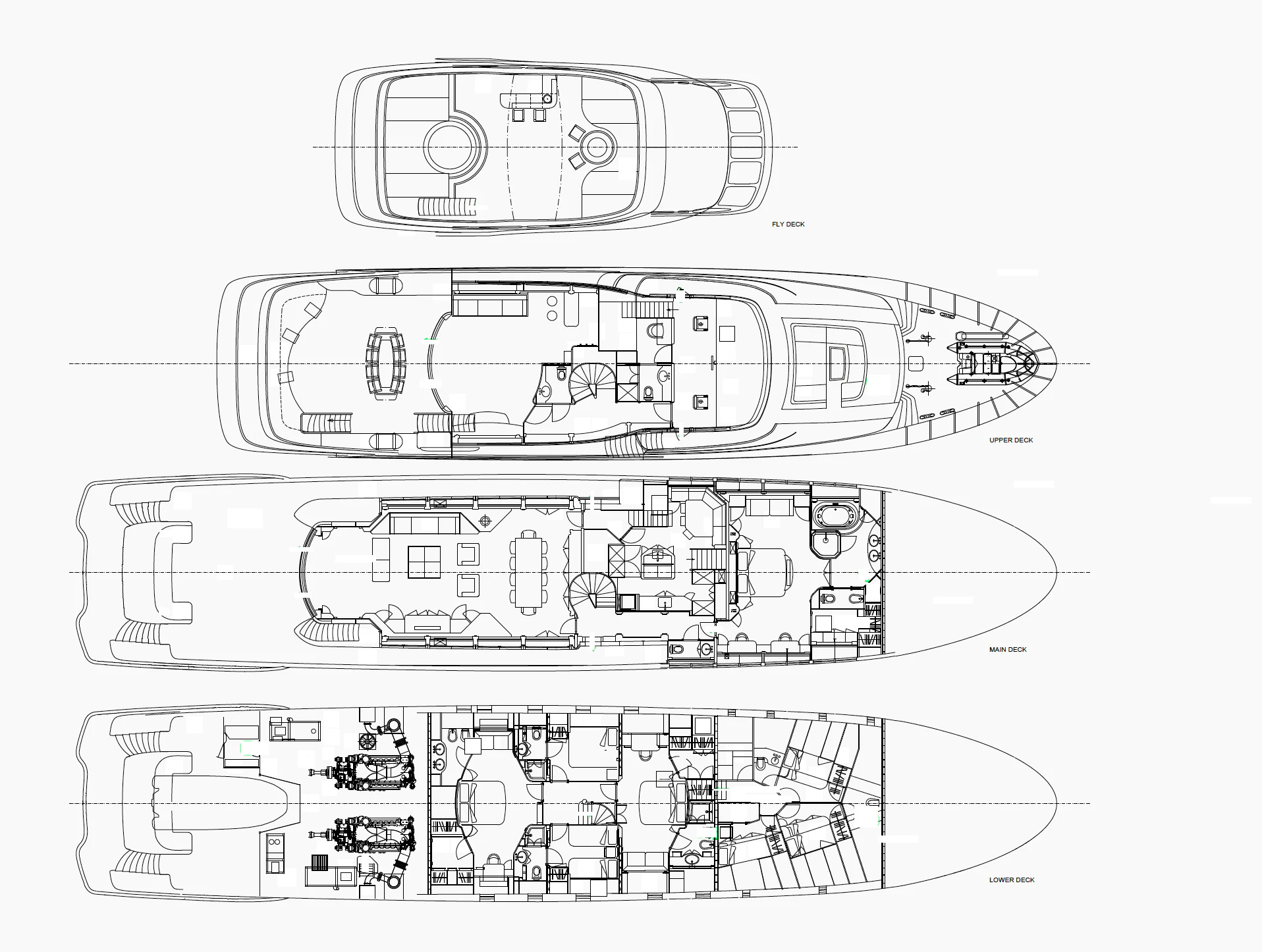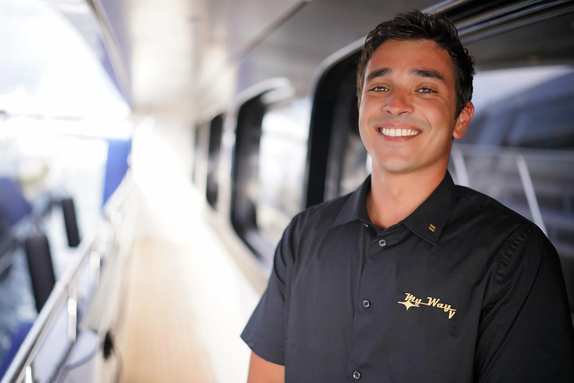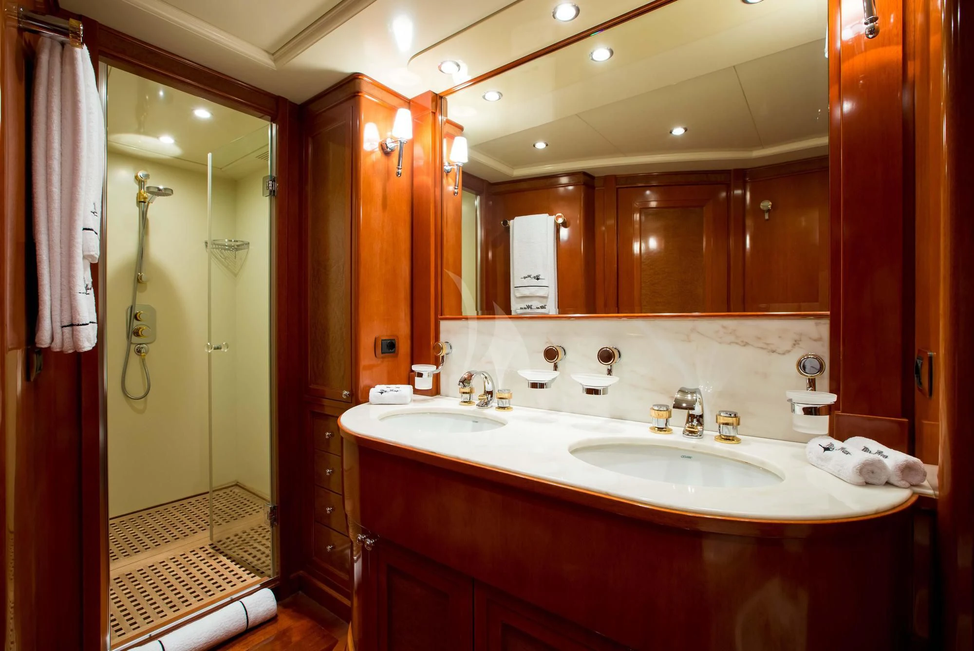 Ten guests are accommodated in the five staterooms aboard MY WAY V. These staterooms include a beautifully appointed master suite, a VIP stateroom, one double stateroom and two twin staterooms. The yacht is run by a professional crew of eight.