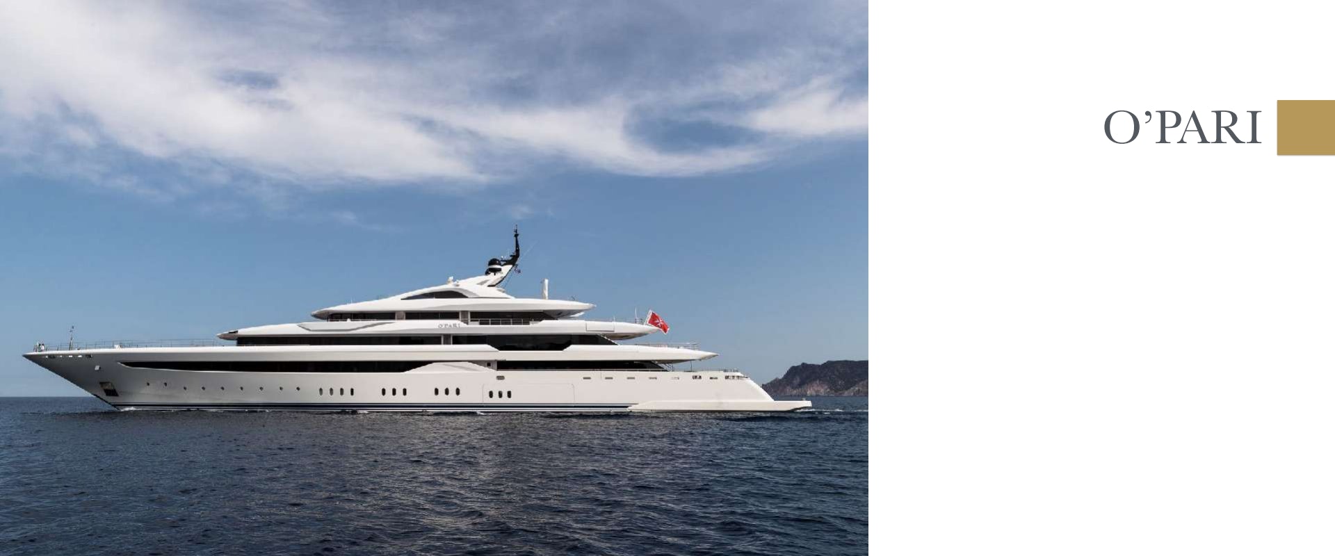 Powered by twin Caterpillar 3516C-HD engines, O’PARI has a cruising speed of 16 knots and is capable of maximum speeds of up to 18 knots. She offers a sustainable cruising experience thanks to the use of the latest engineering systems.