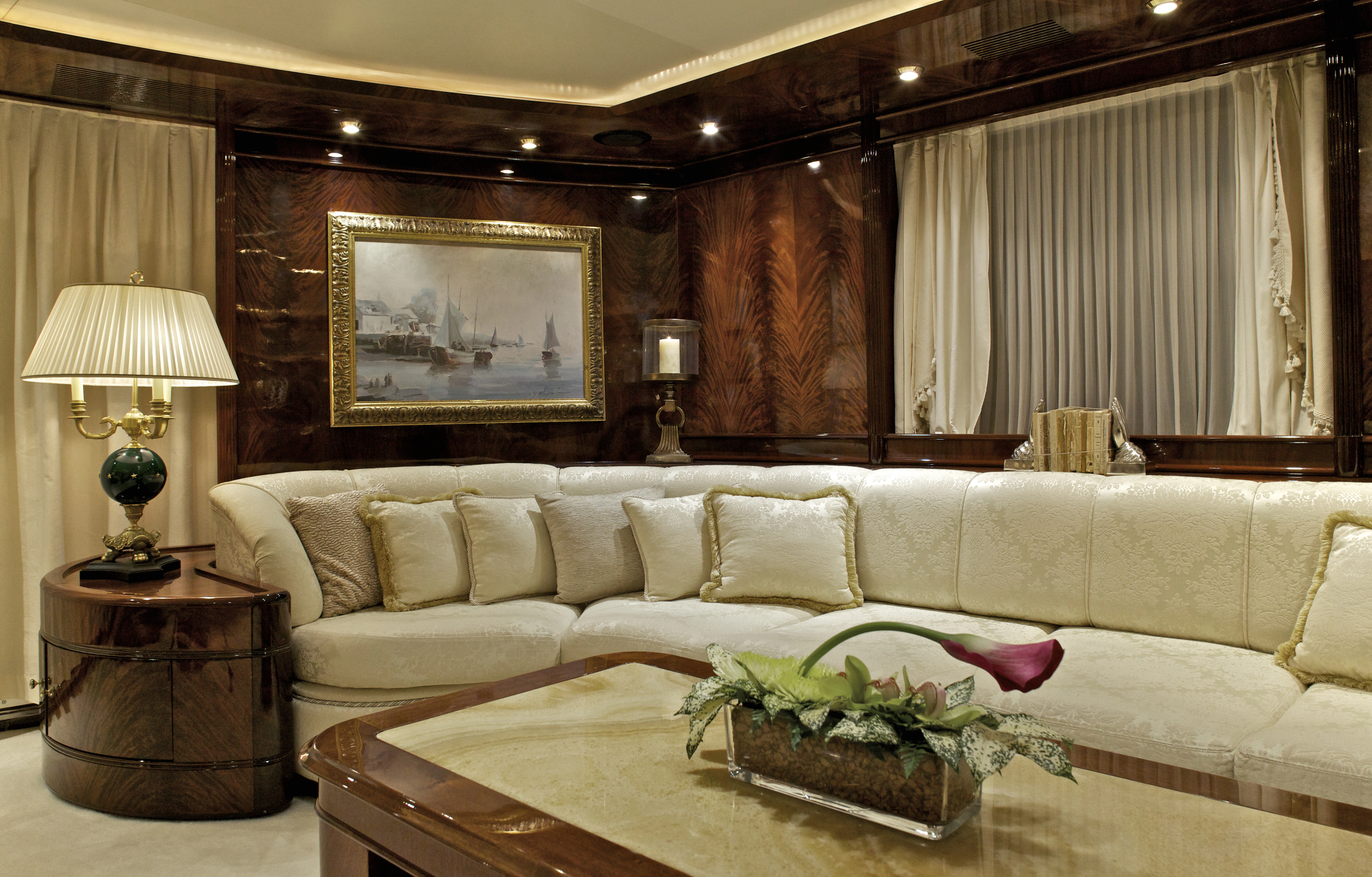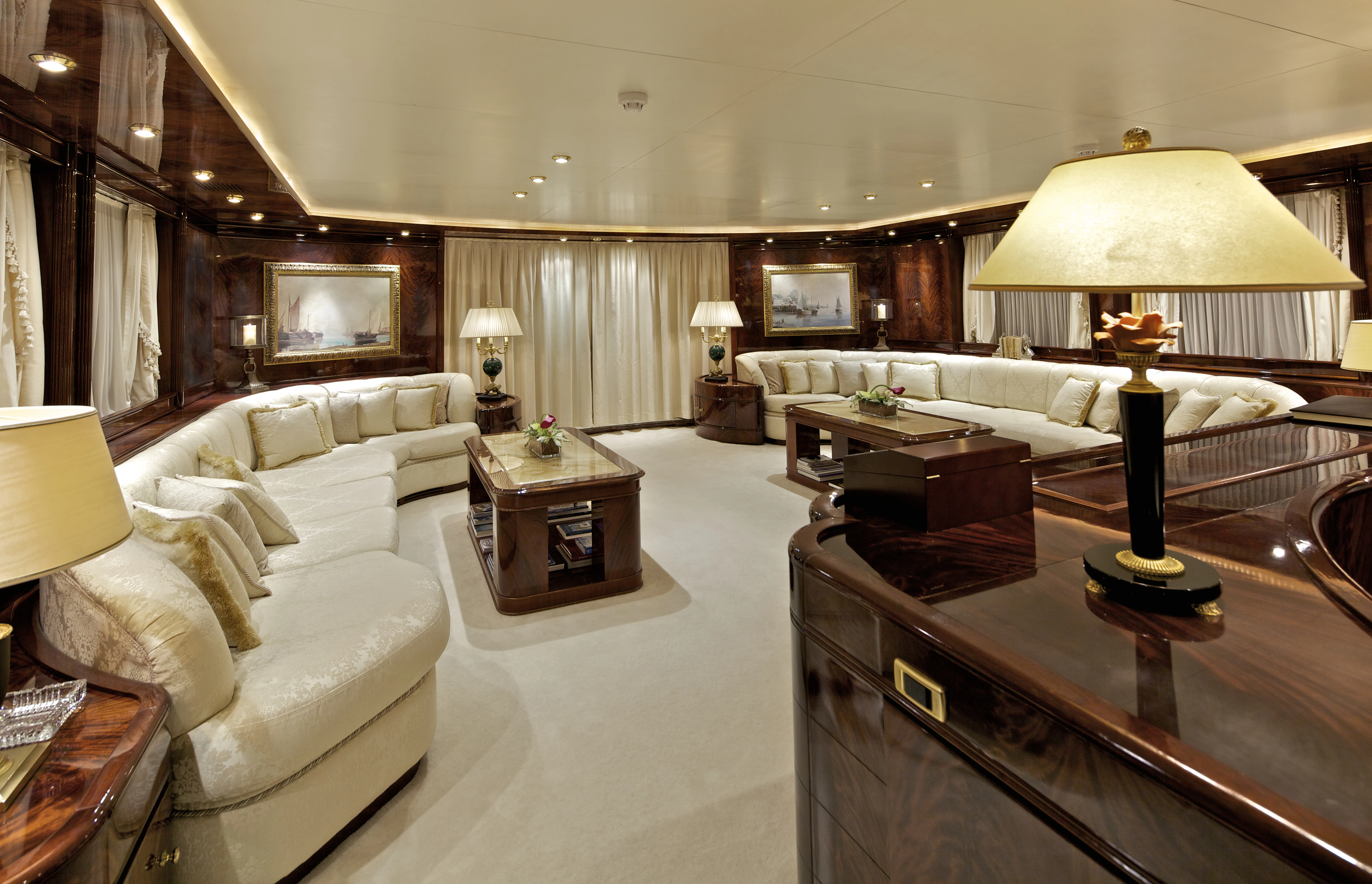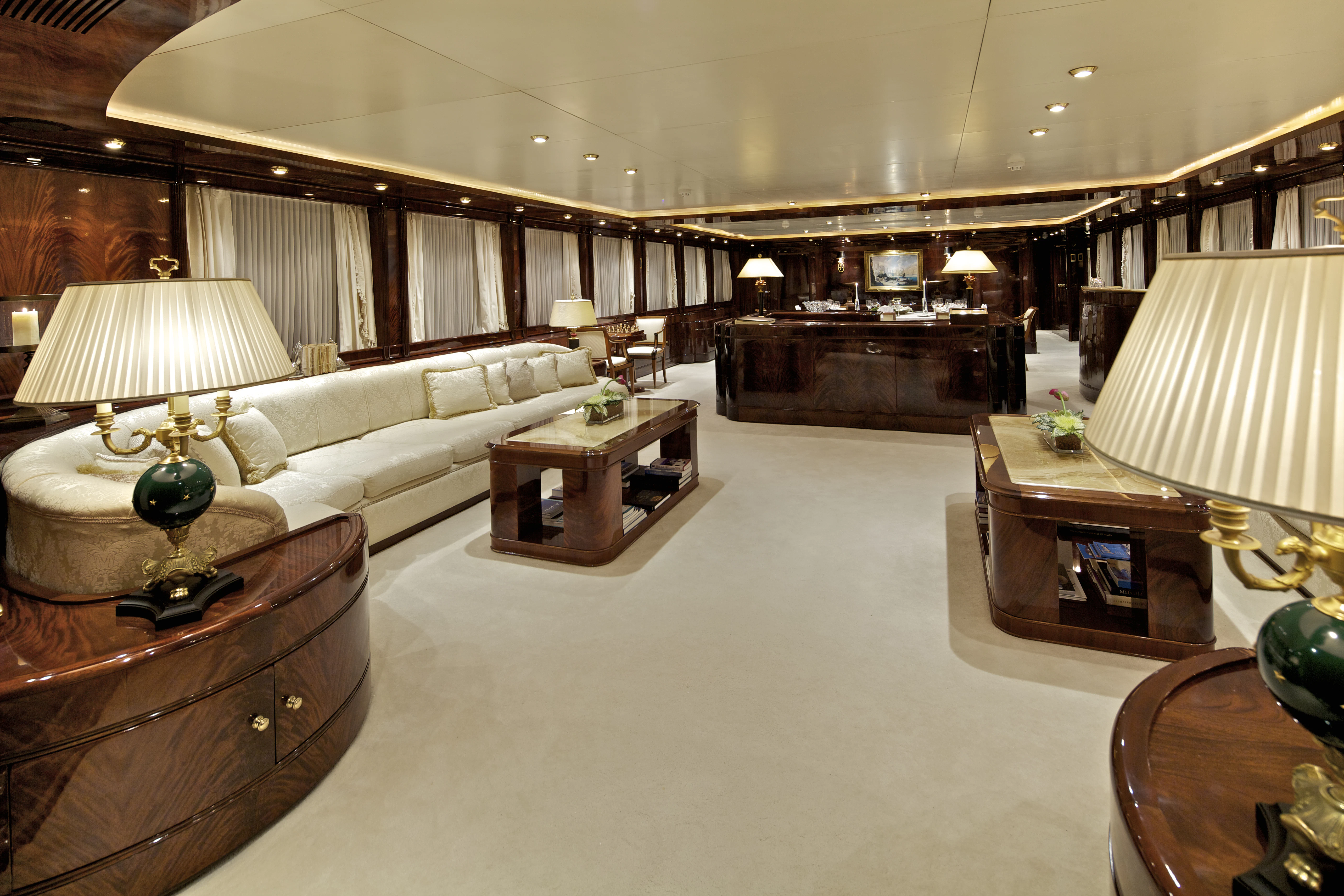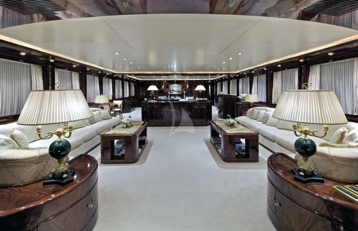 In 2004, Siar-Moschini combined forces with Giorgio Vafiadis for interior design and the impressive 134.5-foot (41m) O'RION was the result. The luxury yacht has a breathtaking interior that showcases three kinds of Amazon wood. The interior makes guests feel right at home with its welcoming ambiance and plush furnishings.