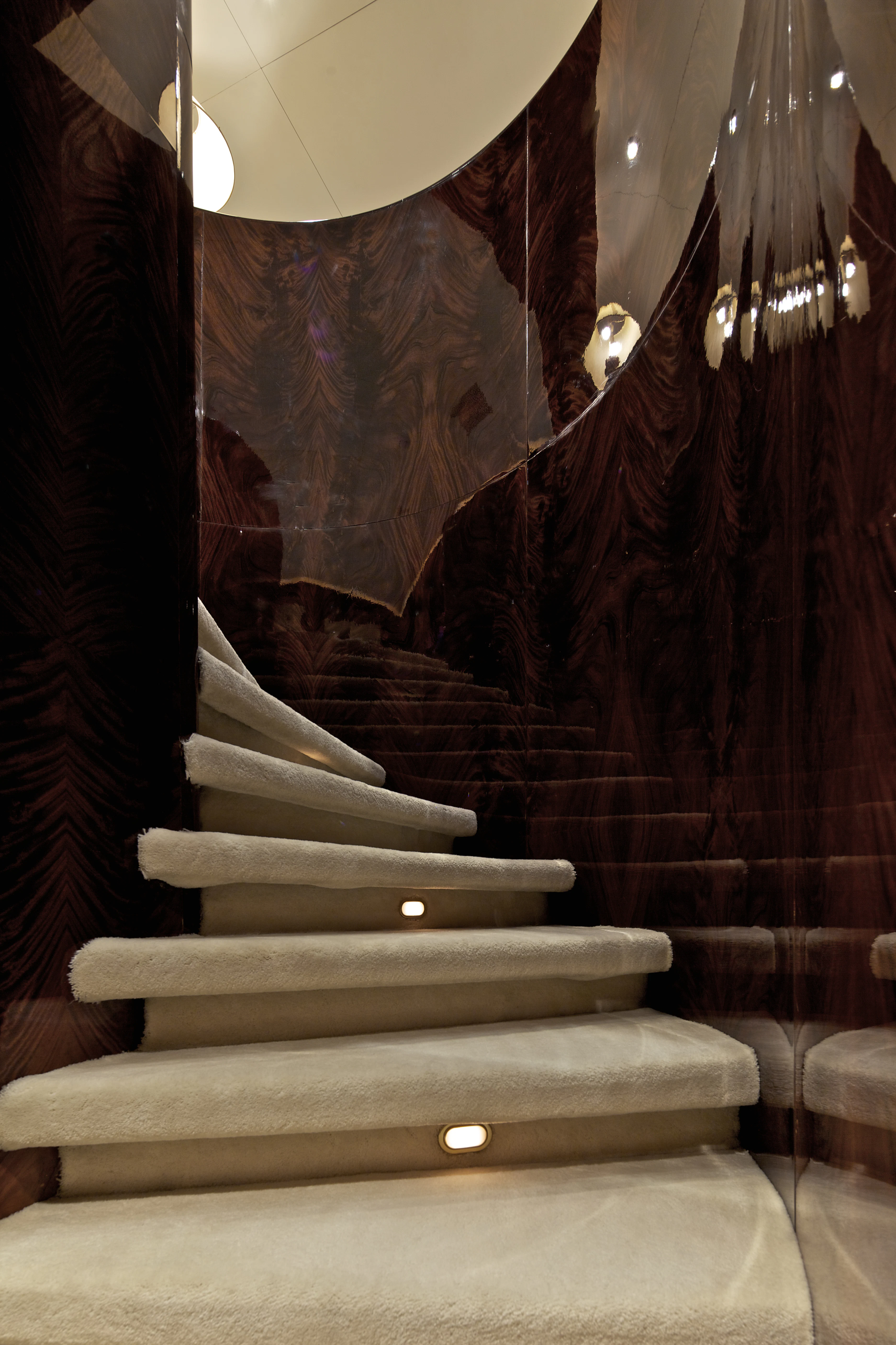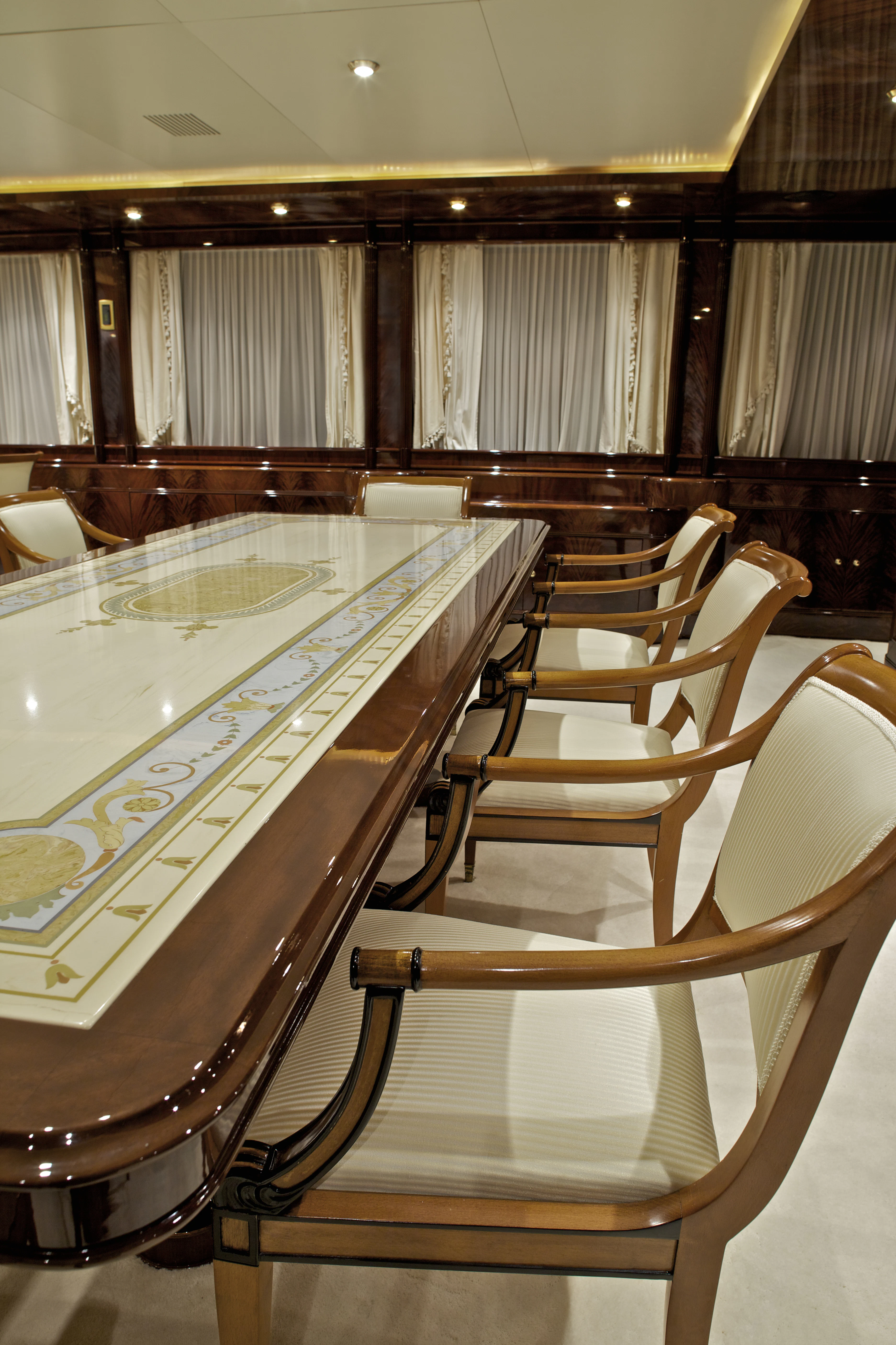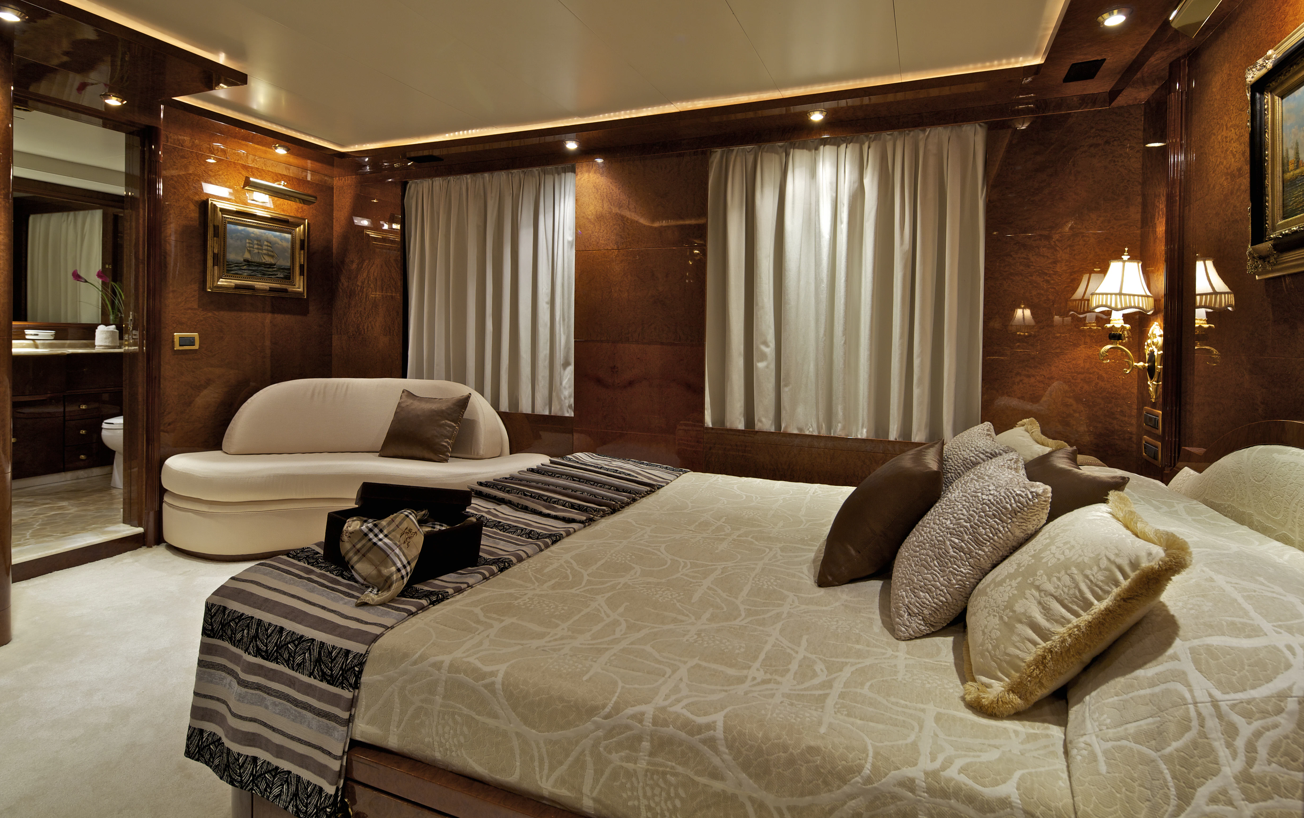 In 2004, Siar-Moschini combined forces with Giorgio Vafiadis for interior design and the impressive 134.5-foot (41m) O'RION was the result. The luxury yacht has a breathtaking interior that showcases three kinds of Amazon wood. The interior makes guests feel right at home with its welcoming ambiance and plush furnishings.
