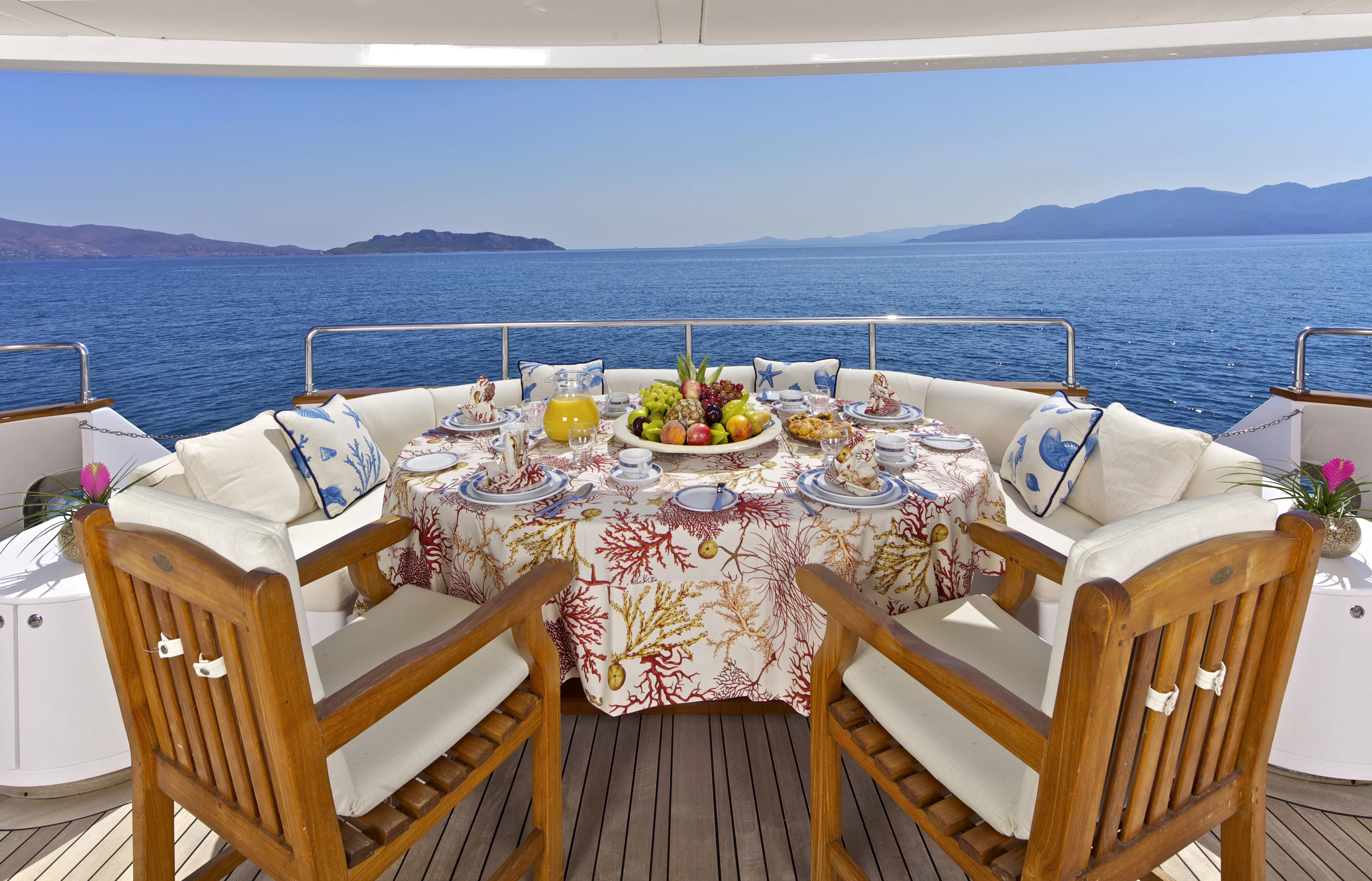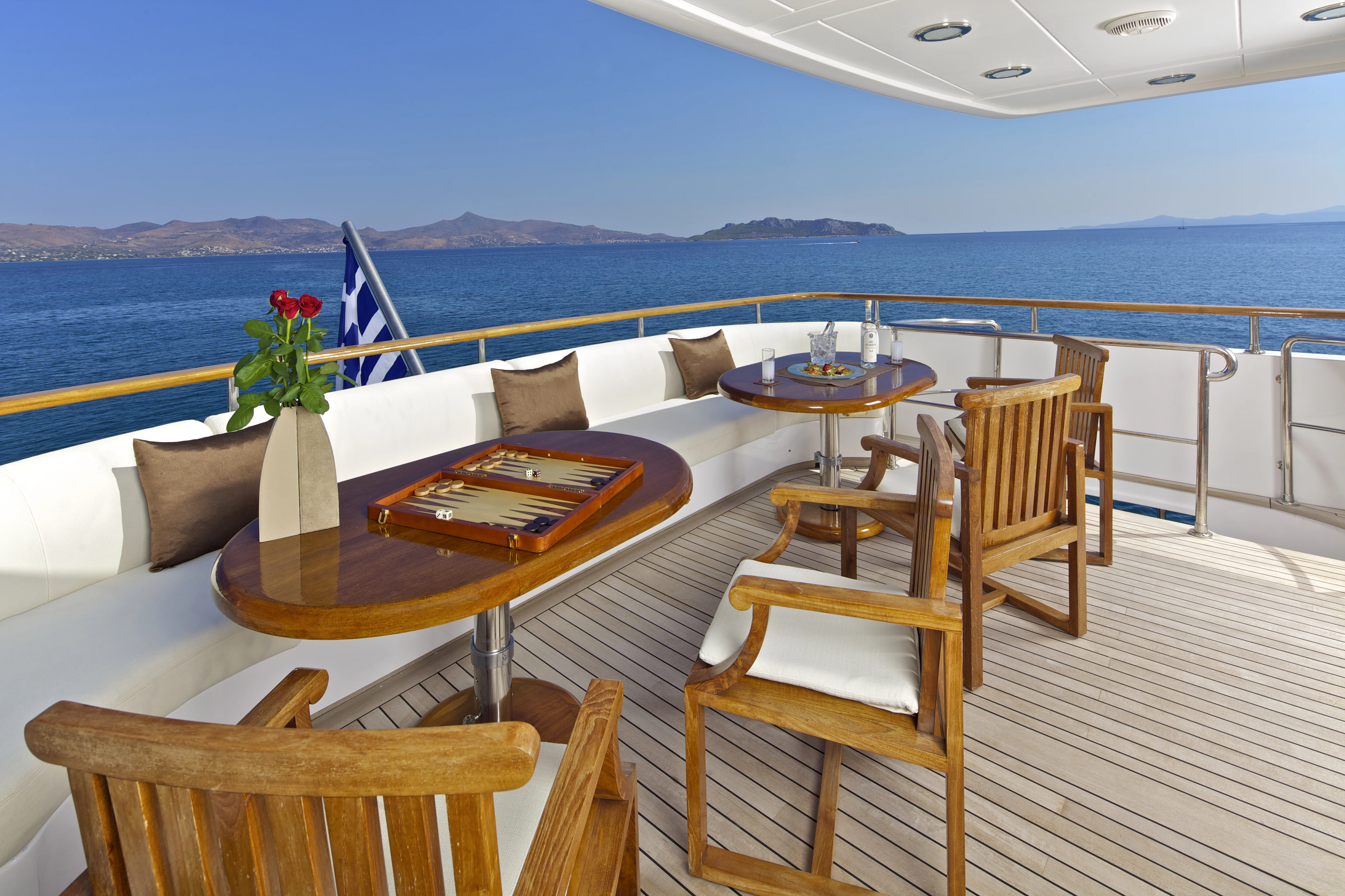 Over the years, the luxury charter yacht has been well maintained. As such, she is in impressive condition, upholding her reputation as a desirable charter yacht. O'RION has a semi-displacement GRP hull and cruises at 15 knots, with a maximum speed of 17 knots. She is powered by twin Deutz engines.