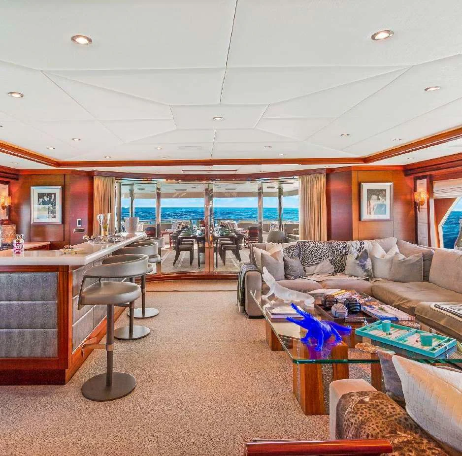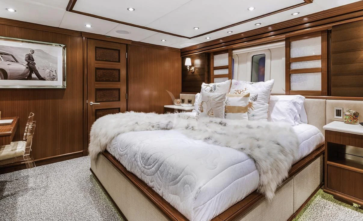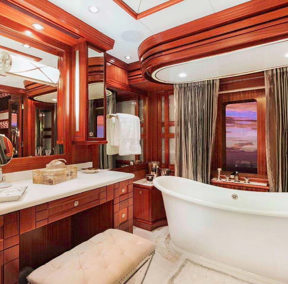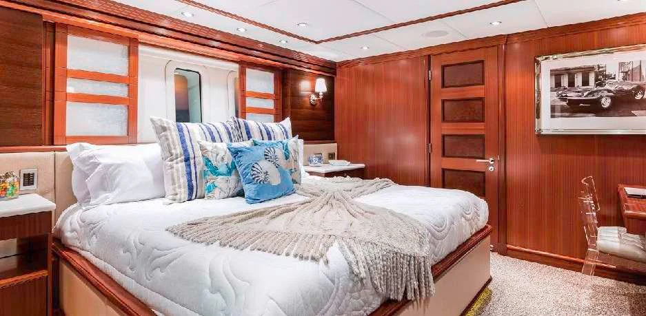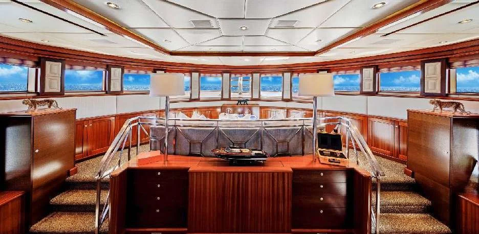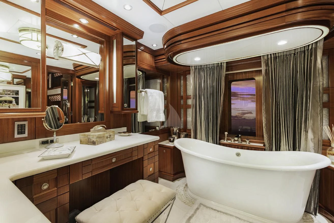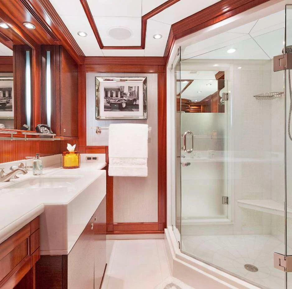 The luxury charter yacht welcomes 12 guests in the superior comfort of five beautifully appointed staterooms. The superyacht showcases a unique split-level master suite with a raised forward lounge that has awe-inspiring 270-degree views of the cruising destination.The master stateroom also features a plush king-size bed and his-and-hers en-suite baths with a shower and Jacuzzi tub. The additional staterooms aboard OCEAN CLUB include four double-bed staterooms and one twin-bed stateroom with two Pullmans.