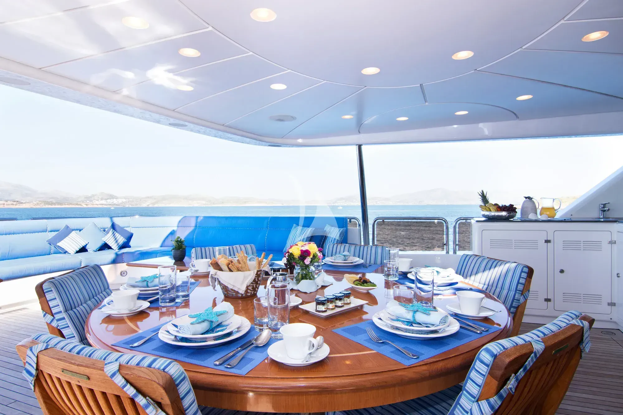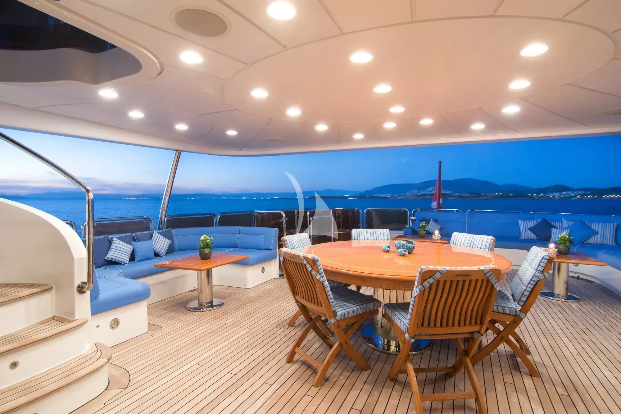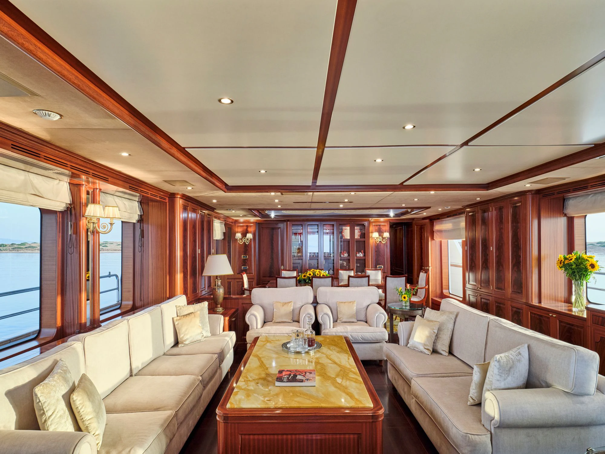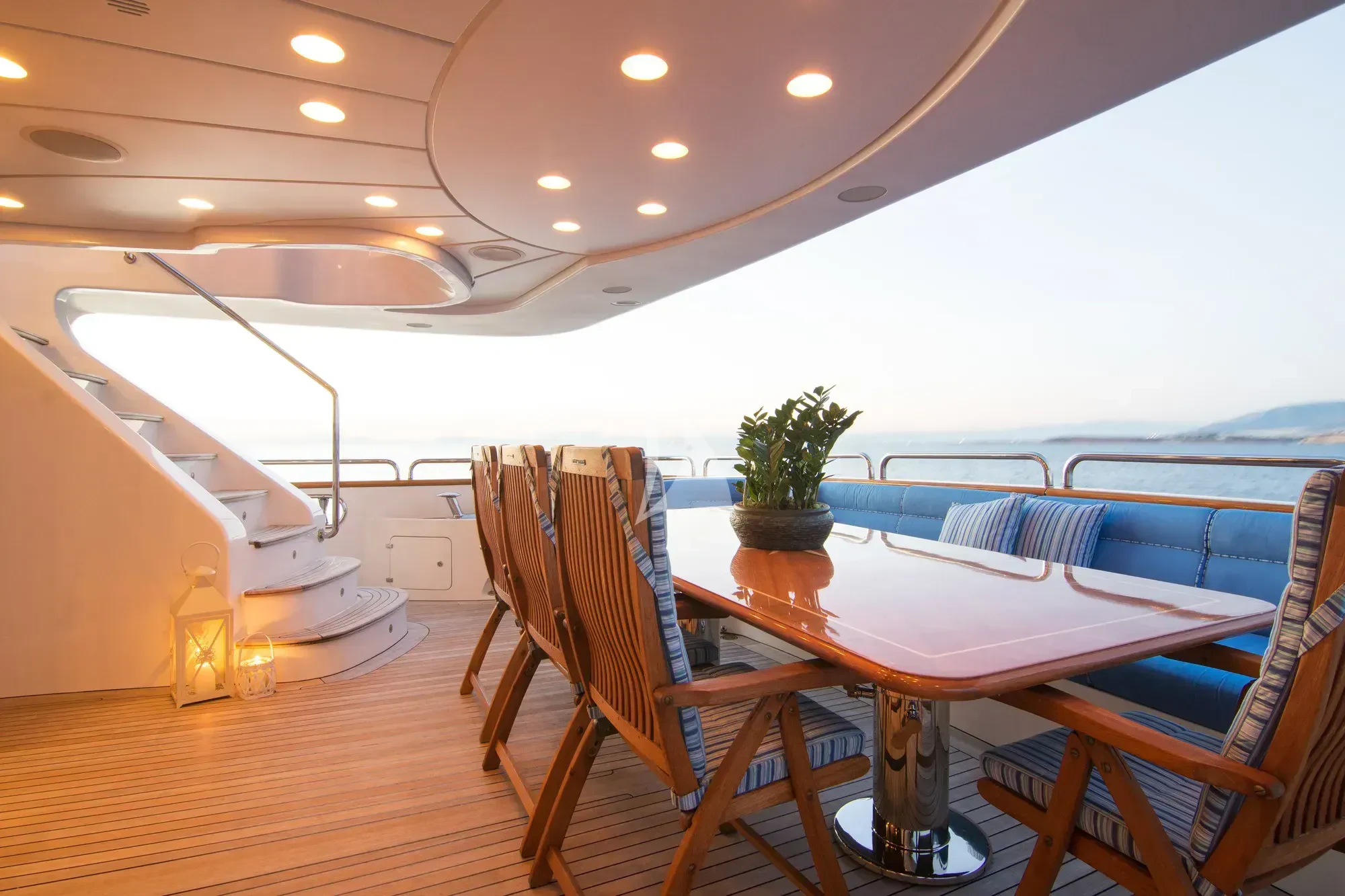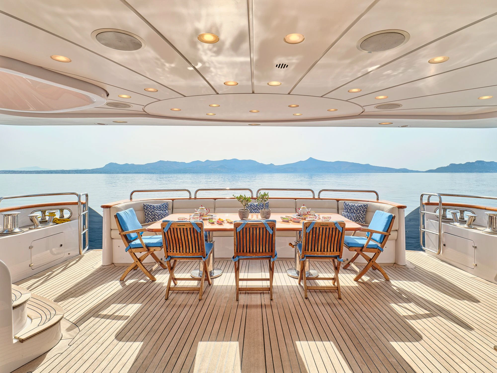Every effort has been made to ensure guests can enjoy a luxury charter experience. OPTION B's interior features elegant styling and large windows. Guests can enjoy the utmost comfort while lounging in the plush comfort of the main salon and skylounge. There is also formal dining in the main salon. Out on deck, the generous, well-designed spaces continue. Attractions include the Jacuzzi on the sun deck, gym equipment, and plenty of space to dine and relax.