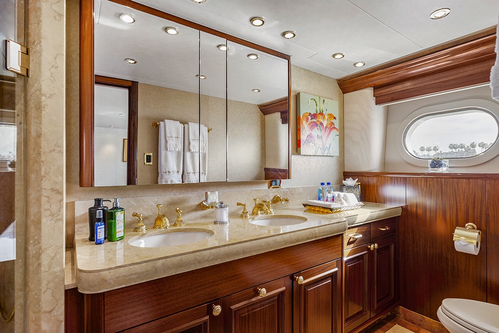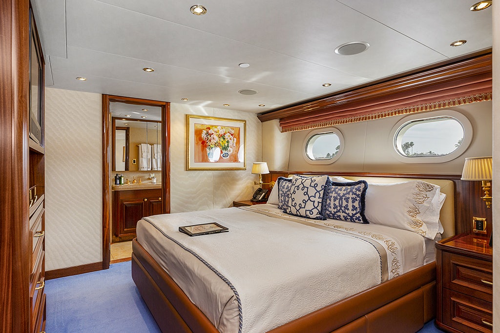 APHRODITE features Westport’s tried-and-true five-cabin configuration, which easily accommodates up to 10 guests in a resplendent on-deck master suite, two king VIP staterooms and two twin staterooms. All guest accommodations have en-suite bathrooms.