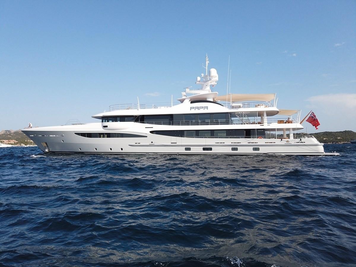 PAPA comes from the drawing board of Tim Heywood, who worked with Dutch yard Amels to create a striking, high-performance yacht. From bow to stern, this 180.5-foot (55m) superyacht is designed for ultimate cruising performance. Her exterior deck spaces include a vast sundeck. Her interior, meanwhile, is both modern and stylish with pops of bold color adding unique character.
