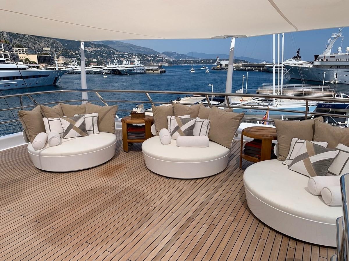Up to 10 guests are accommodated in five staterooms. The spacious main deck master stateroom has an office and private balcony, while on the lower deck are two VIP en-suite double cabins with walk-in wardrobes. Every need of guests is taken care of by a friendly, experienced crew of 13.