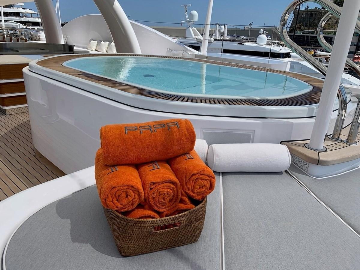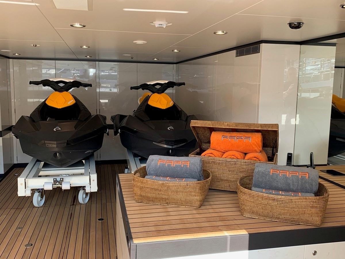 When you are cruising the waters of Phuket and Langkawi in Southeast Asia, life revolves around being on the water. PAPA ensures you always do this in style. Her sundeck has an open-air cinema along with welcoming, indulgent sun pads and a large Jacuzzi. But head down to the waterline for the ultimate fun. A Whitmarsh high-performance RIB, Jet Skis, paddleboards, wakeboards, towables and inflatables await. There are also two electric surfboards for active charterers to play around with. Later, stretch out on deck with refreshments from the bar and delicious meals and snacks to satisfy every taste and appetite.