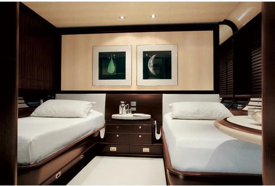 PARSIFAL III's elegant and striking interior was designed by the world-renowned Rémi Tessier, who combined dark ebony and light sycamore wood complemented by natural textiles and fine leather accents. She accommodates up to 12 guests in five ensuite cabins, including a vast full-beam master suite, two doubles, two twins, and additional Pullman berths. The main salon and dining area open onto the aft deck and can also be opened forward to the wheelhouse, offering an impressive 360-degree view from within for guests to admire the stunning cruising grounds.