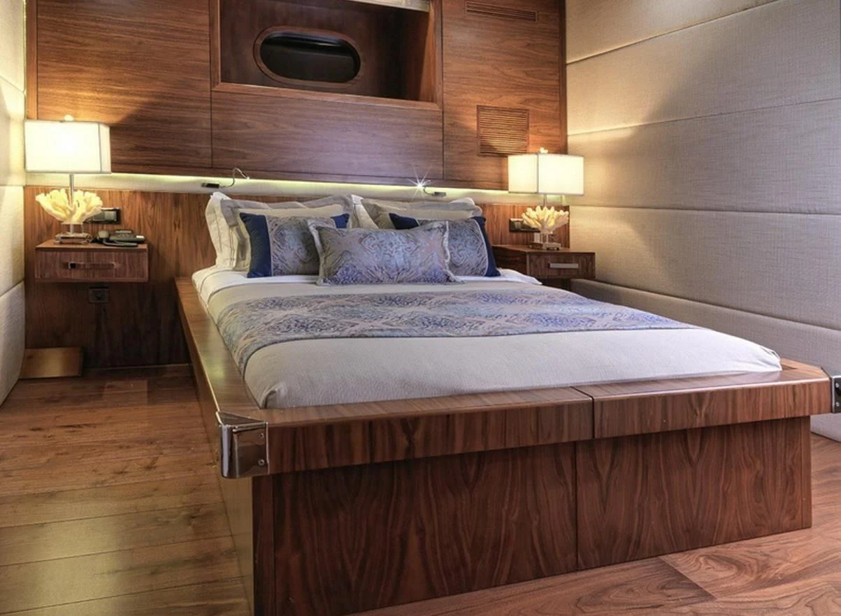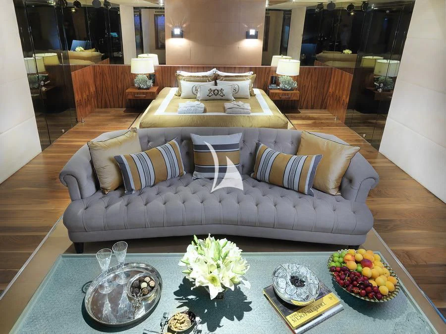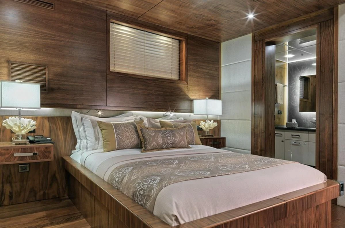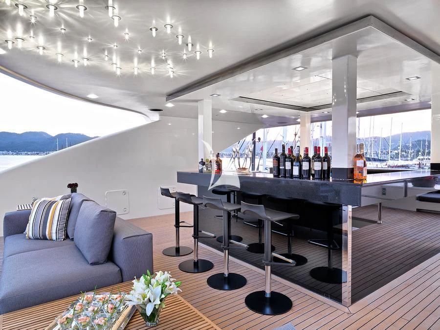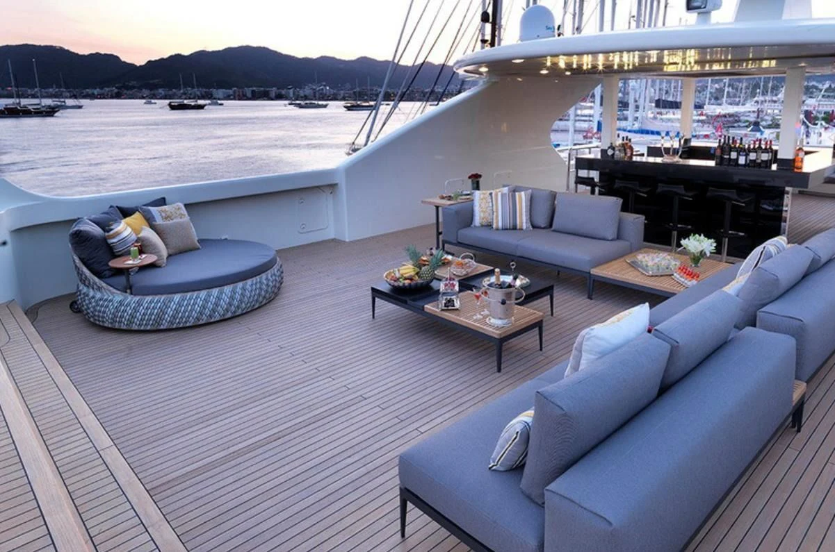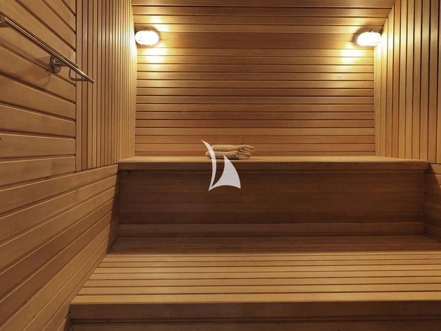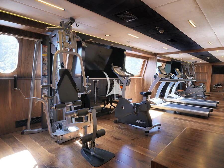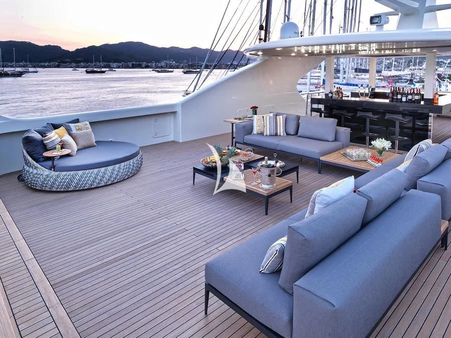 QUEEN MARE is well-appointed with excellent accommodations and deck areas. Along with her spacious staterooms, she has a high-tech gym, a sauna, a deck Jacuzzi, and a full-size deck bar. Guests can enjoy a freshly made cocktail while relaxing and taking in the incredible views. Performance is a priority on QUEEN MARE and she cruises comfortably at 12 knots, and hits a top speed of 19 knots. Her range is 5,000 nautical miles.