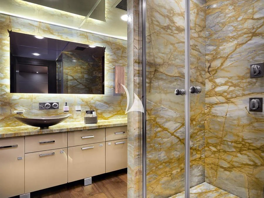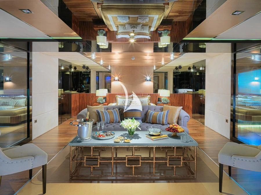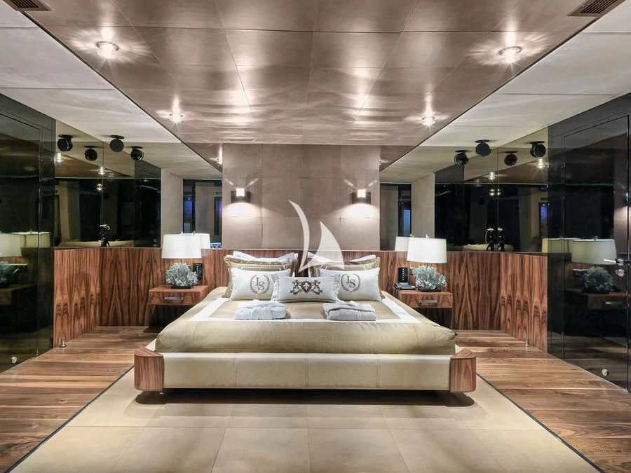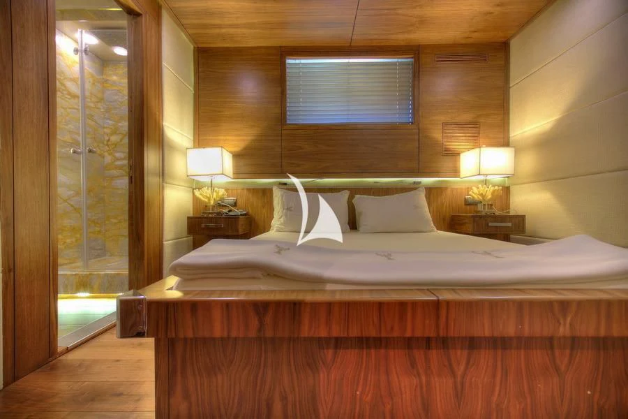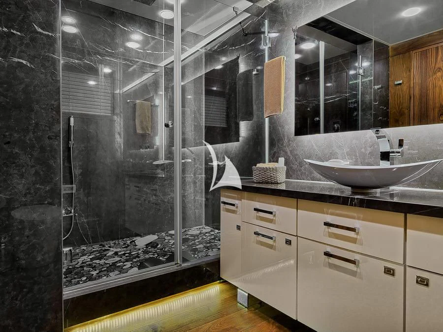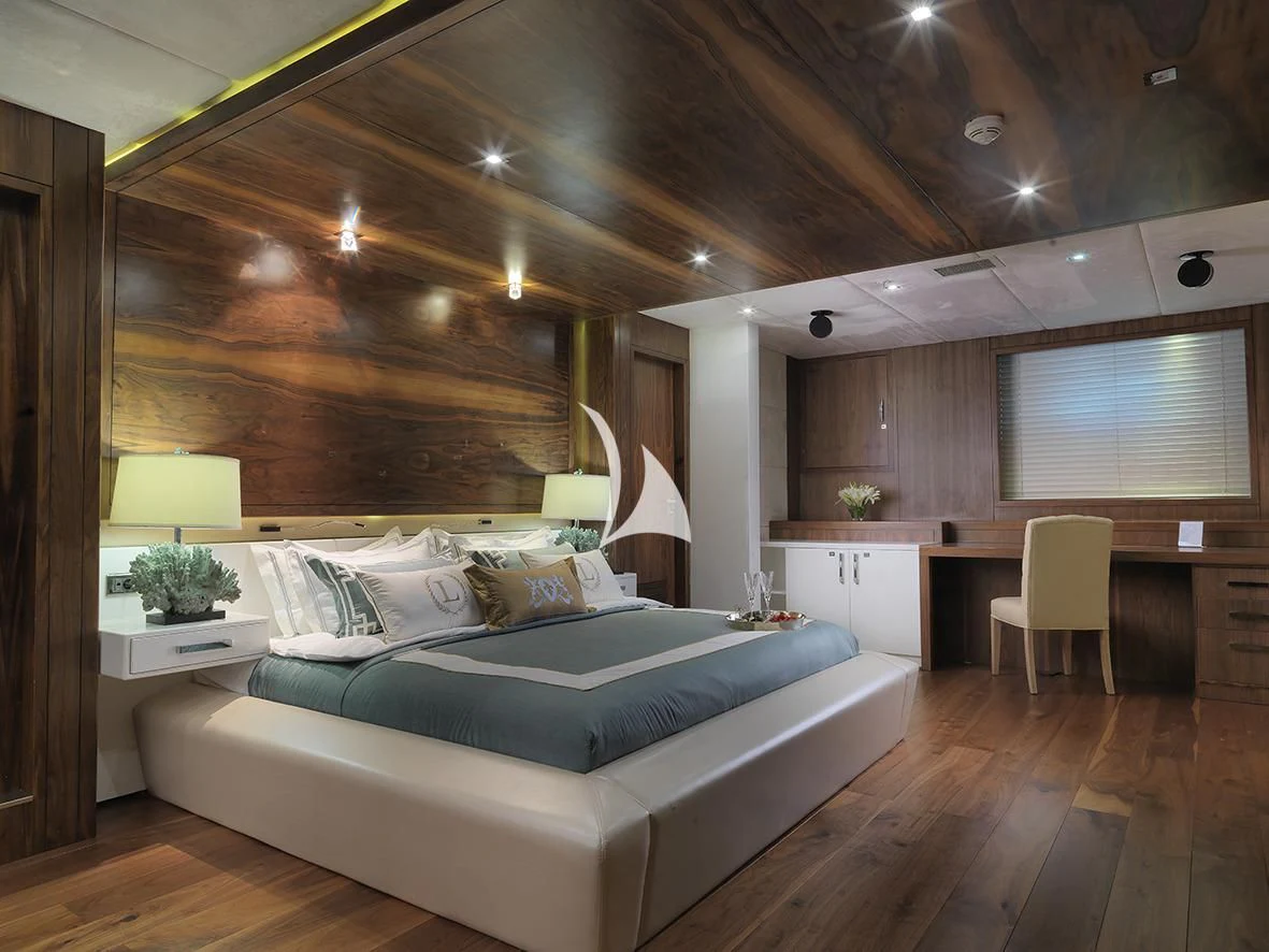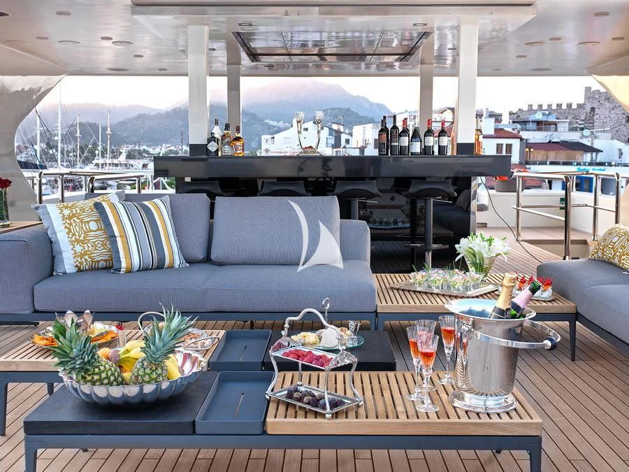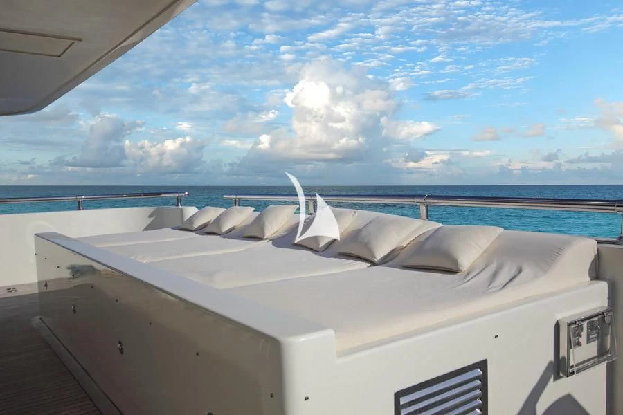 QUEEN MARE is well-appointed with excellent accommodations and deck areas. Along with her spacious staterooms, she has a high-tech gym, a sauna, a deck Jacuzzi, and a full-size deck bar. Guests can enjoy a freshly made cocktail while relaxing and taking in the incredible views. Performance is a priority on QUEEN MARE and she cruises comfortably at 12 knots, and hits a top speed of 19 knots. Her range is 5,000 nautical miles.