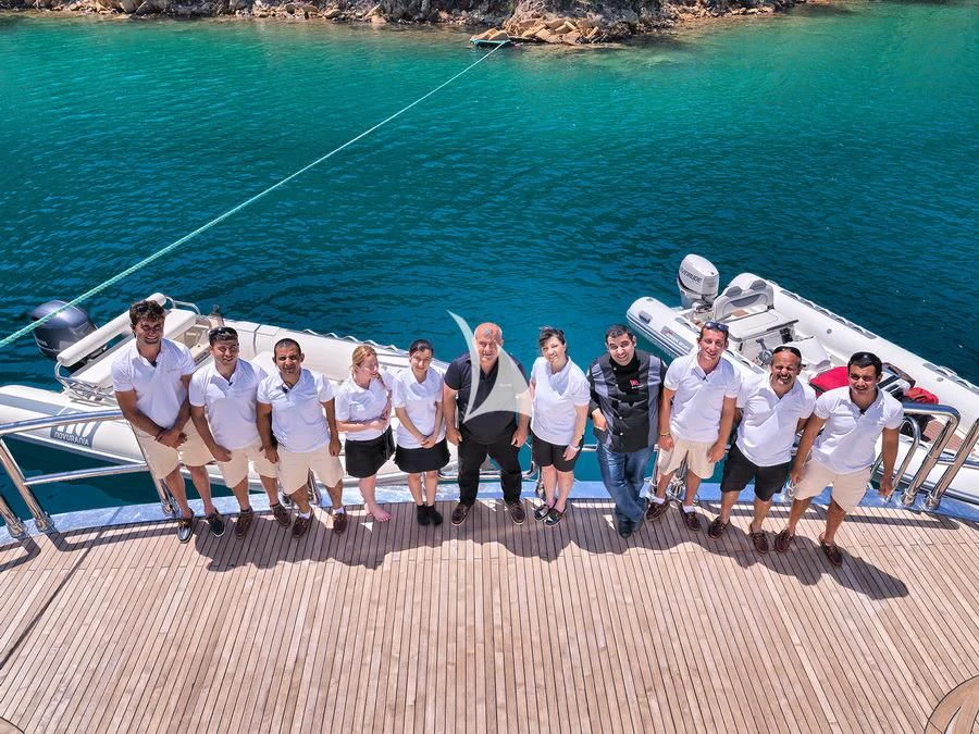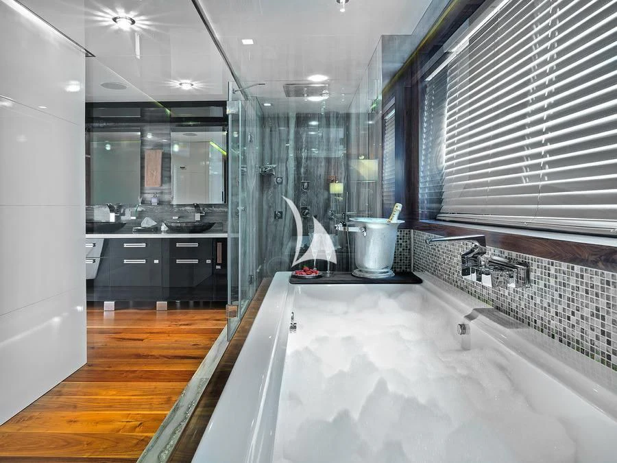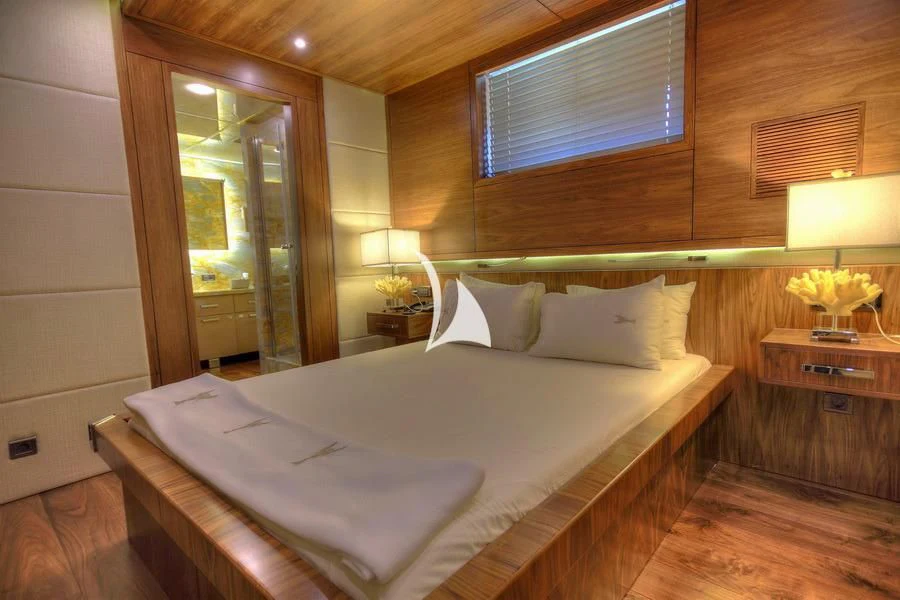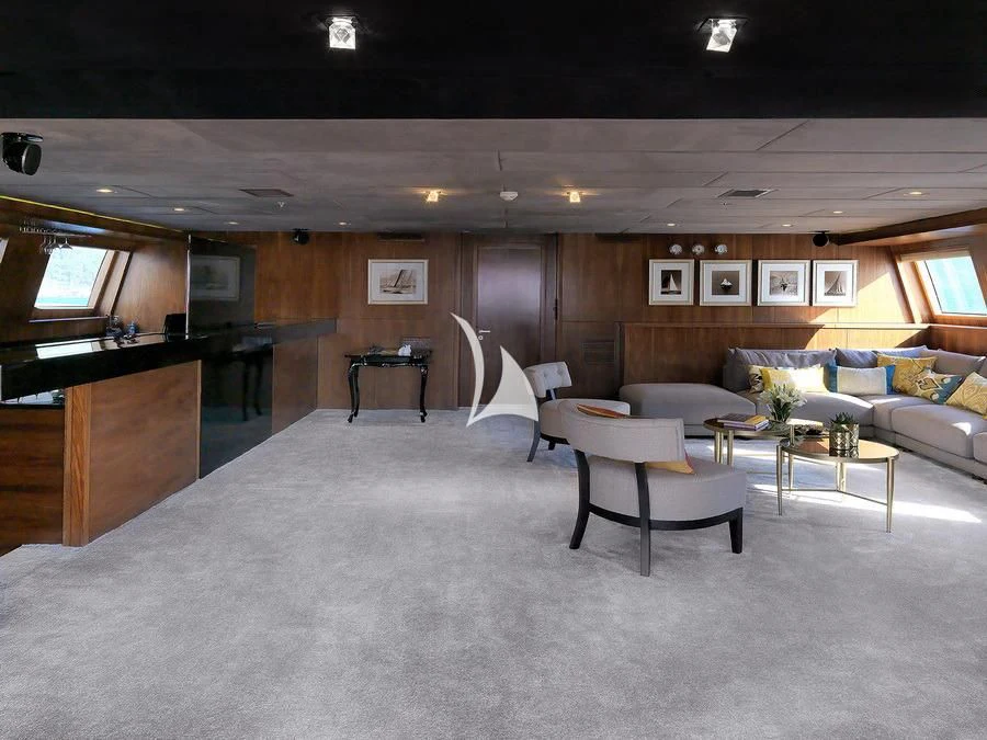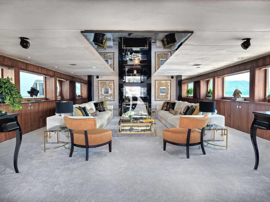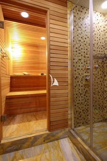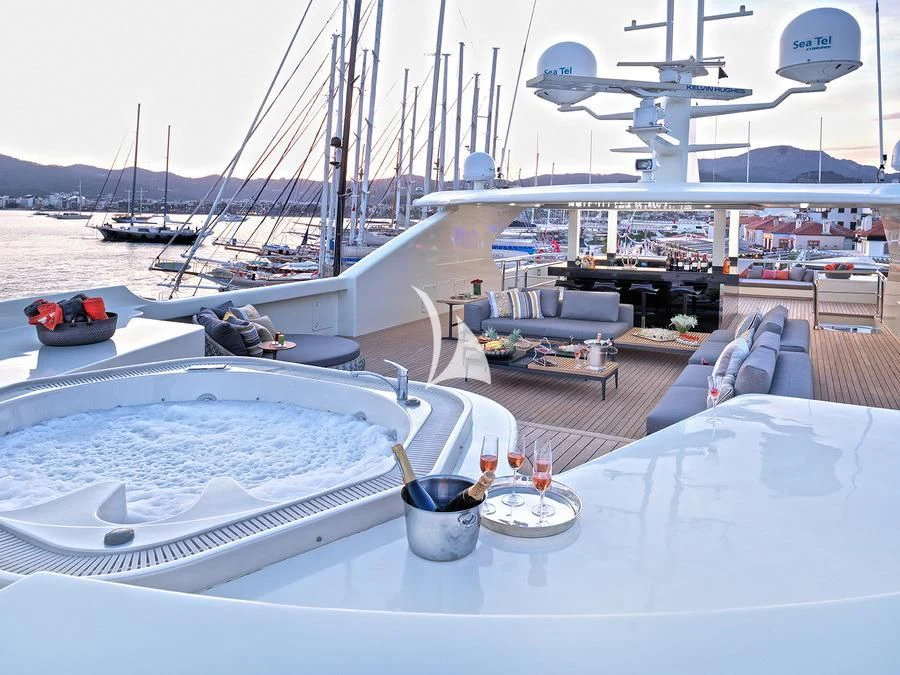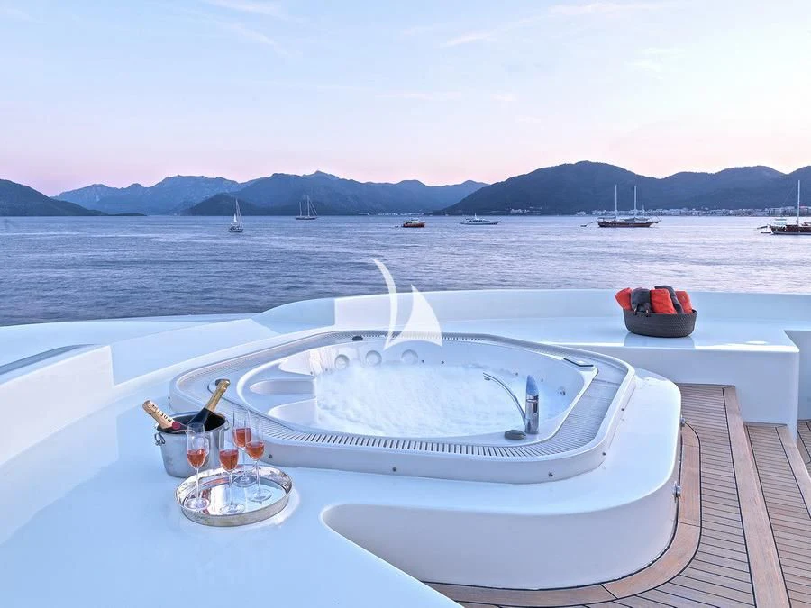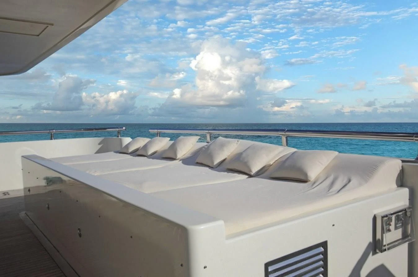 QUEEN MARE is well-appointed with excellent accommodations and deck areas. Along with her spacious staterooms, she has a high-tech gym, a sauna, a deck Jacuzzi, and a full-size deck bar. Guests can enjoy a freshly made cocktail while relaxing and taking in the incredible views. Performance is a priority on QUEEN MARE and she cruises comfortably at 12 knots, and hits a top speed of 19 knots. Her range is 5,000 nautical miles.