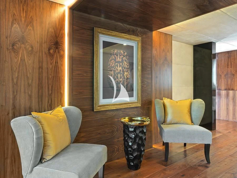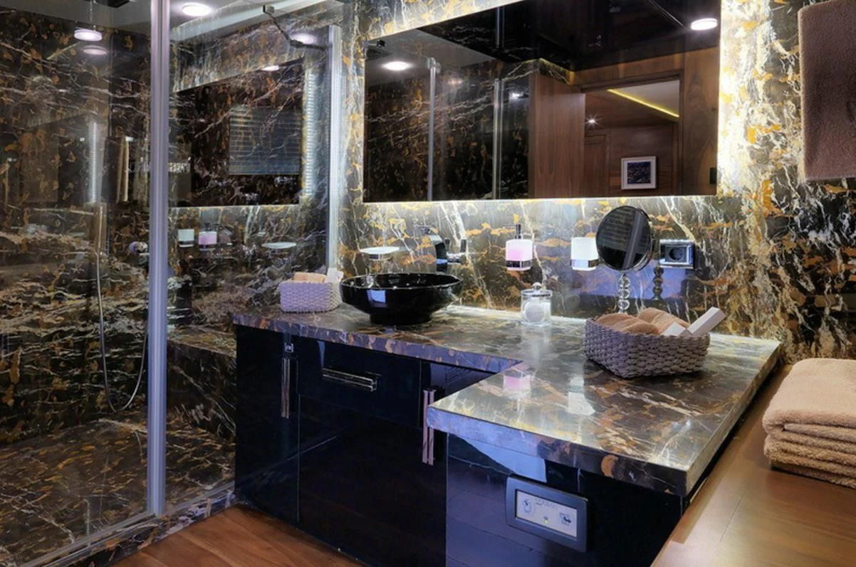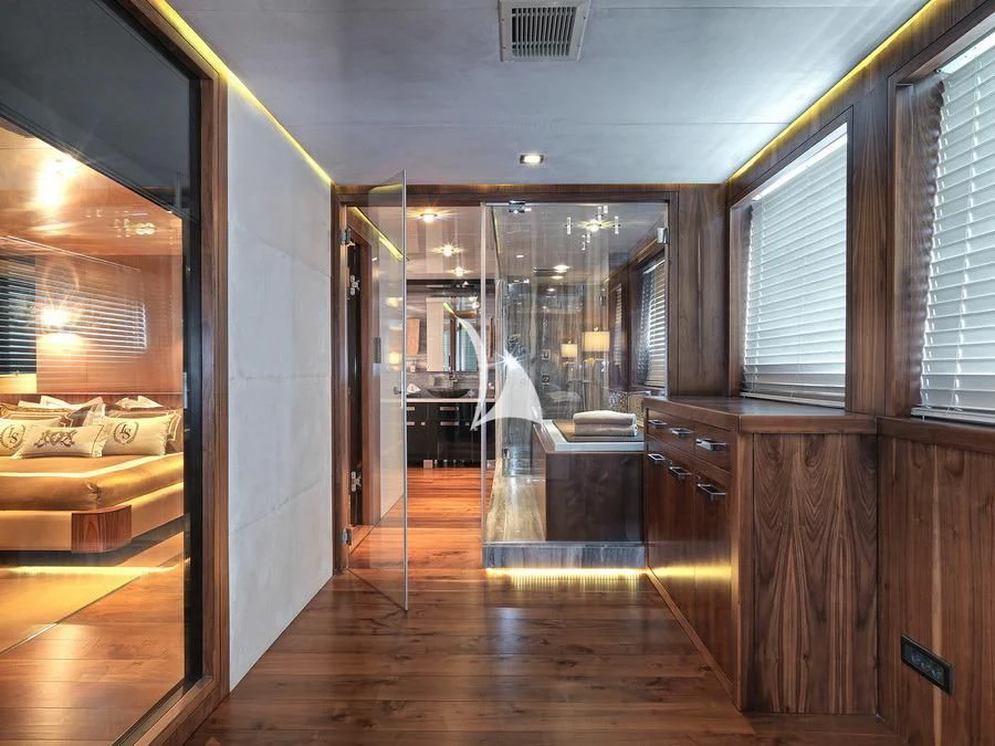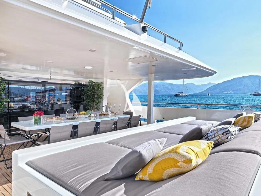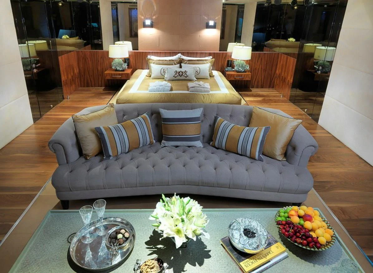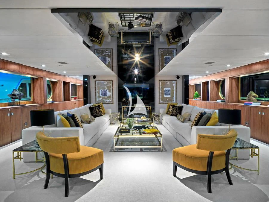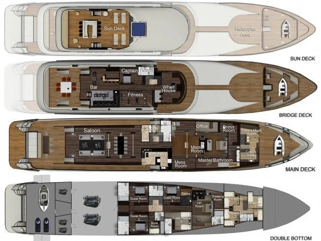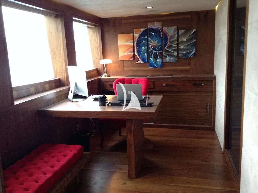QUEEN MARE is well-appointed with excellent accommodations and deck areas. Along with her spacious staterooms, she has a high-tech gym, a sauna, a deck Jacuzzi, and a full-size deck bar. Guests can enjoy a freshly made cocktail while relaxing and taking in the incredible views. Performance is a priority on QUEEN MARE and she cruises comfortably at 12 knots, and hits a top speed of 19 knots. Her range is 5,000 nautical miles.