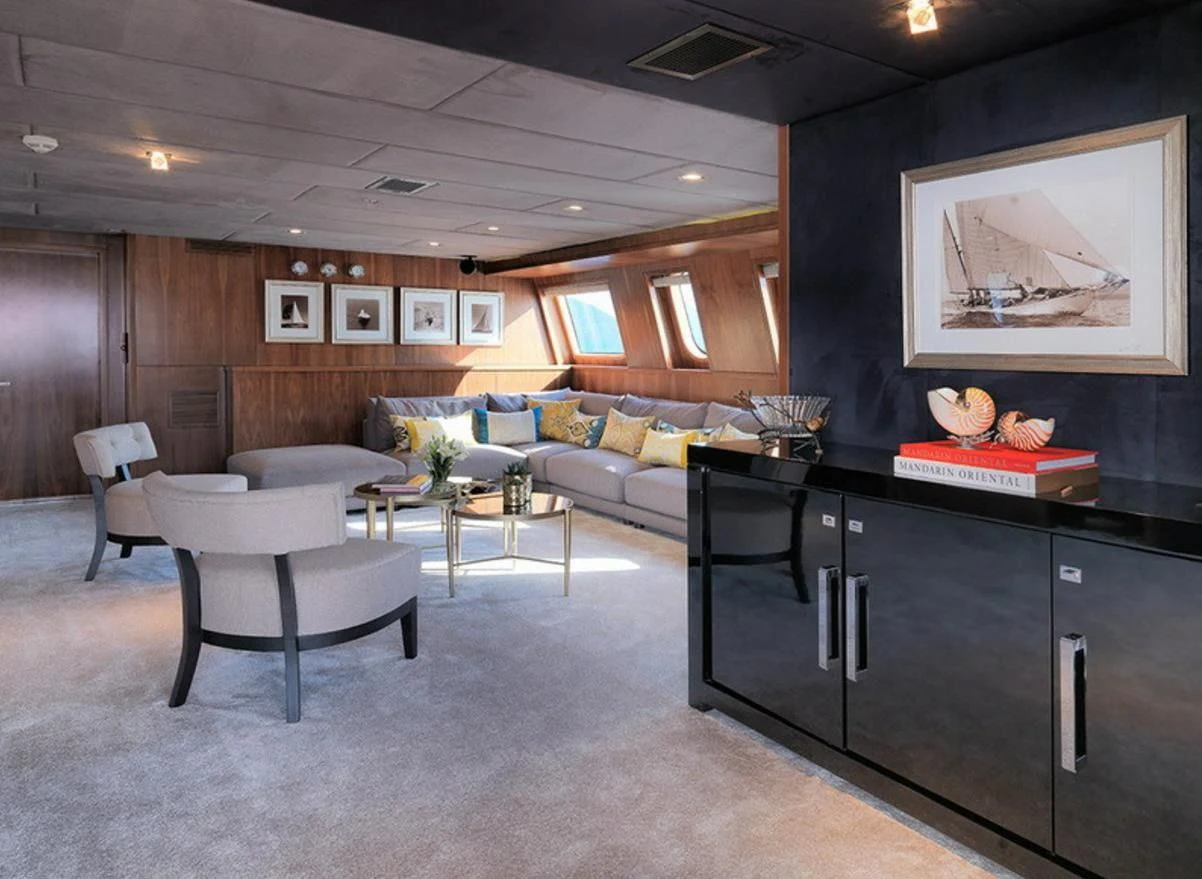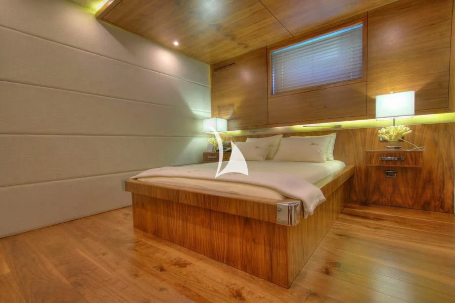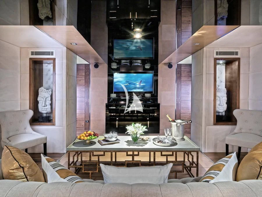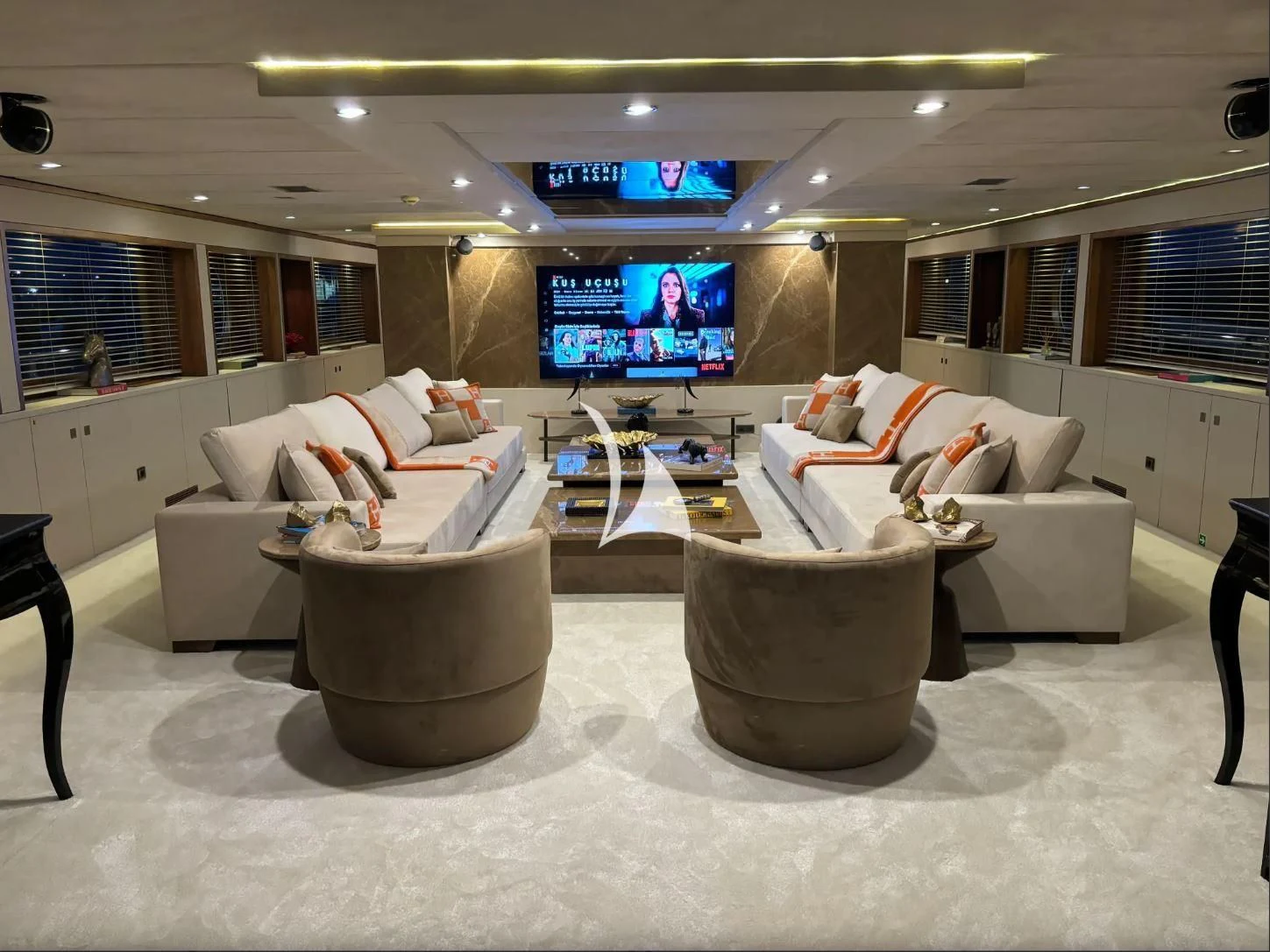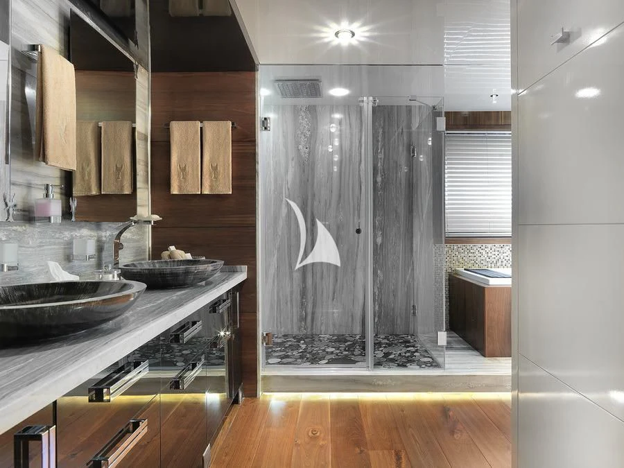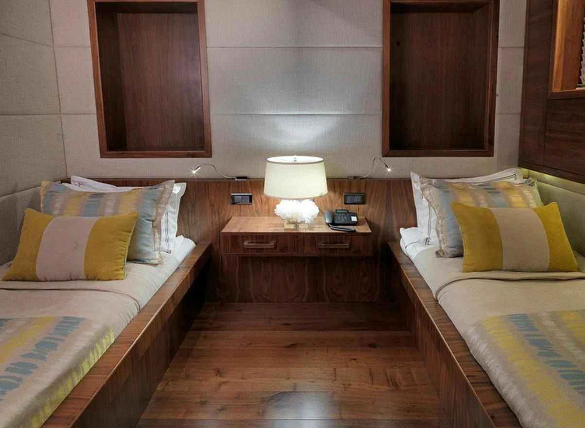 QUEEN MARE is well-appointed with excellent accommodations and deck areas. Along with her spacious staterooms, she has a high-tech gym, a sauna, a deck Jacuzzi, and a full-size deck bar. Guests can enjoy a freshly made cocktail while relaxing and taking in the incredible views. Performance is a priority on QUEEN MARE and she cruises comfortably at 12 knots, and hits a top speed of 19 knots. Her range is 5,000 nautical miles.