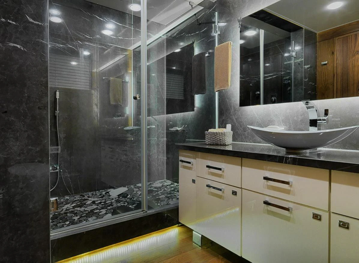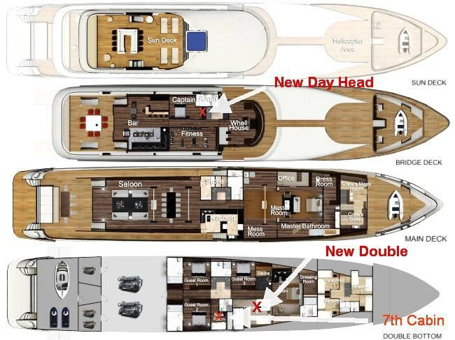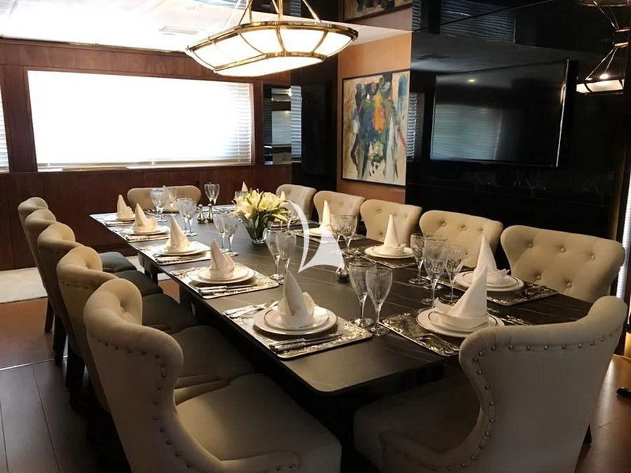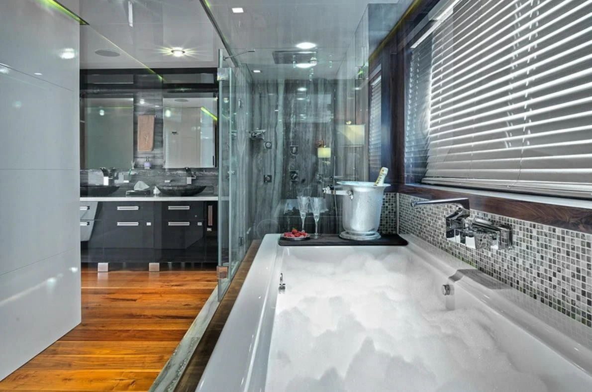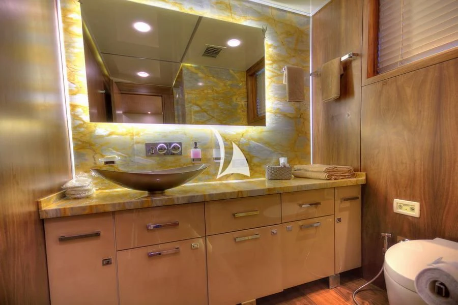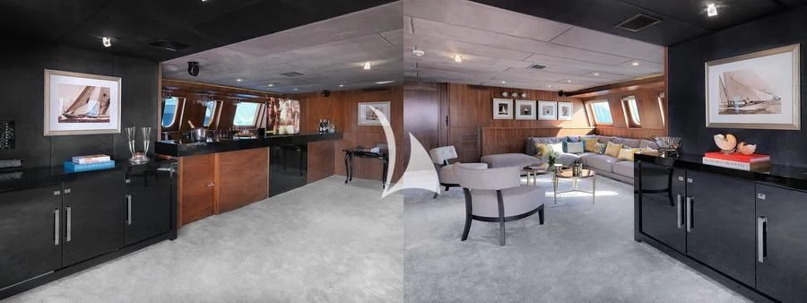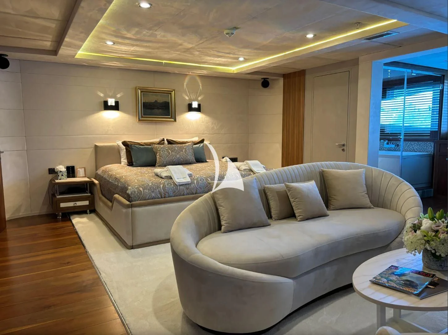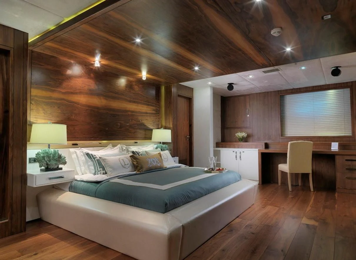 QUEEN MARE is well-appointed with excellent accommodations and deck areas. Along with her spacious staterooms, she has a high-tech gym, a sauna, a deck Jacuzzi, and a full-size deck bar. Guests can enjoy a freshly made cocktail while relaxing and taking in the incredible views. Performance is a priority on QUEEN MARE and she cruises comfortably at 12 knots, and hits a top speed of 19 knots. Her range is 5,000 nautical miles.