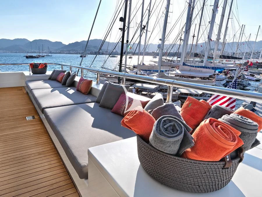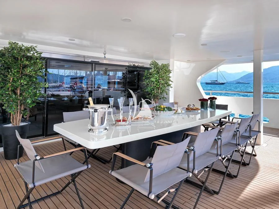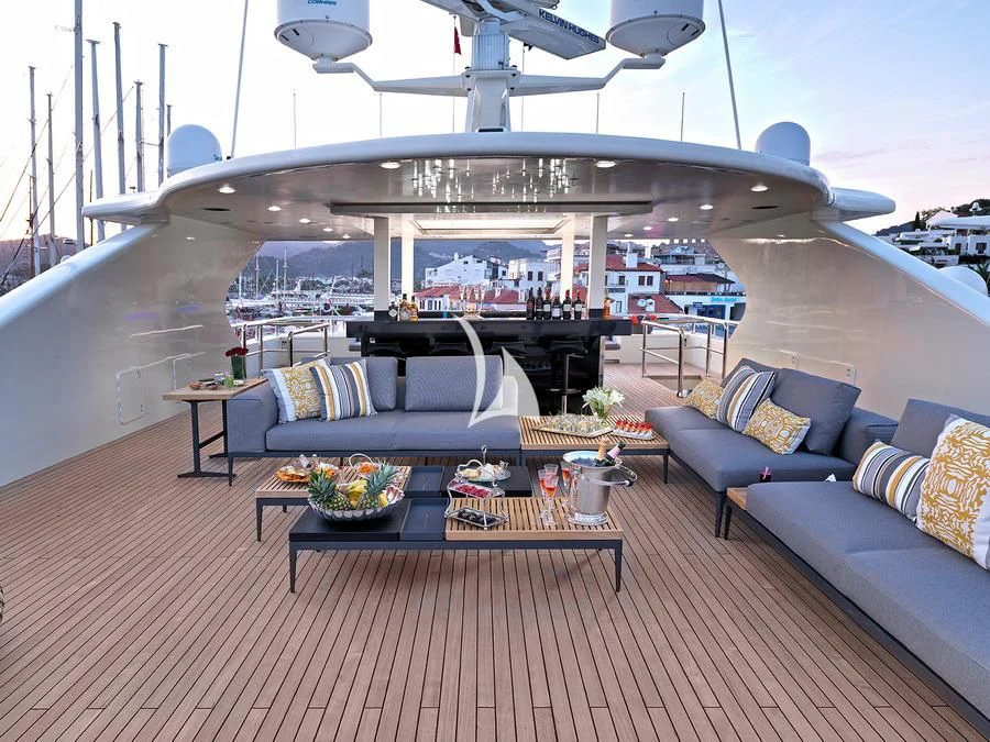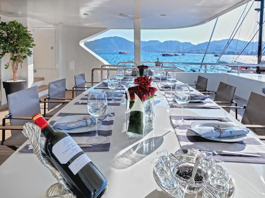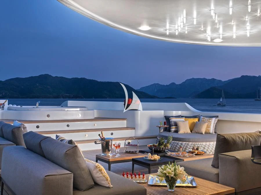 Sleek and stylish, the 190'3" (58m) QUEEN MARE is an Alpha Marine build launched in 2013. Her exterior lines were the inspiration of Tasel Form, while her interior design hails from Halit Yukay. The yacht benefited from a refit in 2021. She can accommodate up to 12 guests in six elegant staterooms. These comprise a master, a VIP, three double staterooms, and a twin cabin. The yacht is cared for by an expert crew of 12. This friendly team keeps the yacht in top condition and delivers exceptional charters.