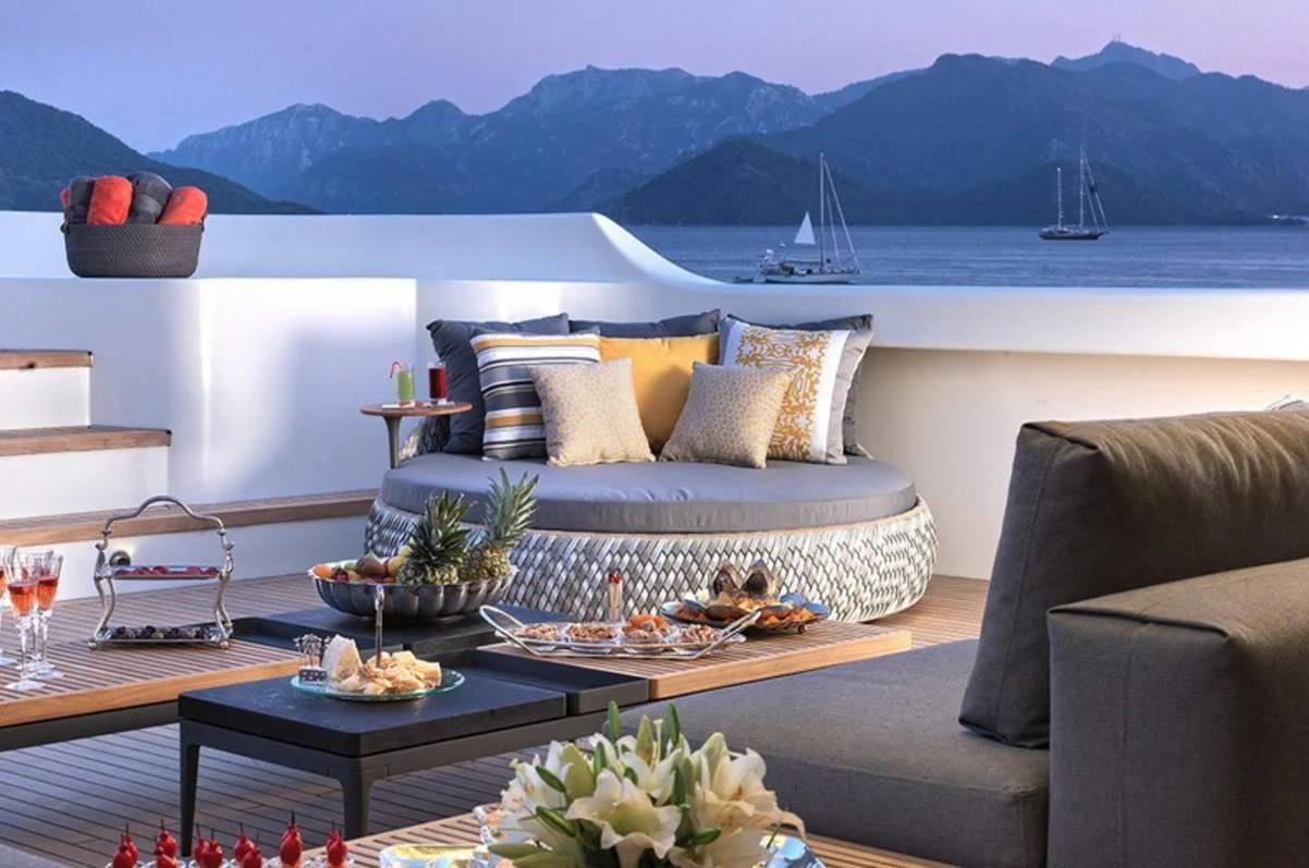 A truly incredible array of water toys ensures guests are kept active on the ocean. They can choose from the SeaBobs, flyboard, Sea-Doo Jet-Skis, paddleboards, canoe, wakeboard, and water skis. There is also an inflatable trampoline, hot dog, banana, and ringo. As a certified PADI Dive Centre, QUEEN MARE is also an excellent choice for enthusiastic divers. Guests can also enjoy a day’s fishing or head out in the tender to go snorkeling, exploring beneath the waterline in each compelling destination. Trips ashore in the Mediterranean can be organized by the crew. They will make all the necessary reservations at restaurants, spas, beach clubs, exclusive boutiques, and historical and cultural attractions.