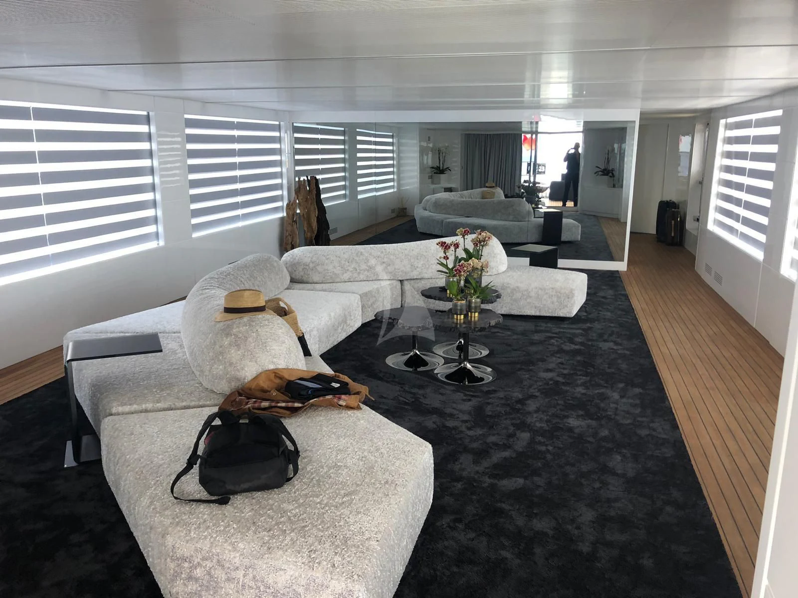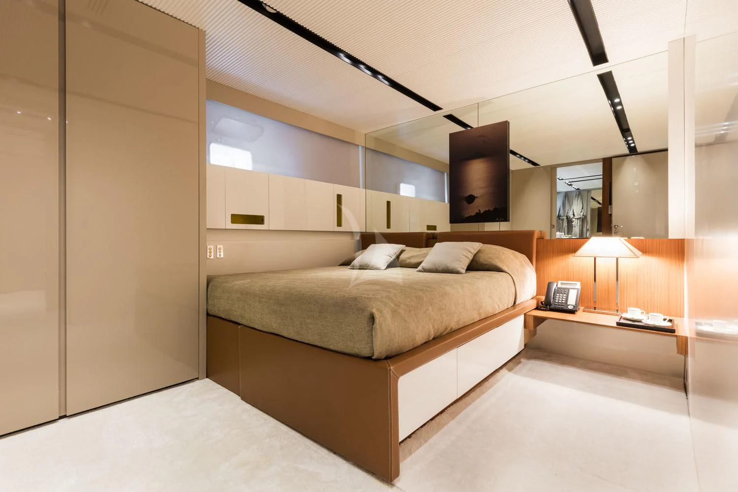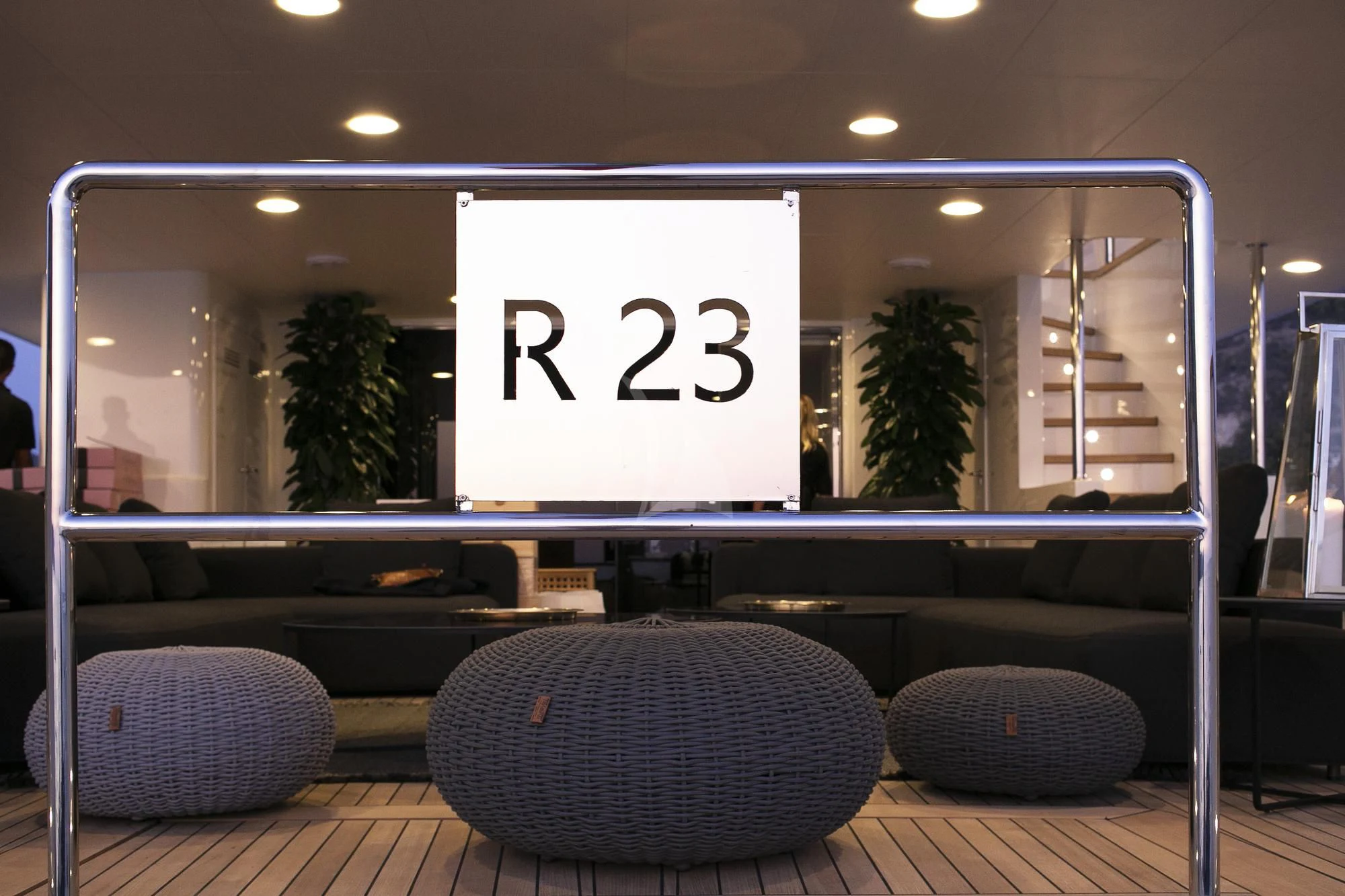 R23 features a contemporary and opulent décor with new soft furnishings. Her refitted interior was designed by Kathy Monaco and features a master stateroom on her main deck, with a VIP cabin and four twin cabins on her lower deck. All of her accommodations feature an en-suite bathroom and the latest audio-visual equipment.