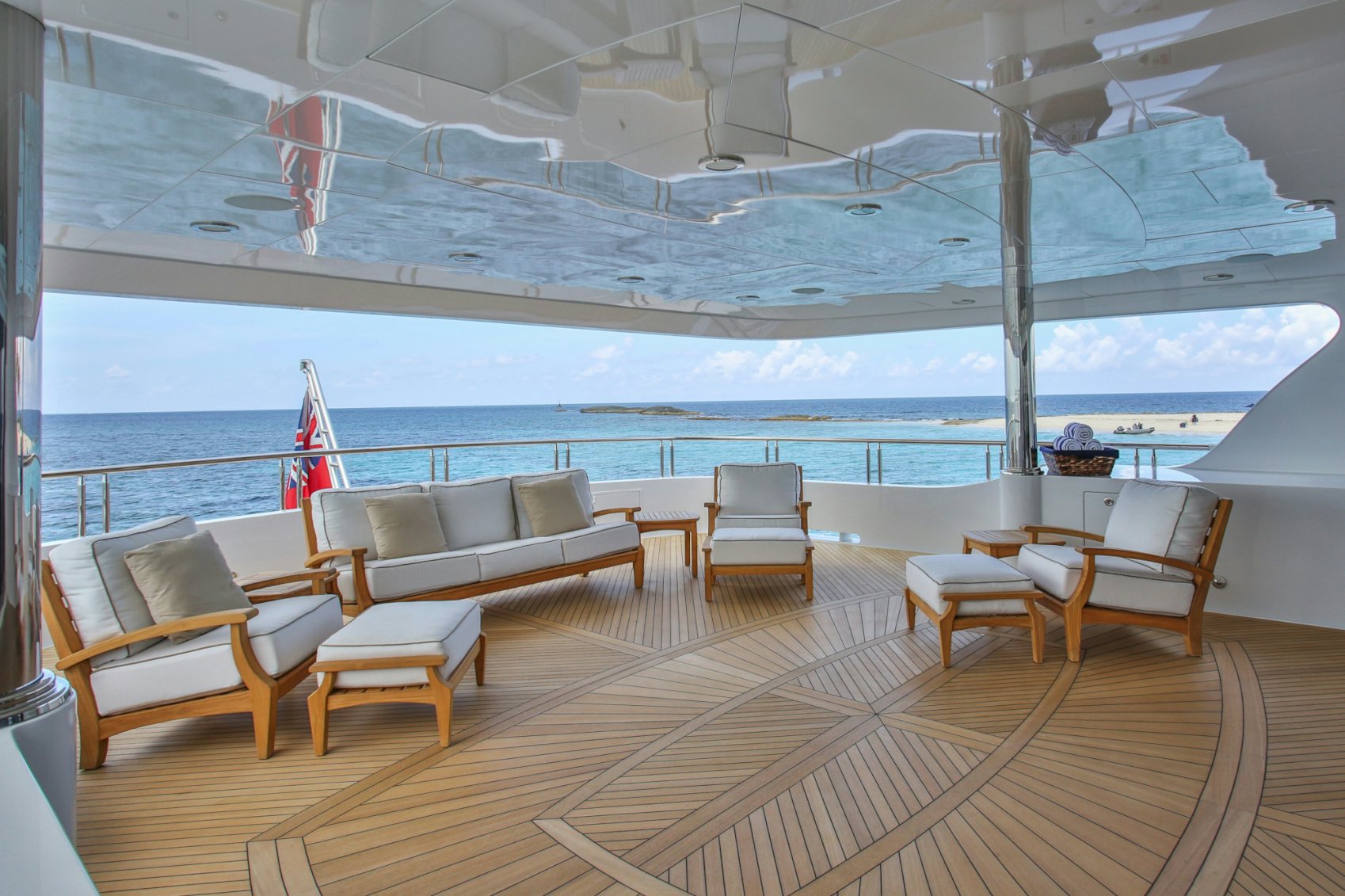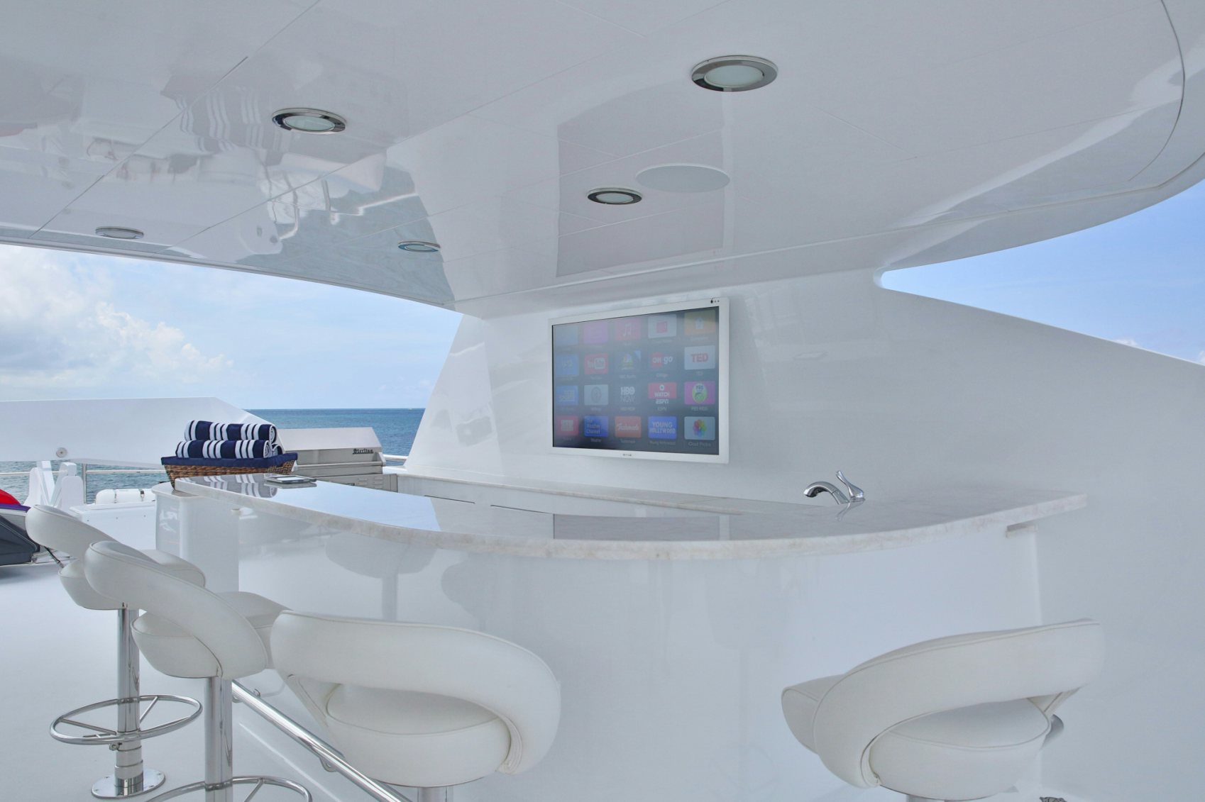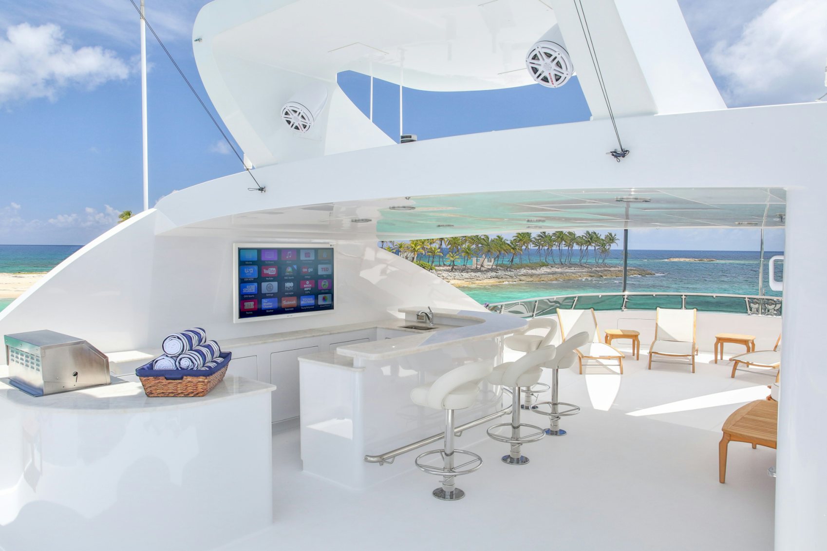 Boasting exceptional outdoor living areas, REBEL’s amenities are expansive for charter guest enjoyment. Take in views as you cruise on the yacht’s massive sunpads whilst sipping a delectable cocktail on the foredeck, socialize on the sundeck and relish time on the water with the yacht’s immense array of tenders and toys. After working up an appetite, enjoy a delectable meal as you dine alfresco.