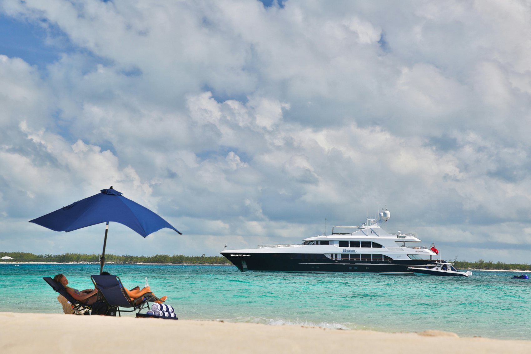 REBEL is equipped with an ultra-modern stabilization system, providing a smooth enjoyable cruising experience and a crew of nine to attend to your every desire.
