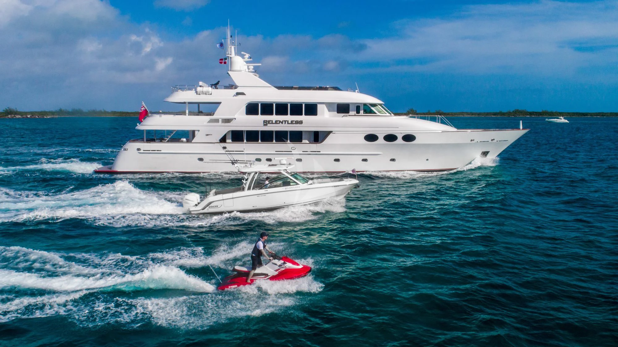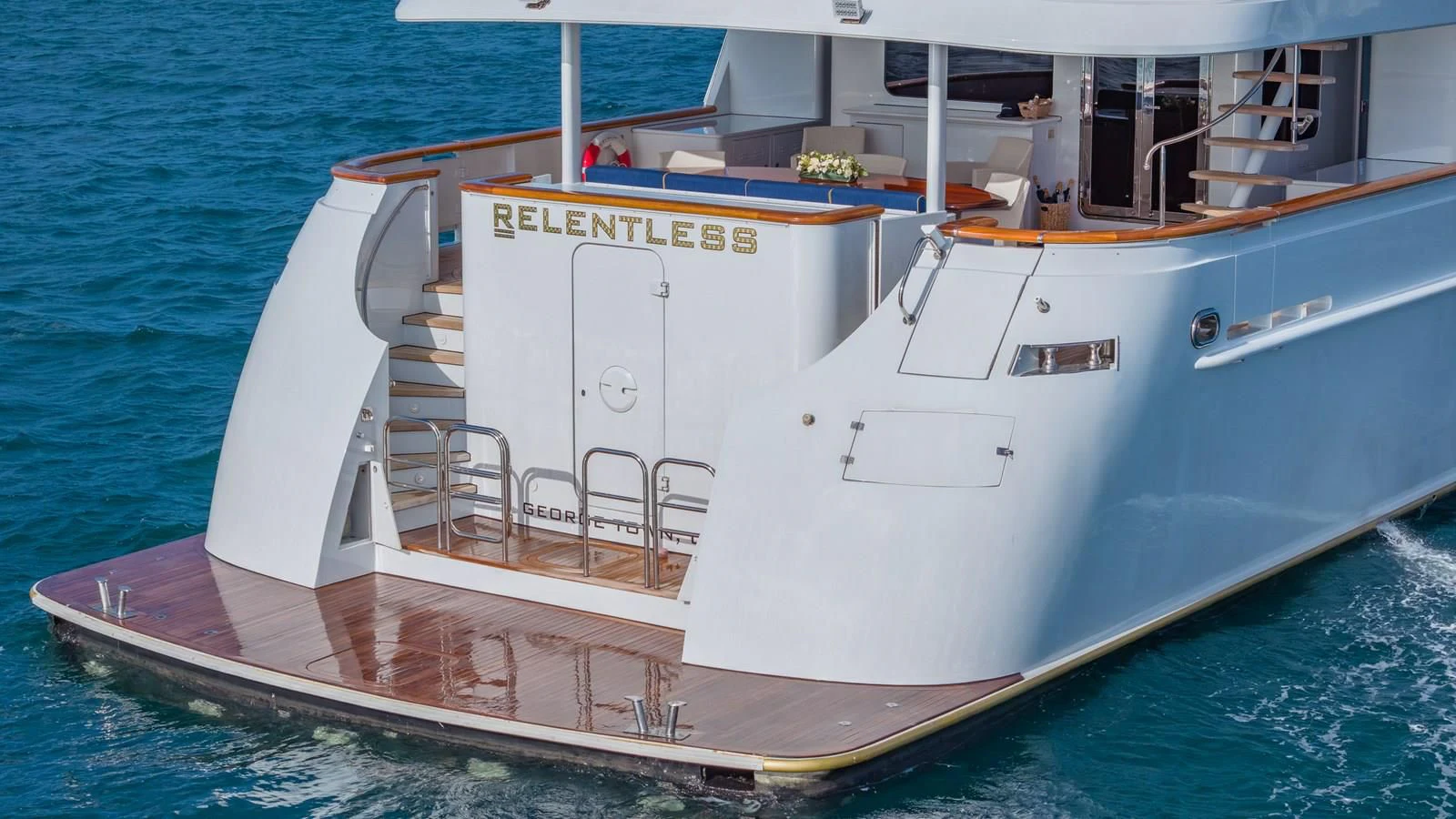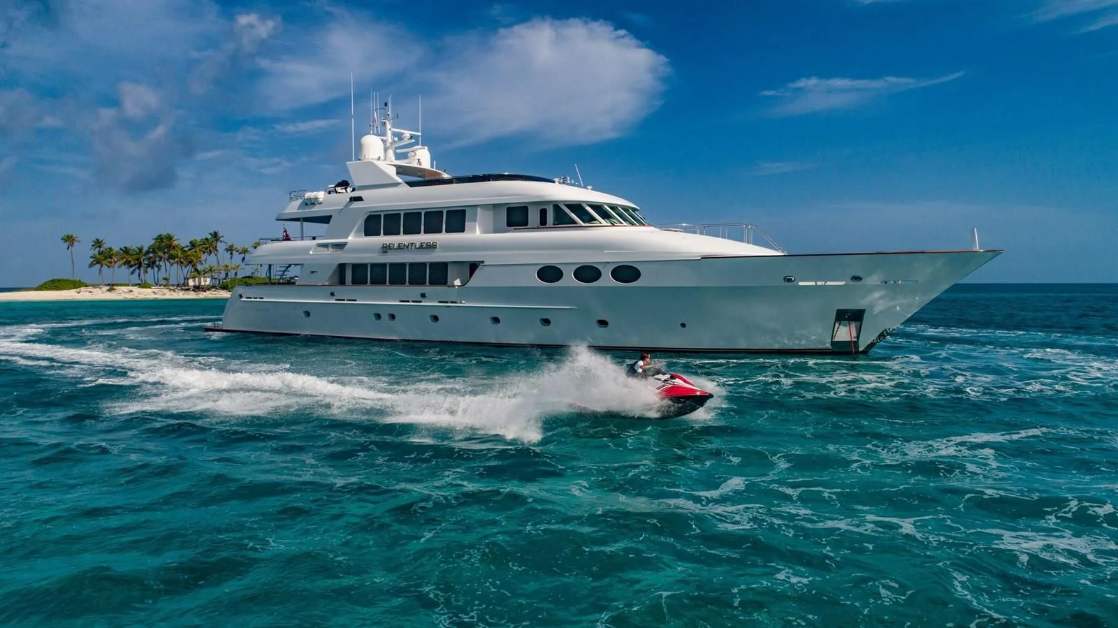 Packed with toys such as WaveRunners, wakeboards and a plethora of inflatables and a Bost Whaler tender tow them, RELENTLESS provides endless opportunities for fun and exploration. Her crew of nine is on hand to ensure guests get the most from their luxury charter vacation. Offering the perfect balance between traditional style and contemporary amenities, RELENTLESS is the ideal choice for families or groups of friends looking for a luxurious Caribbean charter vacation.