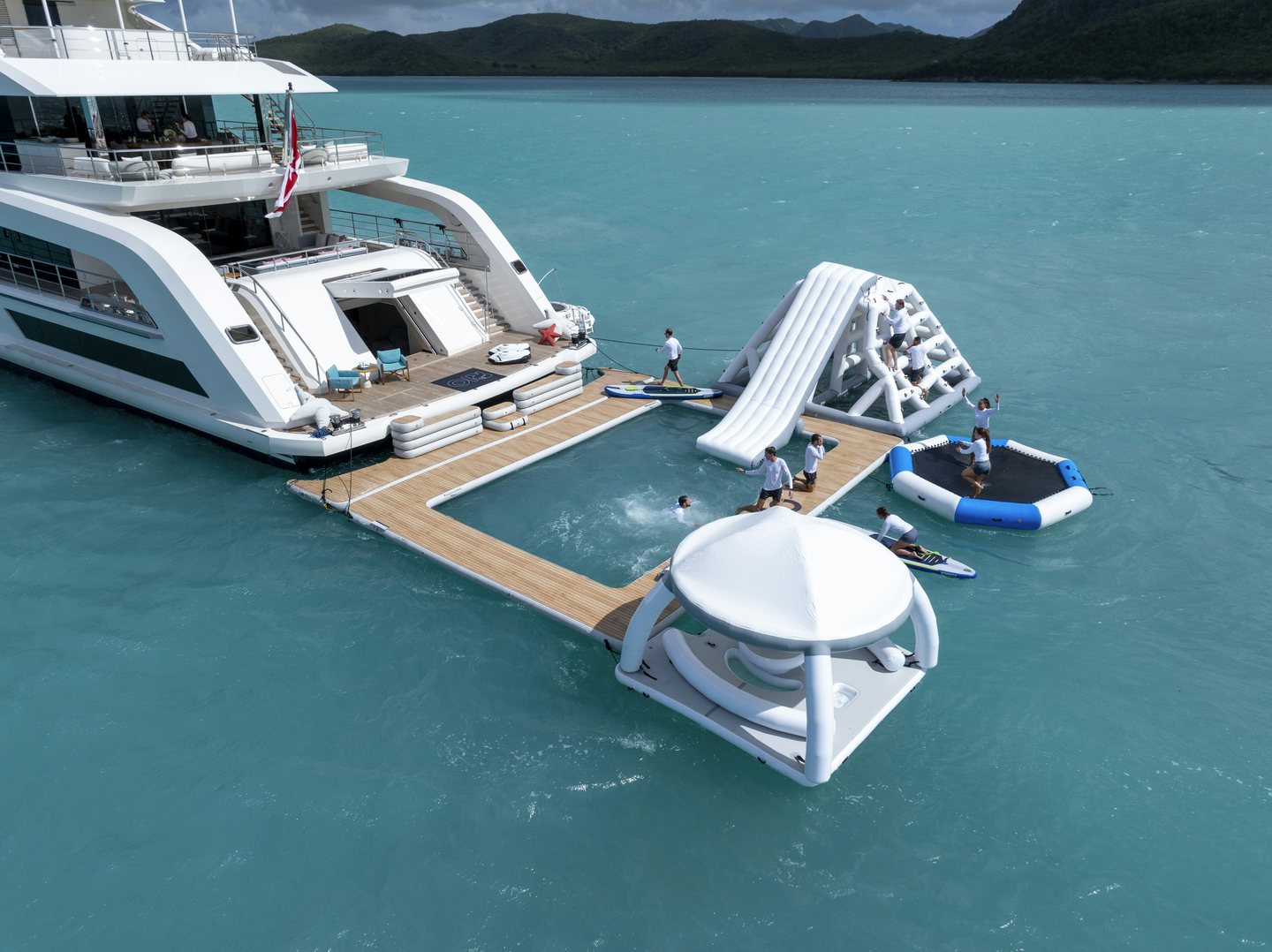 The yacht's foredeck is a standout feature. Spanning almost a third of the yacht's LOA, it features a recessed small jacuzzi with sunloungers and comfortable lounge furniture. It is accessed via the primary cabin as well as from the side of the yacht.
