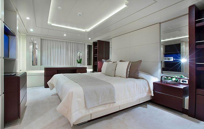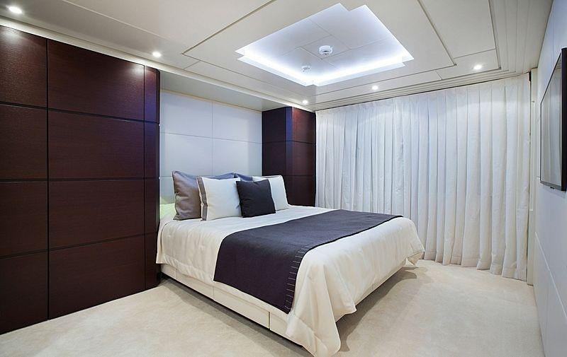 ROLA has a fresh interior appearance the evokes relaxation. The luxury yacht can accommodate 11 guests in five spacious and beautifully styled staterooms. Her full-beam master suite is a haven and her additional staterooms that include a VIP stateroom, a double stateroom, one twin and on convertible stateroom.