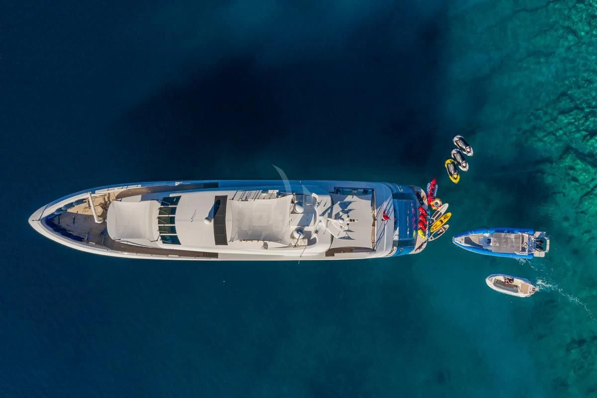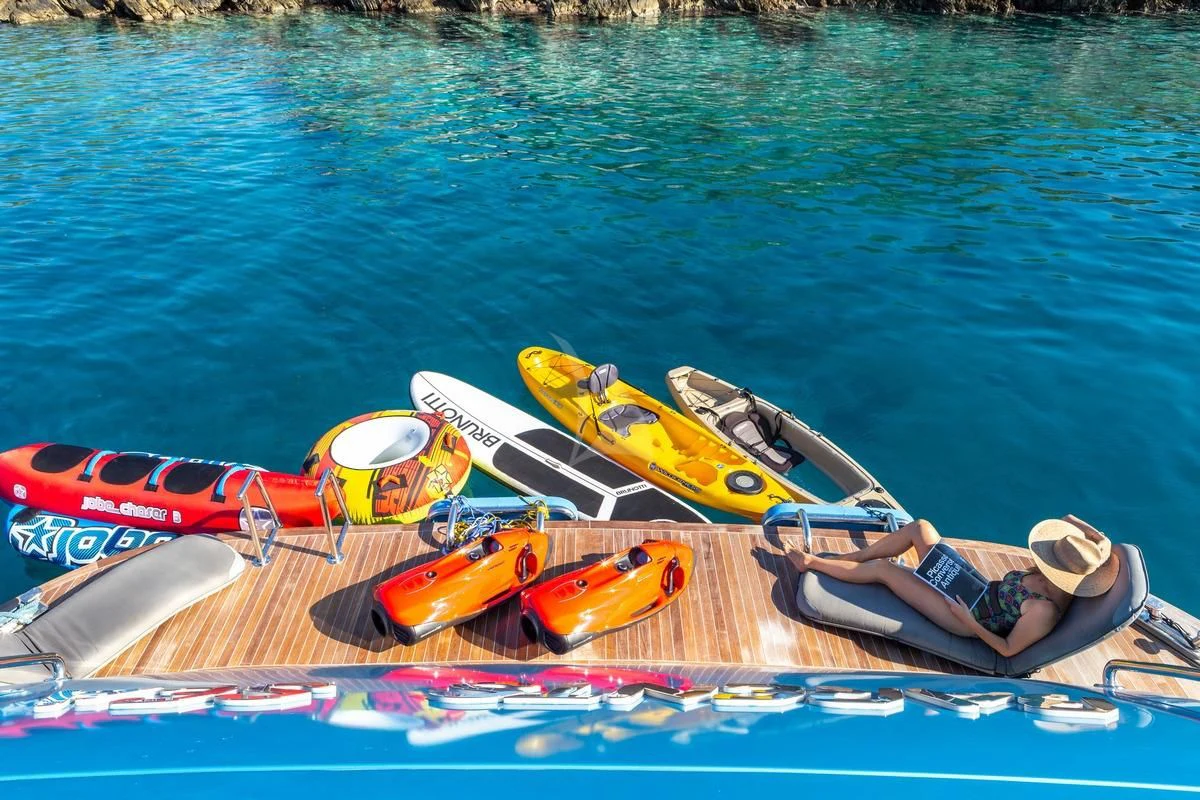 While it might be difficult to break away from all of the onboard attractions, SEA WOLF’s impressive toy box unlocks countless opportunities for exploring. Hop aboard her 17’9” and 11’10” Novurania tenders and head to shore for sightseeing, or zip across the crystal waters on one of her two Sea-Doo Spark Jet Skis. There are wakeboards, water skis, kneeboards, towable toys as well as paddleboards, snorkeling kit, fishing tackle and two Seabobs. Orchestrating all of the action is SEA WOLF’s incredible crew of eight who provide exceptional service and personalized touches that ensure an unparalleled charter vacation experience.