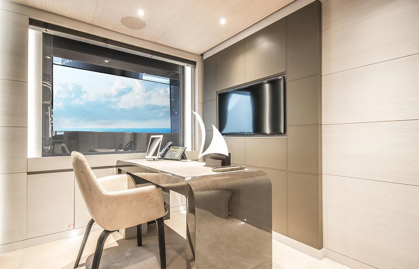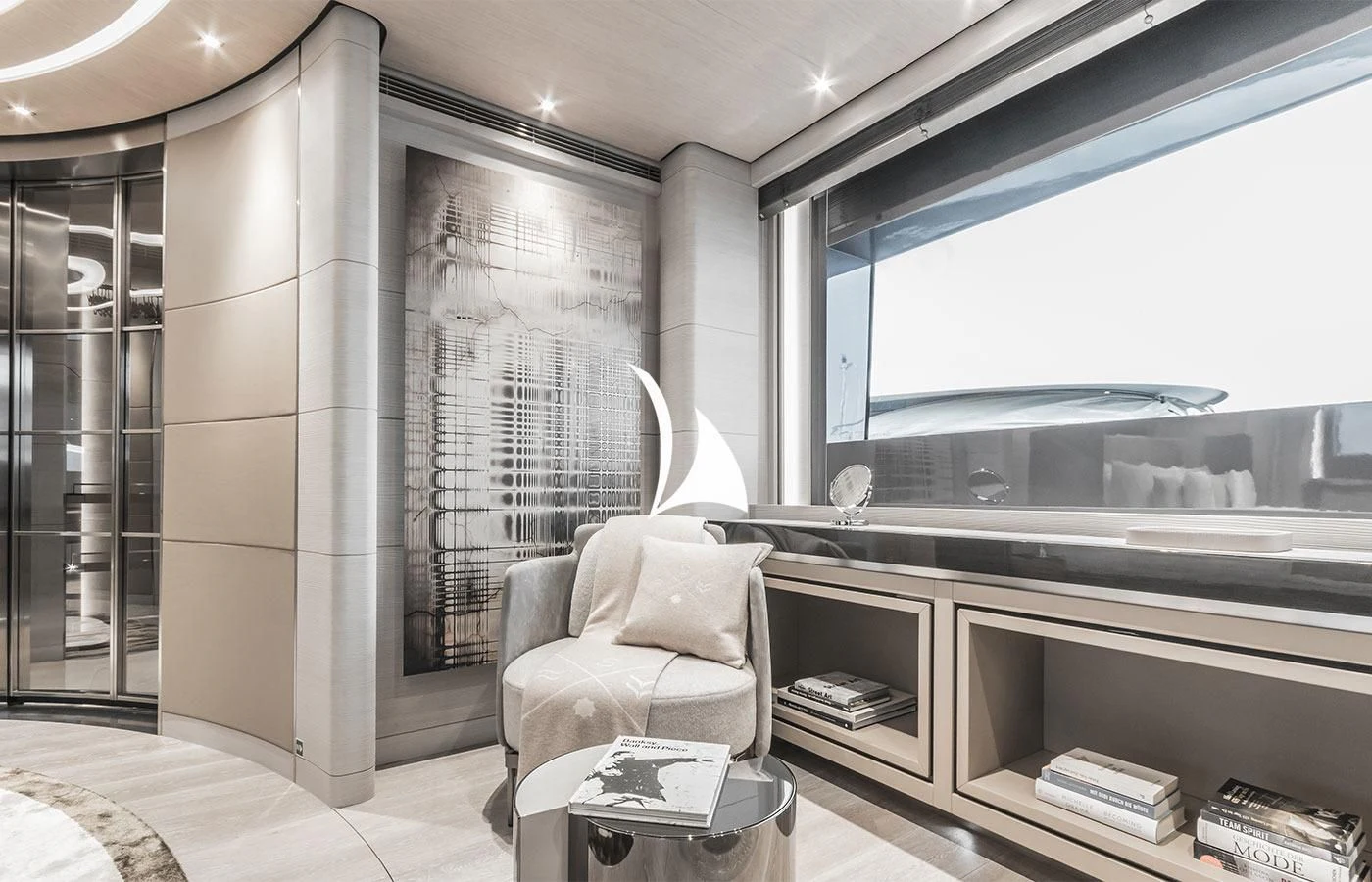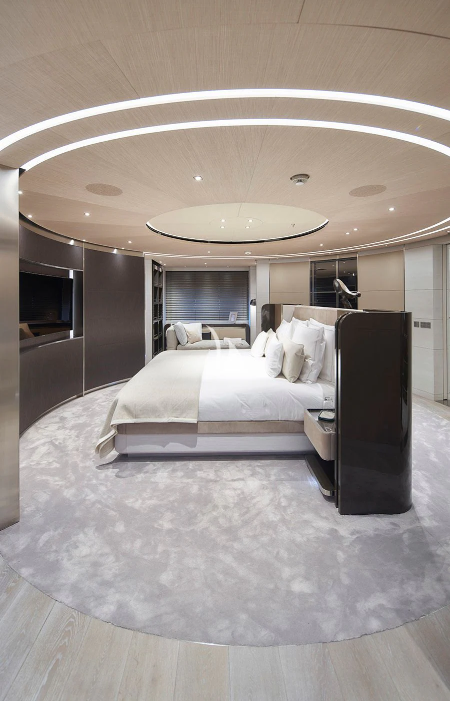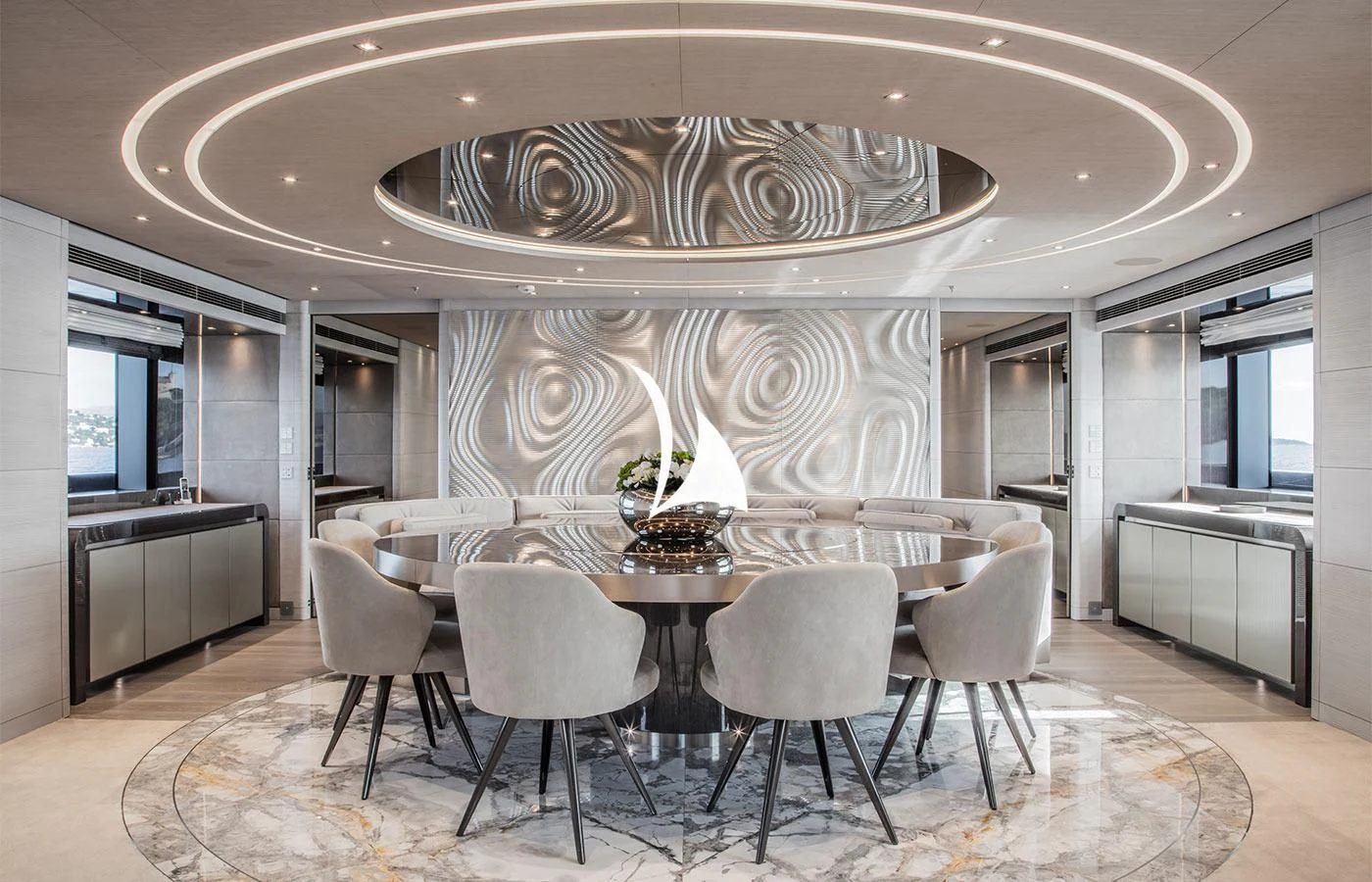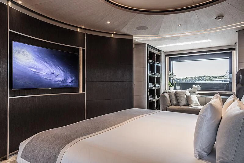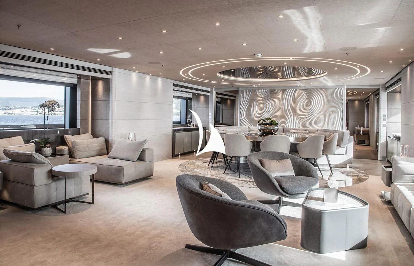 SEVERIN*S accommodates up to 12 guests across six staterooms, including her master suite on the main deck, two VIP staterooms, two double cabins and one convertible cabin. The two VIP staterooms are located on the lower deck. The accommodation layout is extremely versatile as the convertible cabin can also be used as a massage room or even a playroom if required. Her style throughout is sophisticated with the use of monochrome colors, with features of brass and marble.