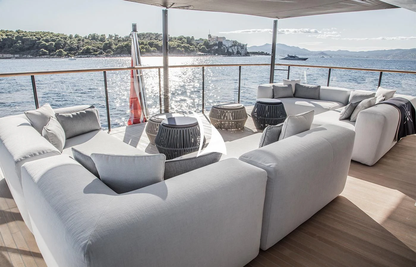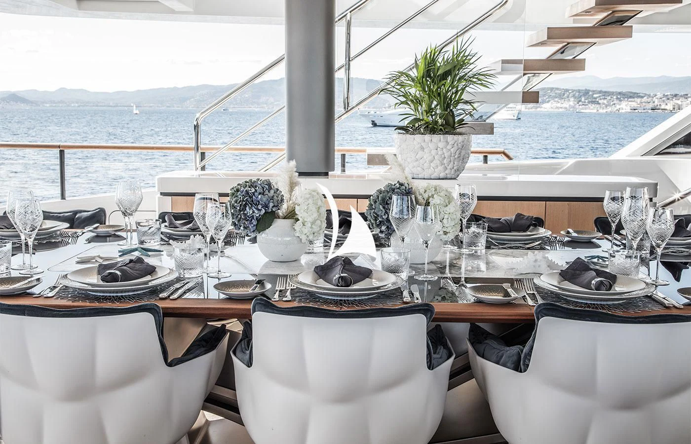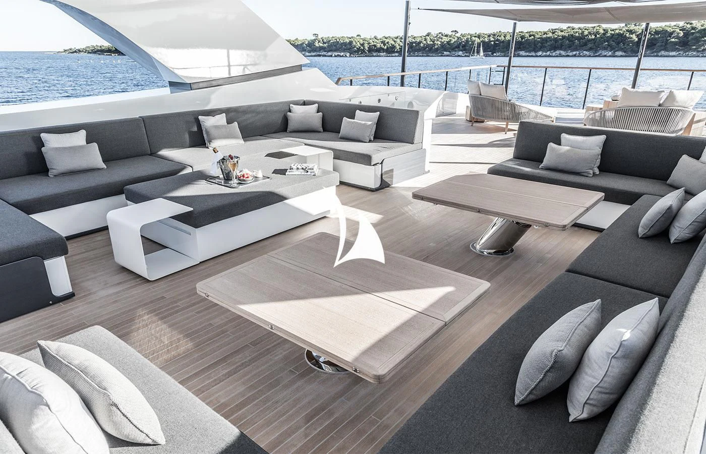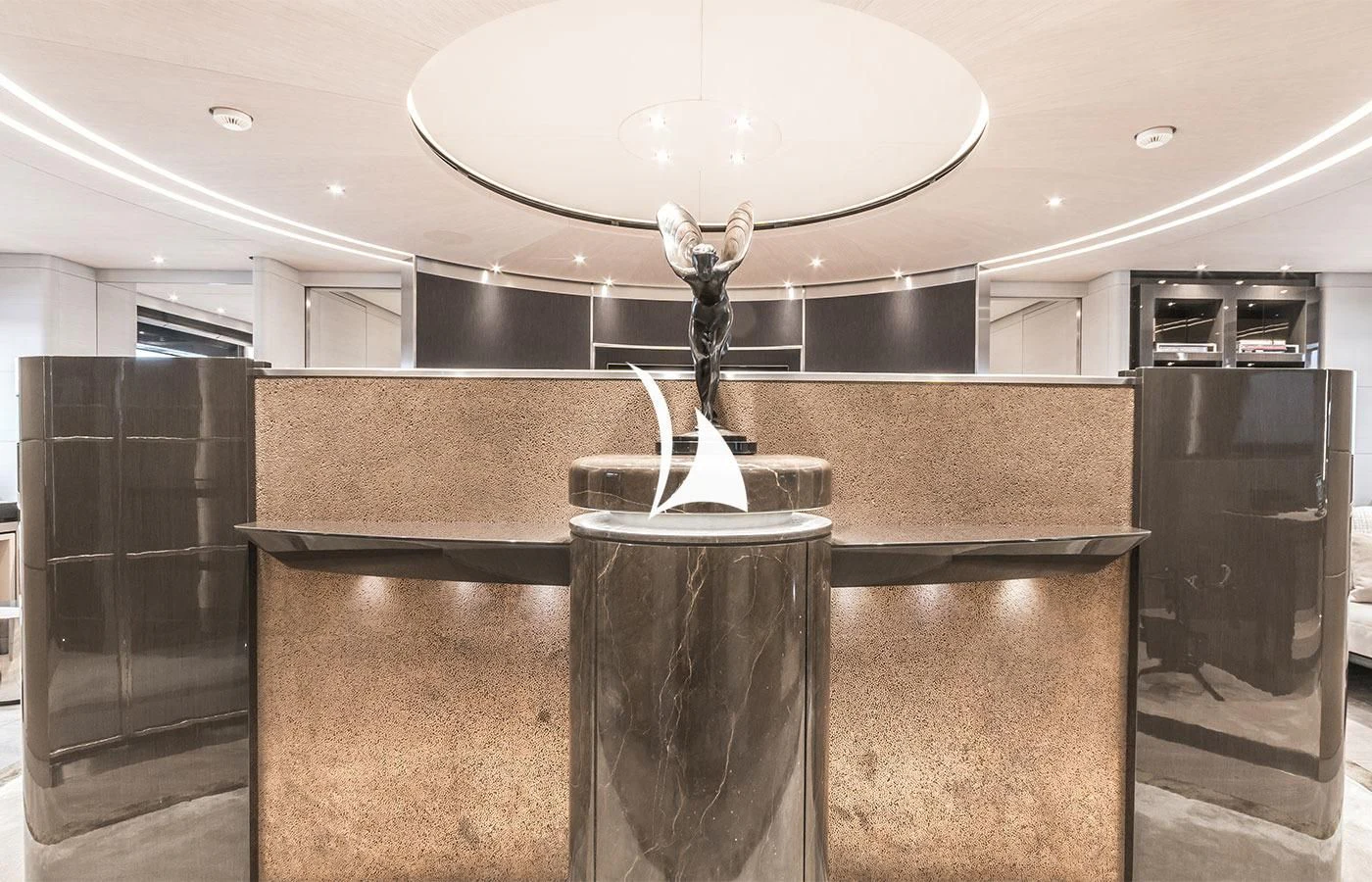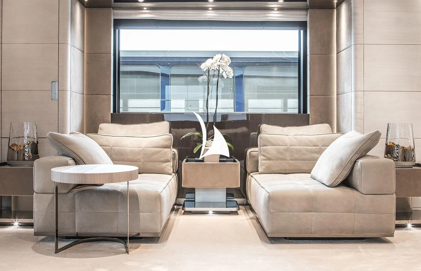 SEVERIN*S accommodates up to 12 guests across six staterooms, including her master suite on the main deck, two VIP staterooms, two double cabins and one convertible cabin. The two VIP staterooms are located on the lower deck. The accommodation layout is extremely versatile as the convertible cabin can also be used as a massage room or even a playroom if required. Her style throughout is sophisticated with the use of monochrome colors, with features of brass and marble.