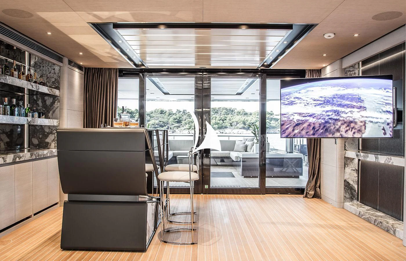 SEVERIN*S has an impressive array of leisure and entertainment facilities while also boasting an extremely spacious master suite with a private office and walk-in wardrobe. Her generous deck areas offer plenty of entertainment and relaxation areas, including an impressive sundeck with a glass fronted pool, Jacuzzi and outdoor bar. Her extra-large beach club boasts a large screen wall, steam shower, well-equipped gym and bar. SEVERIN*S also features a glass elevator which serves the lower deck up to the bridge deck.