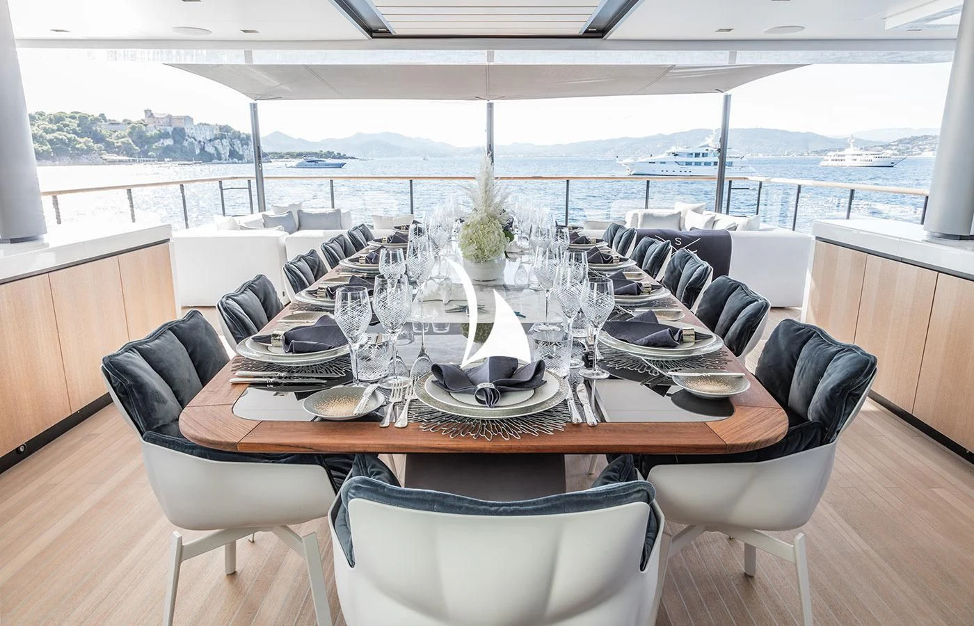 Powered by twin Caterpillar engines, SEVERIN*S has a top speed of 16.5 knots and comfortable cruising speed of 14 knots. Her stabilizers at anchor and underway ensure absolute performance and comfort for a fabulous charter experience.