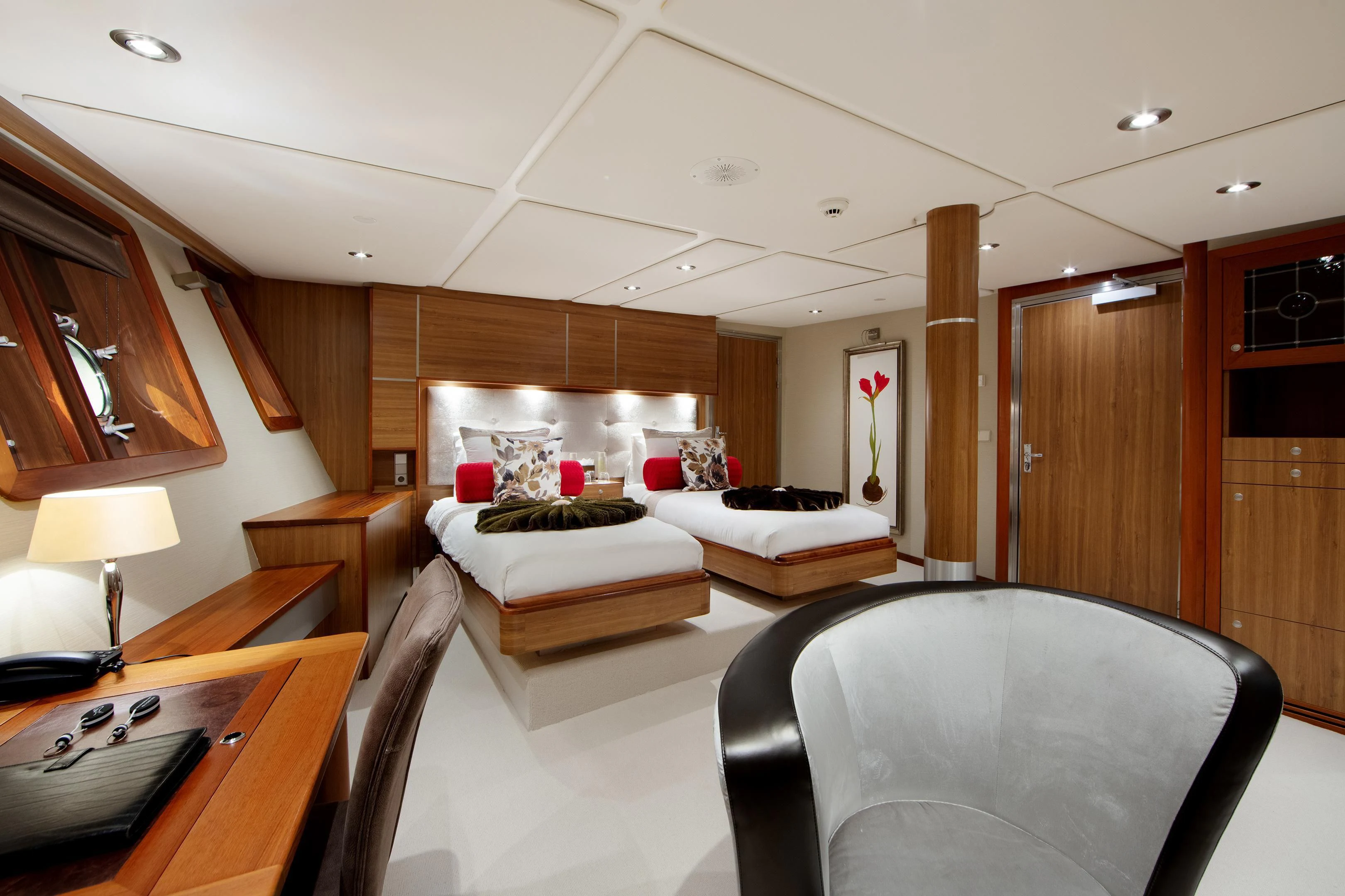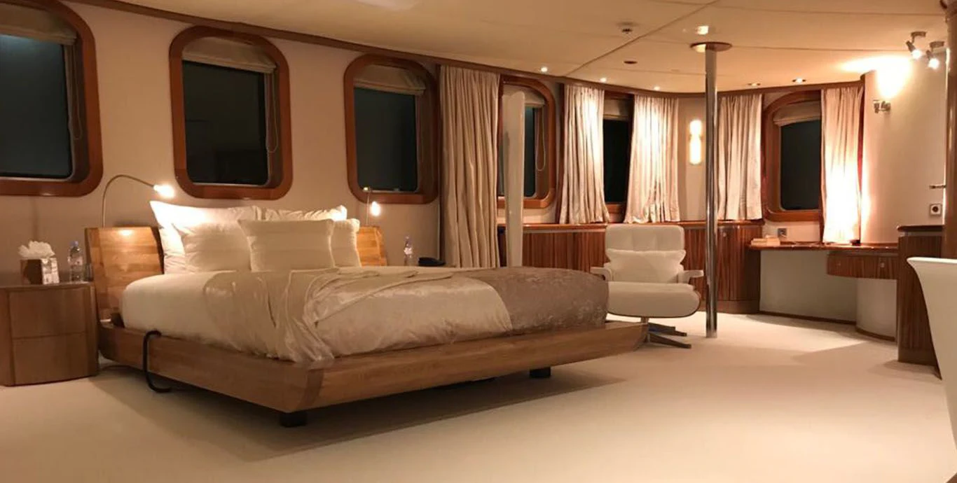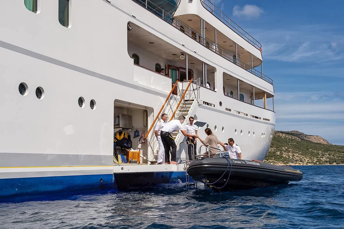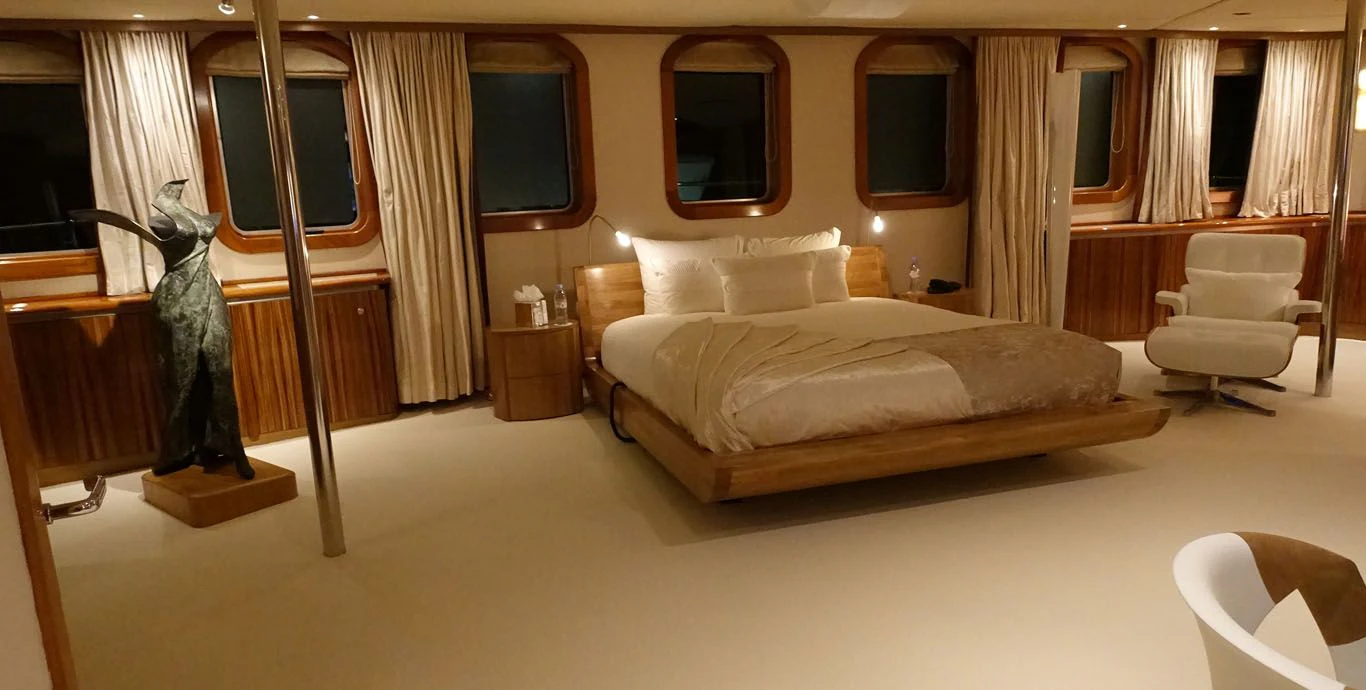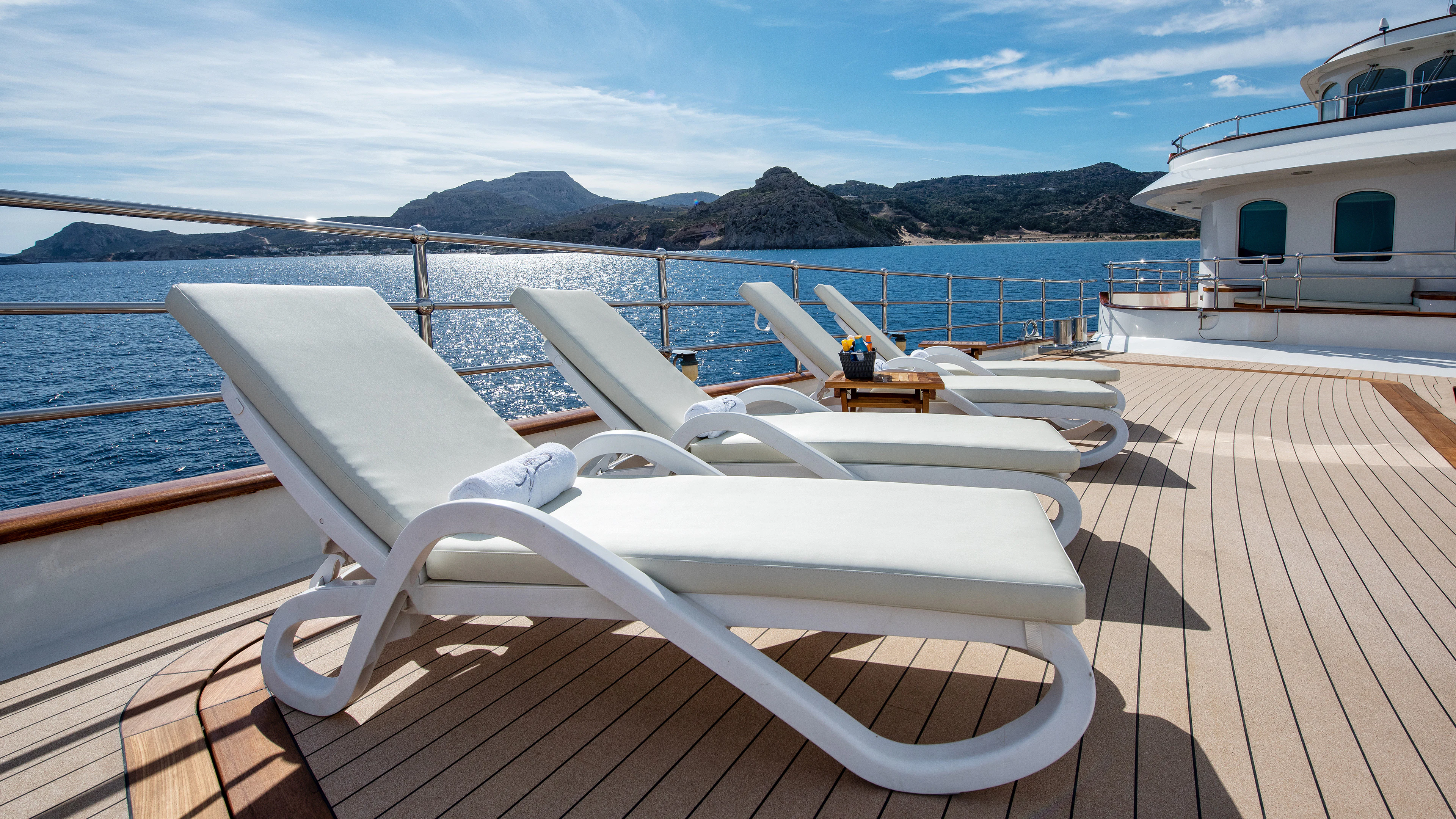 Outdoors, the wide, spacious decks of SHERAKHAN invite guests to take advantage of the alfresco living while on board. For the utmost in relaxation, SHERAKHAN features an 18-person Jacuzzi, a fully equipped onboard gym and spa and a beauty salon, with a trained masseuse on staff. She features a hydraulic swim platform and a tender garage allowing guests to easily access the water and the yacht’s host of water toys and tenders, including a classic Dutch tender for excursions, WaveRunners, Jet Skis, wakeboards and more for guests to enjoy while on board. She also has 19 crewmembers on hand to ensure the epitome of five-star service is maintained.