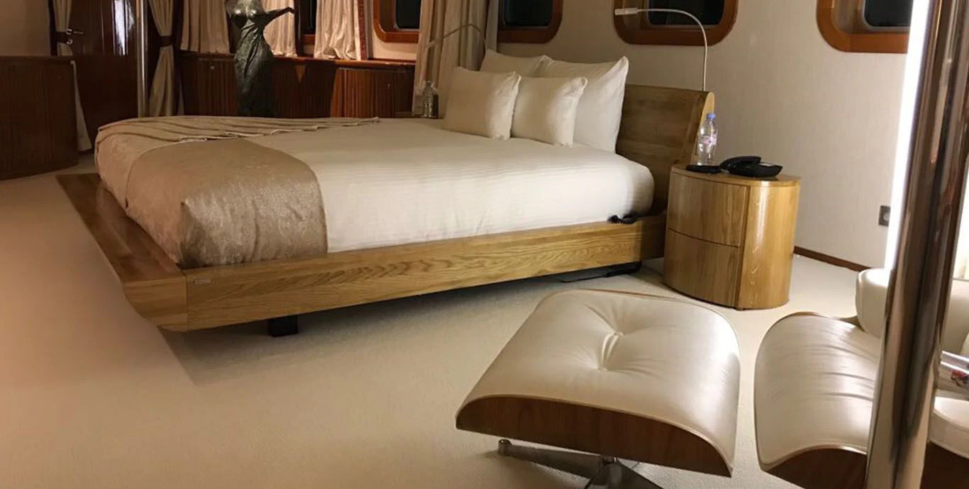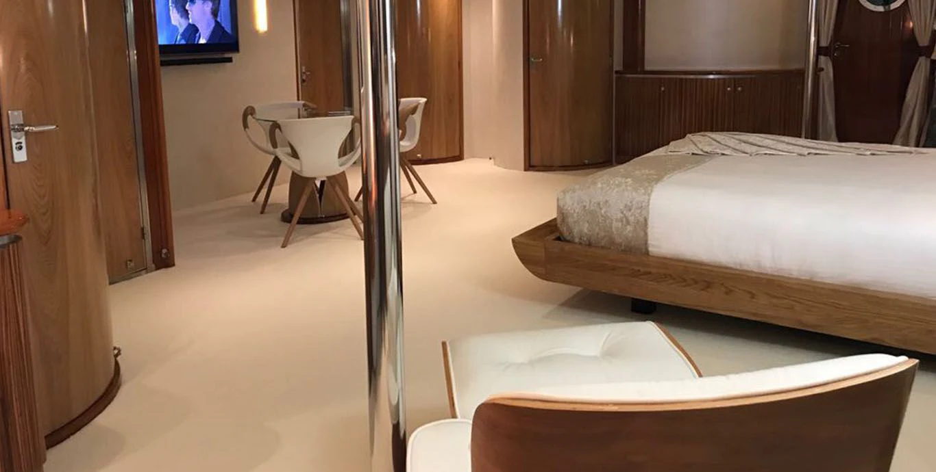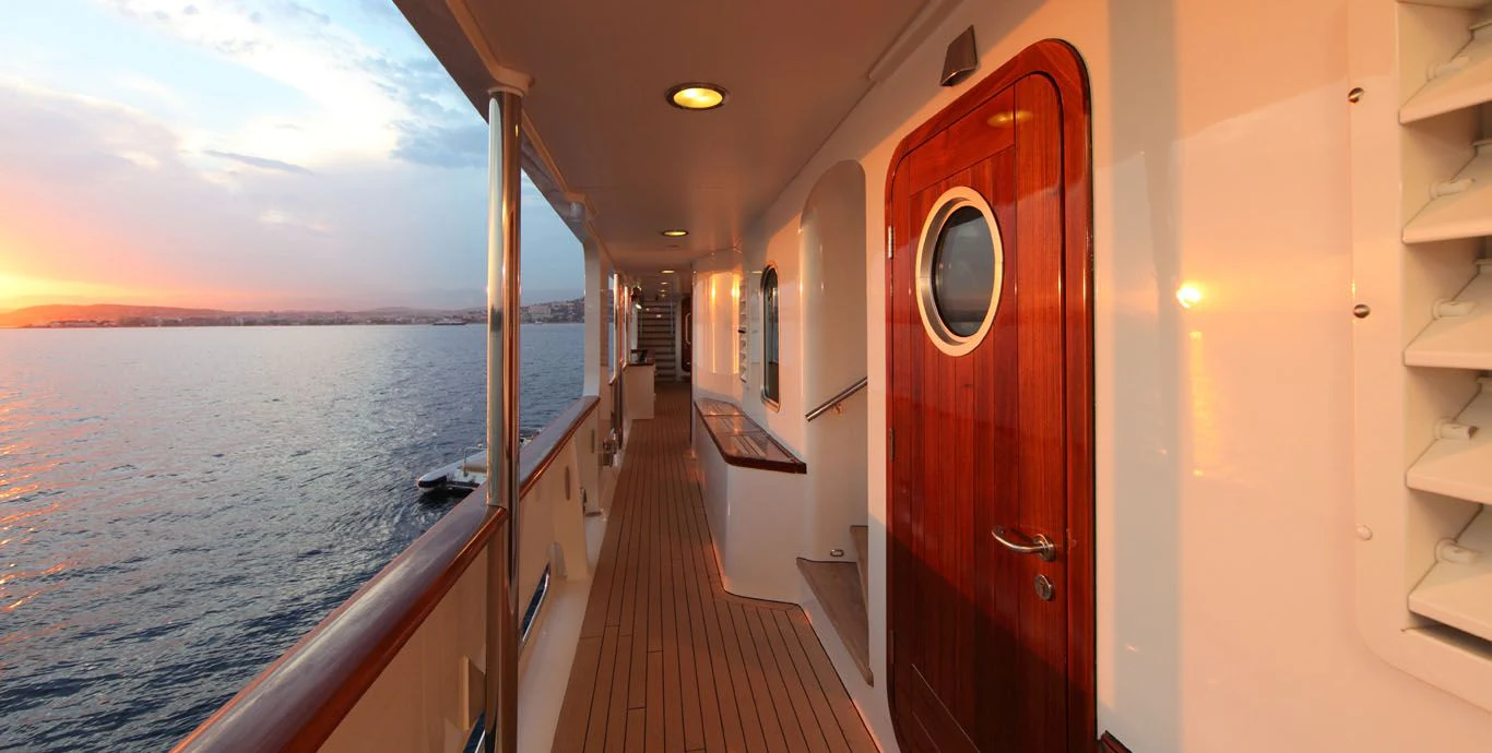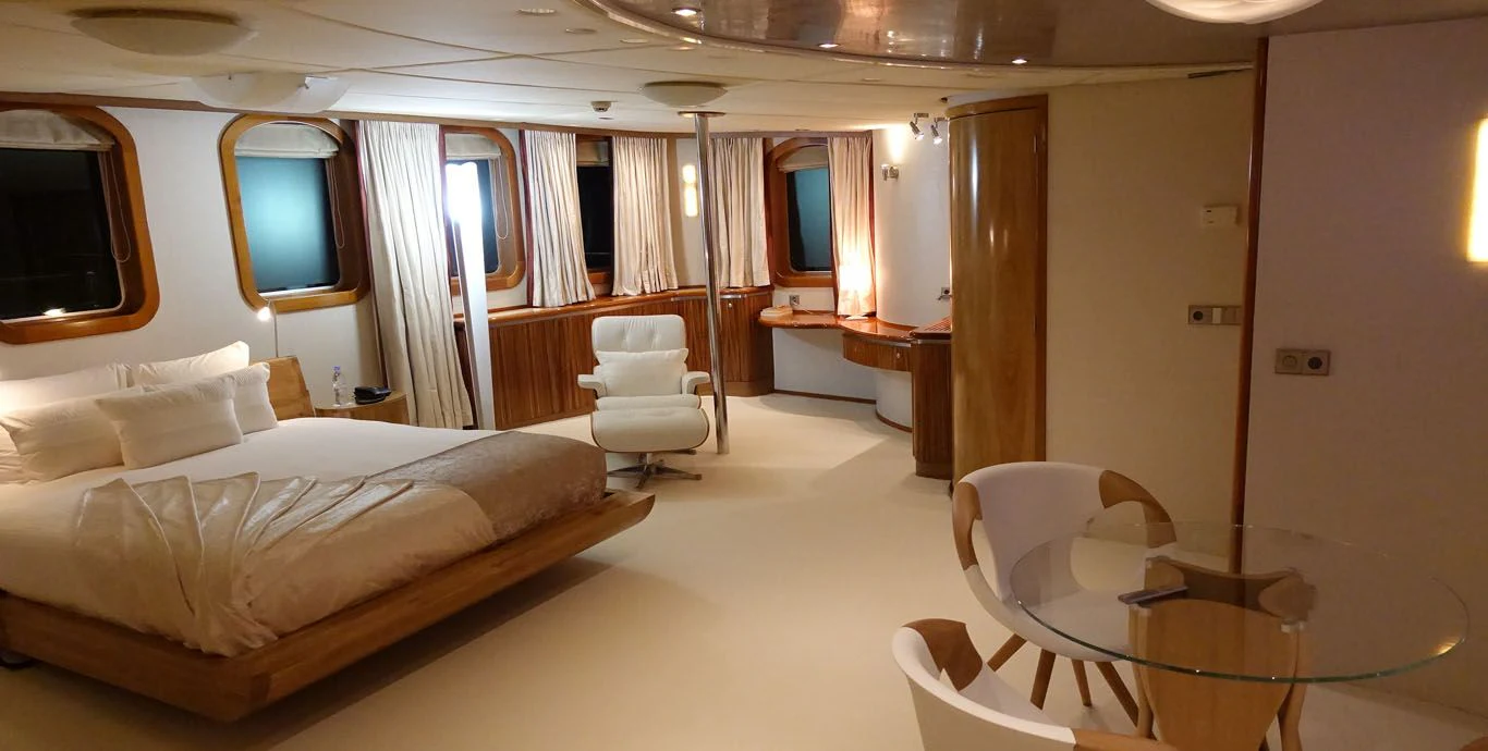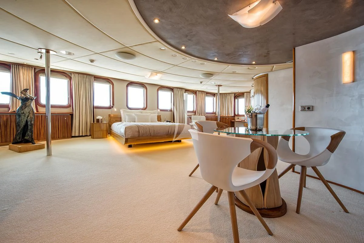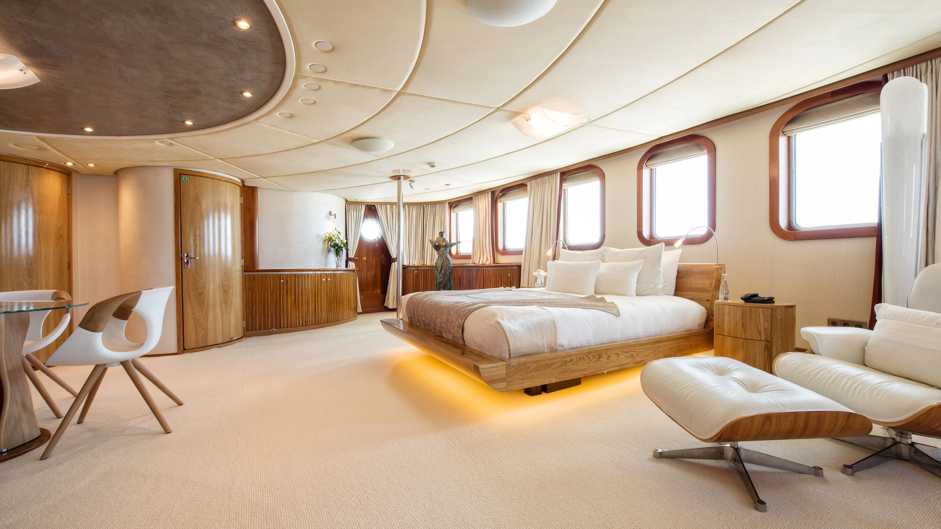 Outdoors, the wide, spacious decks of SHERAKHAN invite guests to take advantage of the alfresco living while on board. For the utmost in relaxation, SHERAKHAN features an 18-person Jacuzzi, a fully equipped onboard gym and spa and a beauty salon, with a trained masseuse on staff. She features a hydraulic swim platform and a tender garage allowing guests to easily access the water and the yacht’s host of water toys and tenders, including a classic Dutch tender for excursions, WaveRunners, Jet Skis, wakeboards and more for guests to enjoy while on board. She also has 19 crewmembers on hand to ensure the epitome of five-star service is maintained.
