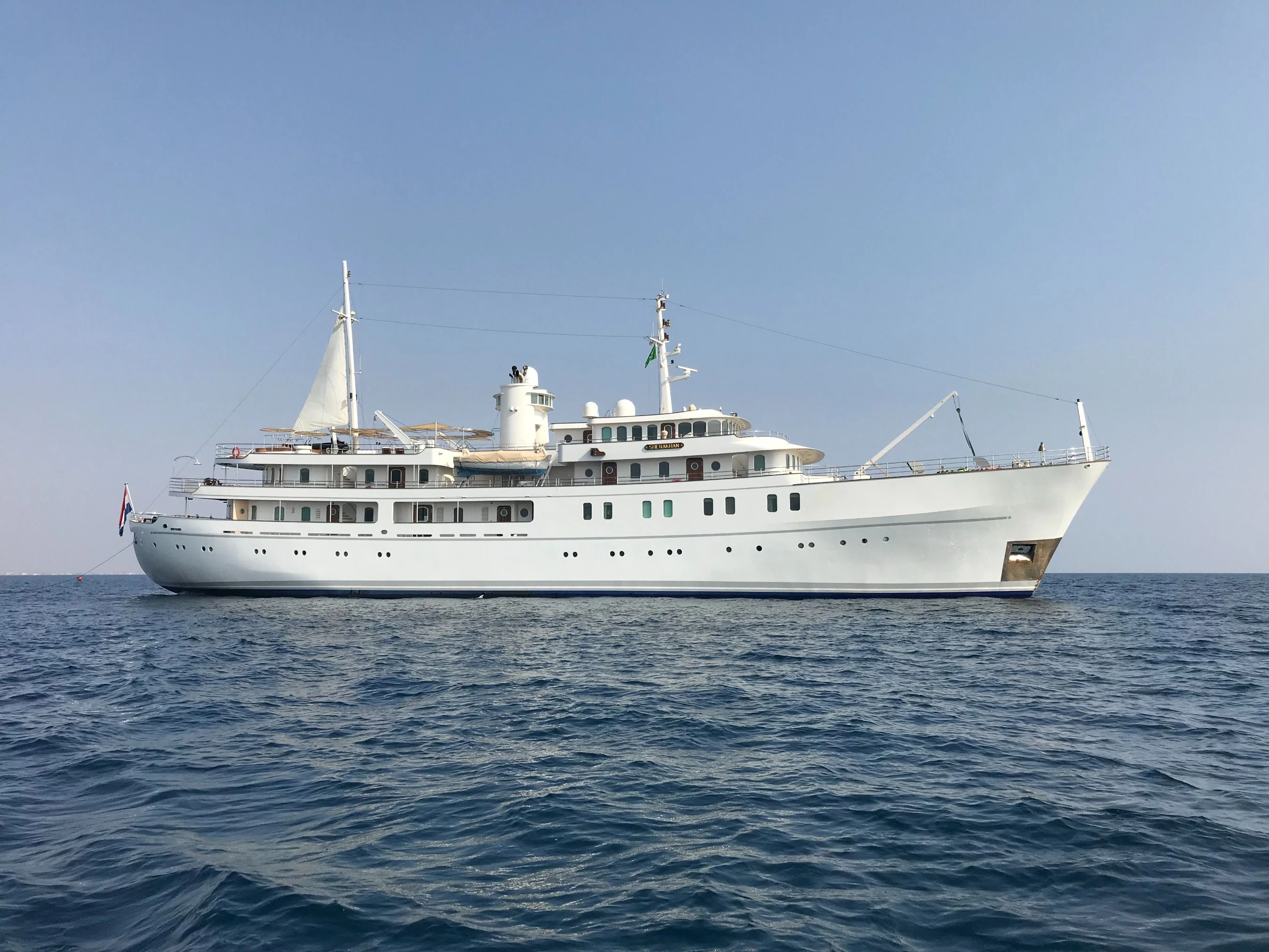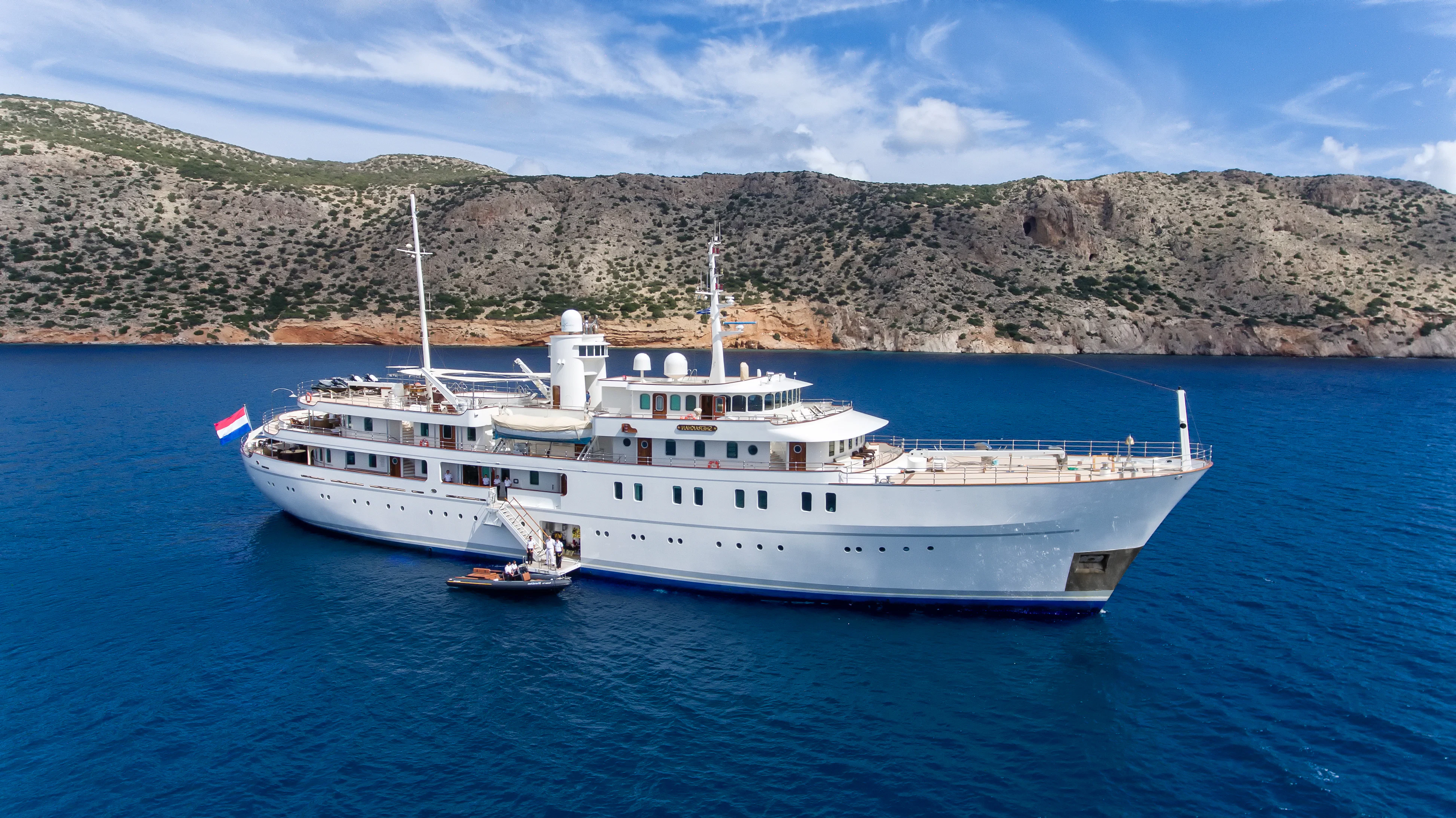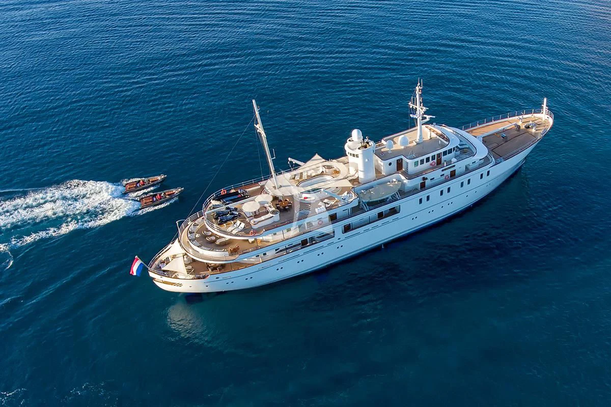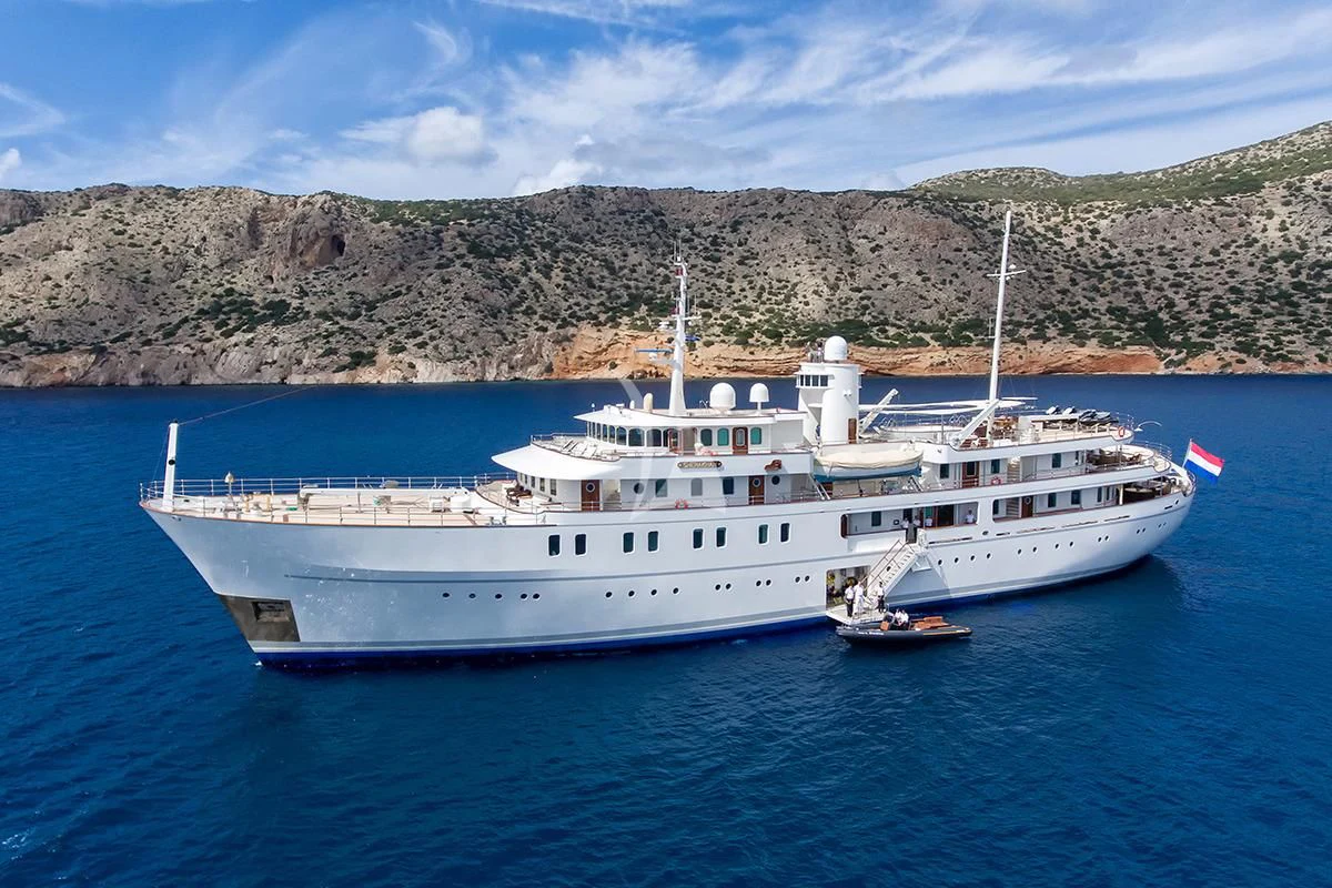 Jan Verkerk’s 229-foot (70m) M/Y SHERAKHAN is a versatile, comfortable yacht, perfect for charters with families and friends. This stunning classic yacht was built by Vuyk in 2005 and was refitted in 2017. She features exterior design by Verkerk Yachting Projects and interior styling by