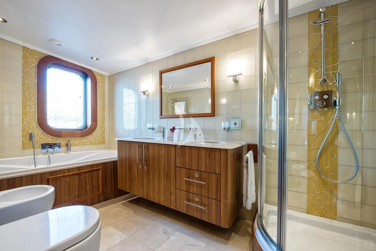SHERAKHAN has at-anchor stabilizers as well as an ultra-modern stabilization system that will provide guests with total comfort while aboard. This luxury superyacht for charter is in prime condition to host your next holiday of a lifetime.