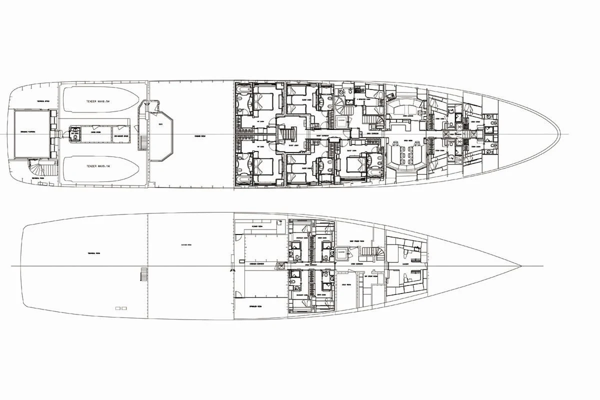 SILVER ANGEL offers accommodation for 12 guests in seven lavish staterooms. The full beam master suite is a masterpiece, as are all her staterooms, all of which have been furnished in the same opulent style as her main guest areas.